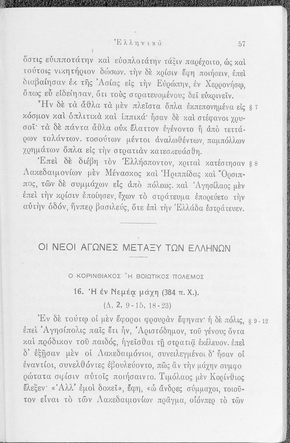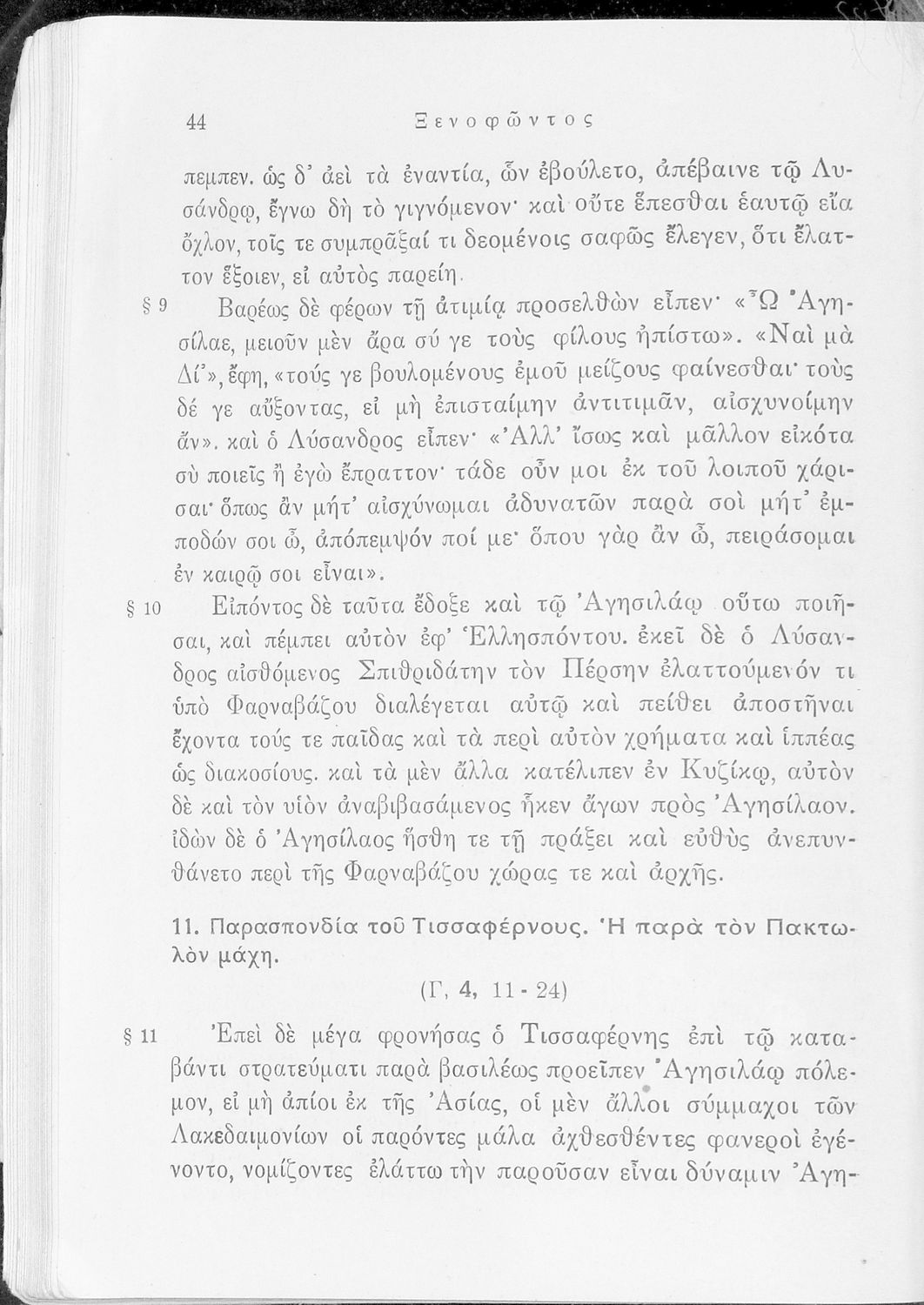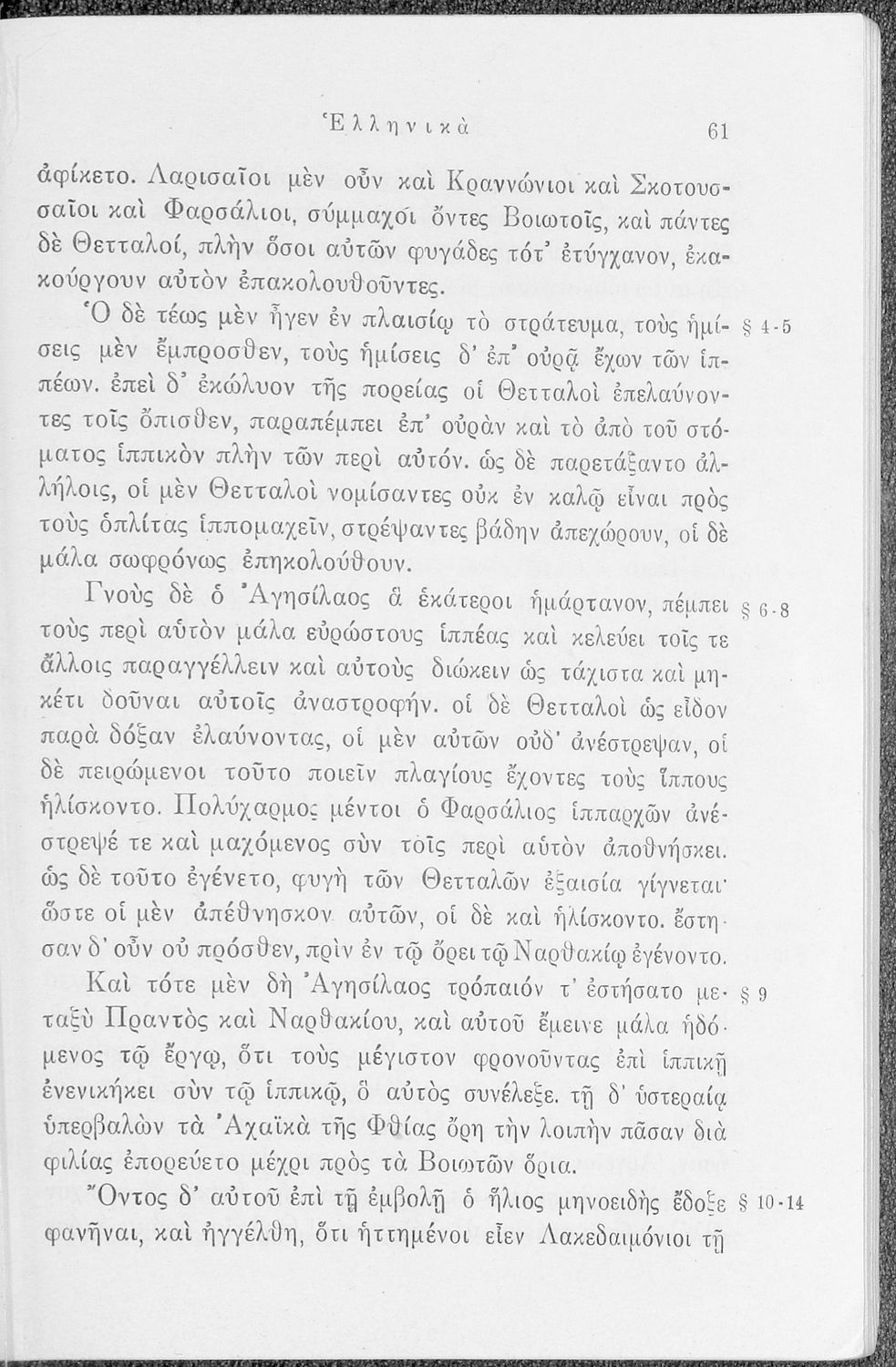 Σχολικό εγχειρίδιο Αρχαίων Ελληνικών Δ΄ Γυμνασίου που περιλαμβάνει αποσπάσματα από το έργο του Ξενοφώντα Ελληνικά, γραμματικές και συντακτικές παρατηρήσεις και ερμηνευτικά και πραγματολογικά σχόλια.