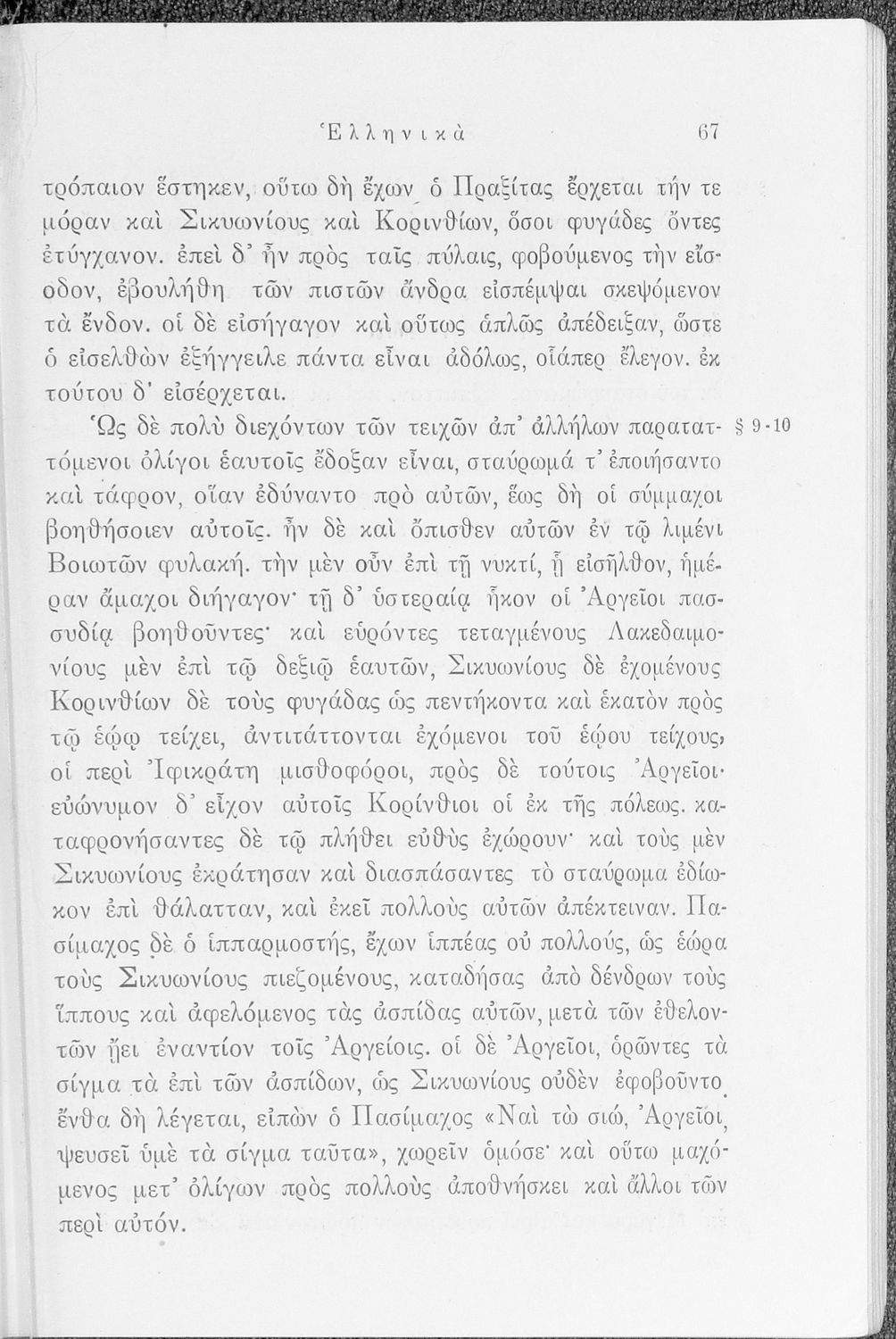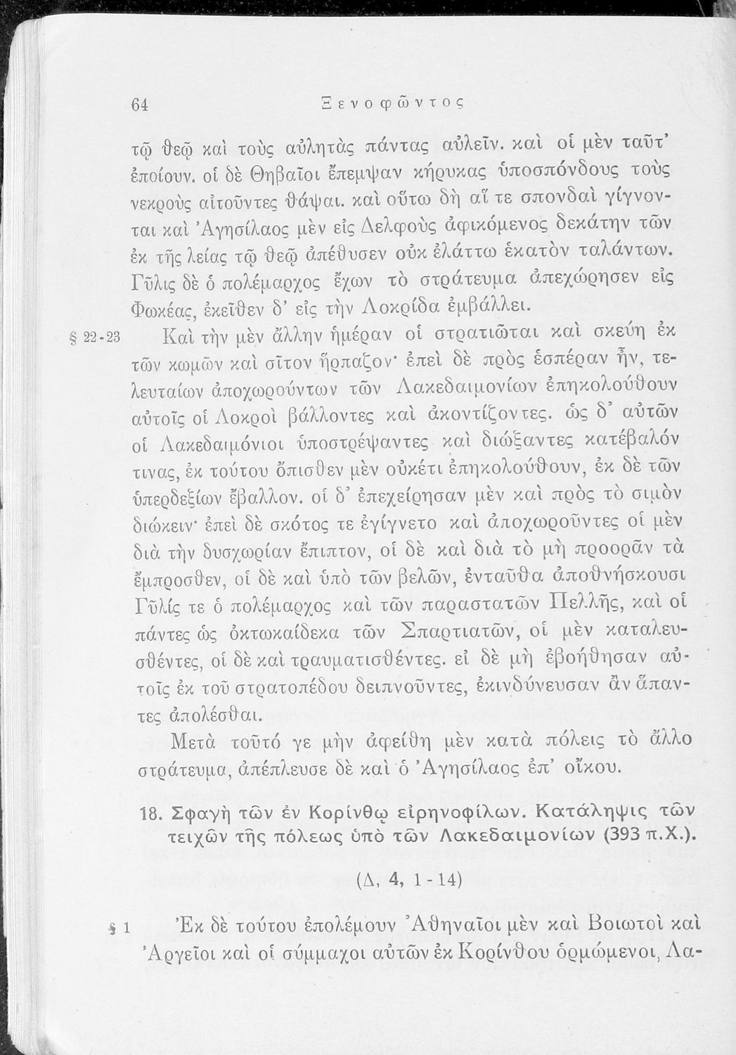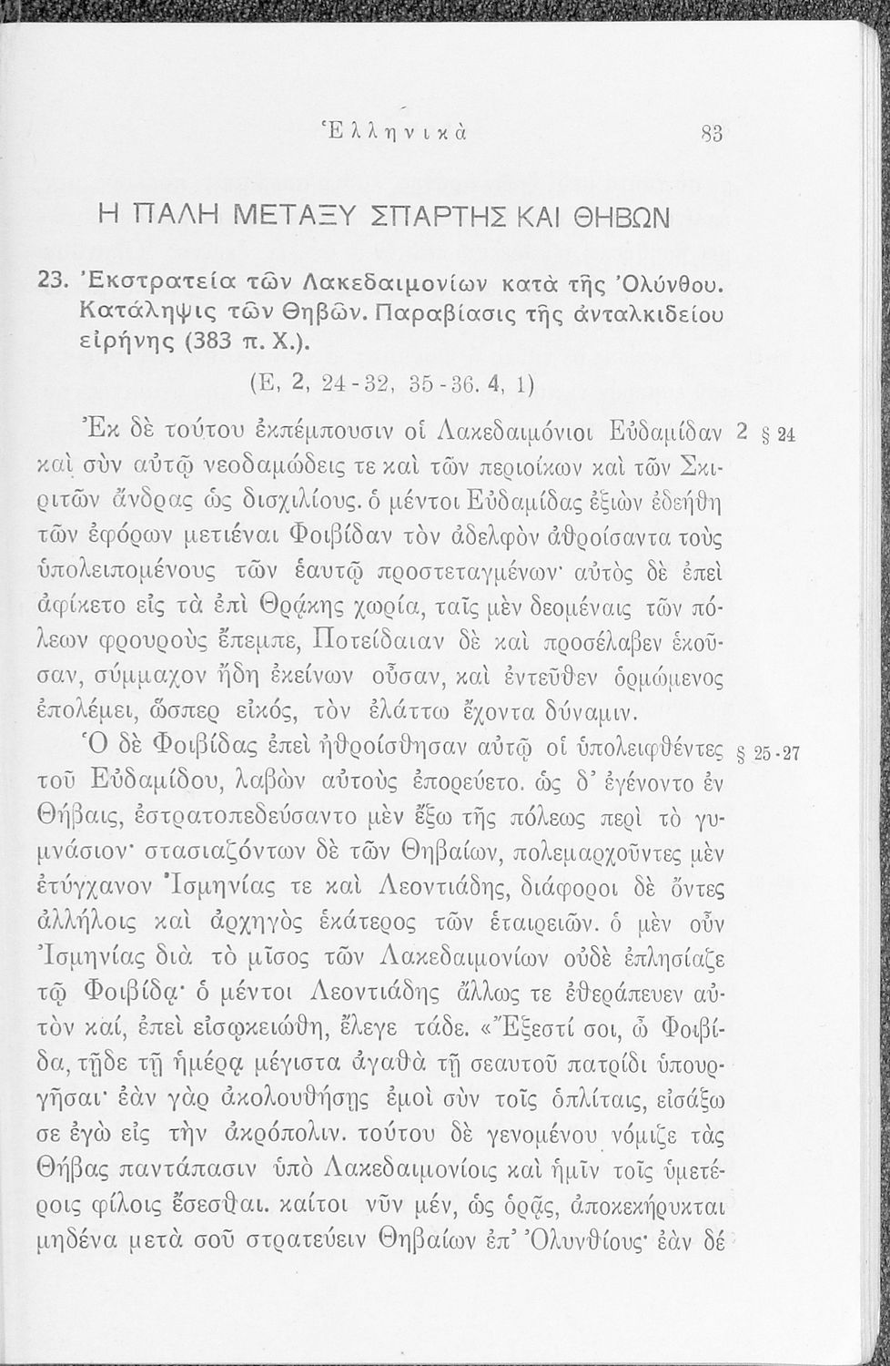 Σχολικό εγχειρίδιο Αρχαίων Ελληνικών Δ΄ Γυμνασίου που περιλαμβάνει αποσπάσματα από το έργο του Ξενοφώντα Ελληνικά, γραμματικές και συντακτικές παρατηρήσεις και ερμηνευτικά και πραγματολογικά σχόλια.