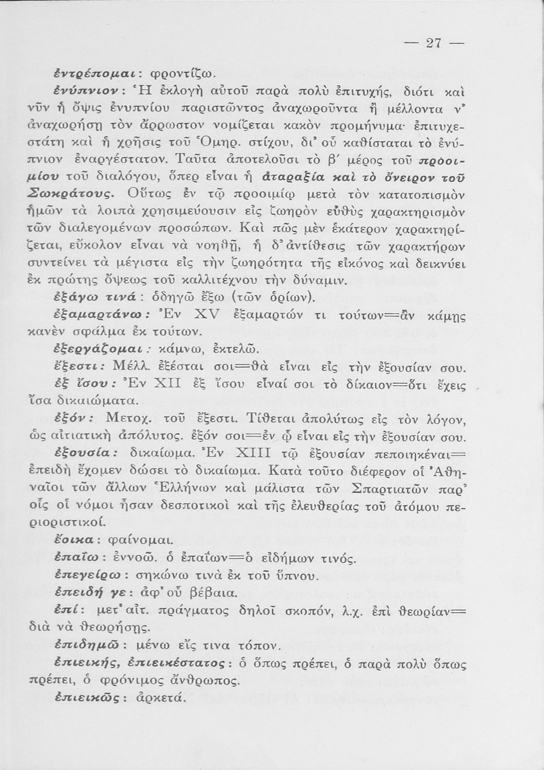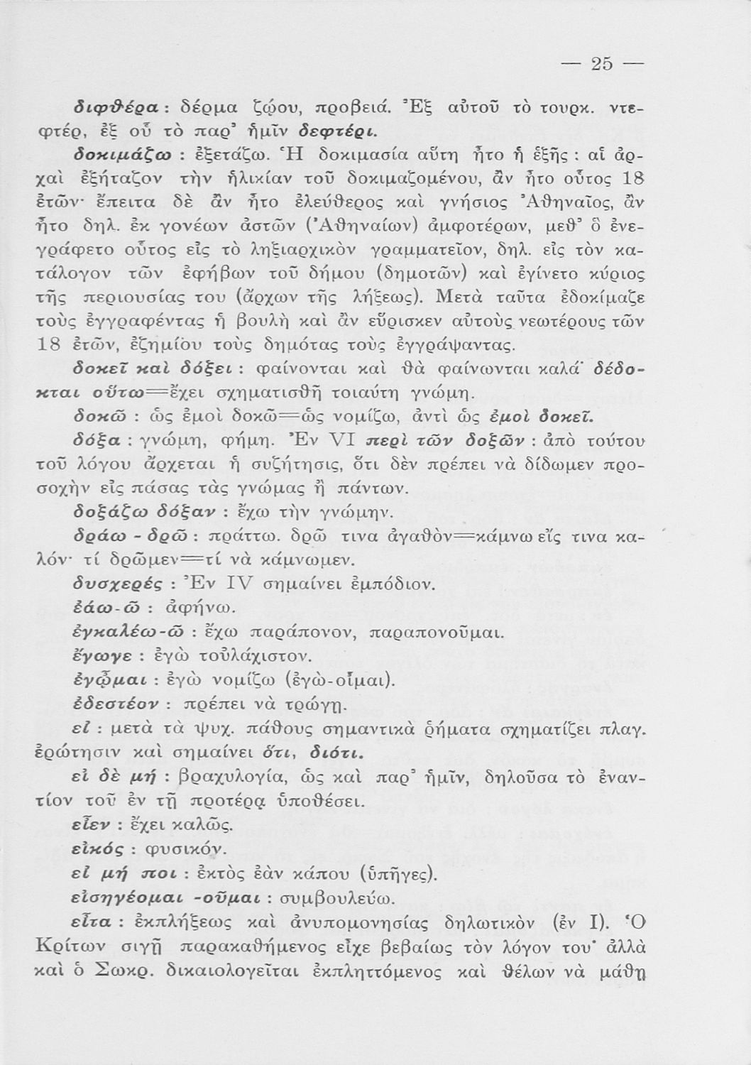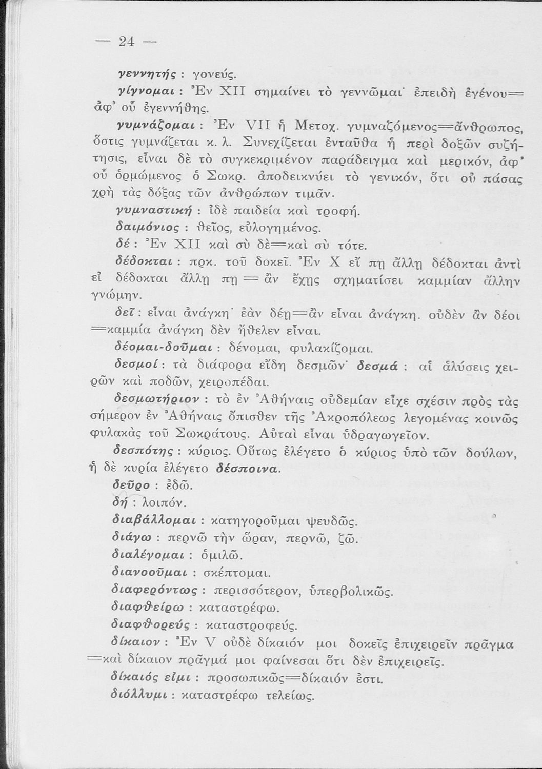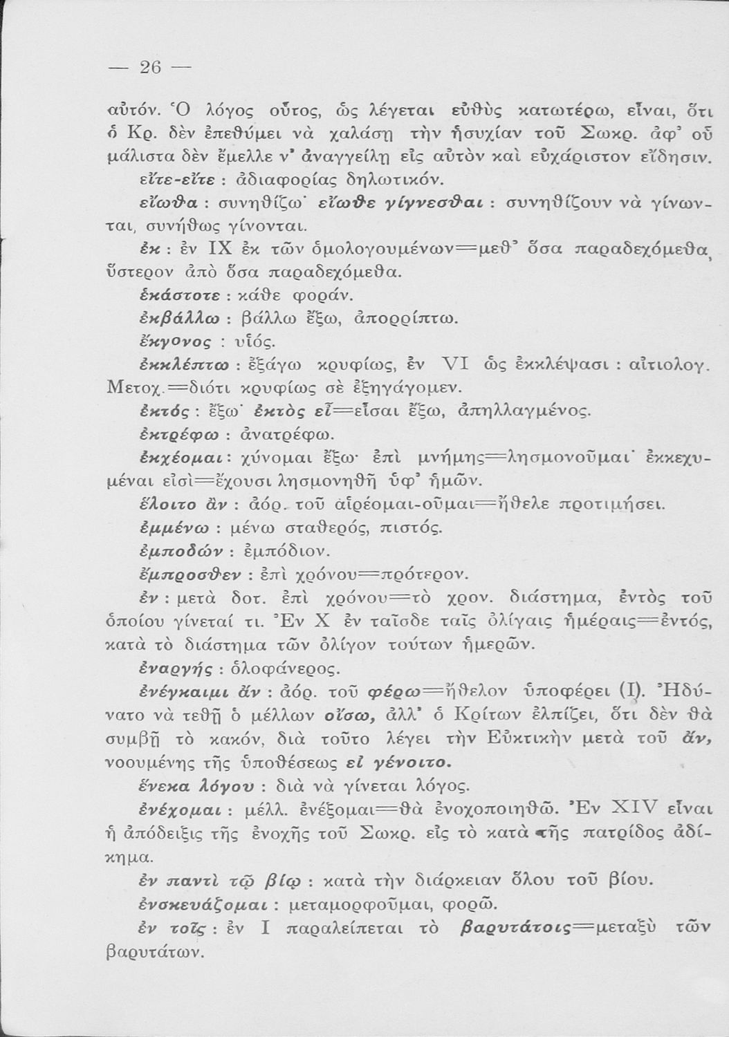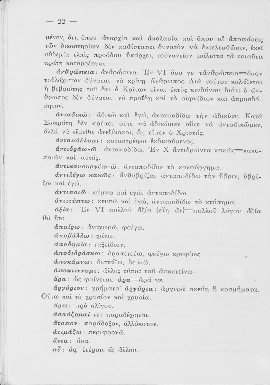 Σχολικό εγχειρίδιο της Ε΄ Γυμνασίου για το μάθημα των Αρχαίων. Περιέχει το πρωτότυπο κείμενο του Πλάτωνα από την απολογία του Κρίτωνα με ερμηνευτικά, πραγματολογικά σχόλια και λεξιλογικές παρατηρήσεις του συγγραφέα.