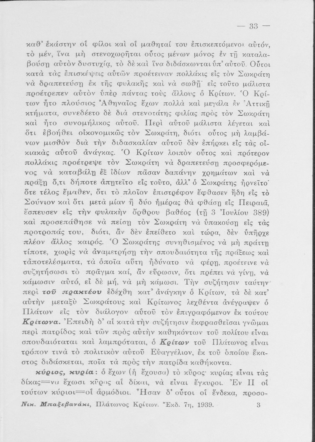 Πλάτωνος Κρίτων. Προς χρήσιν της Ε΄ Τάξεως των Γυμνασίων