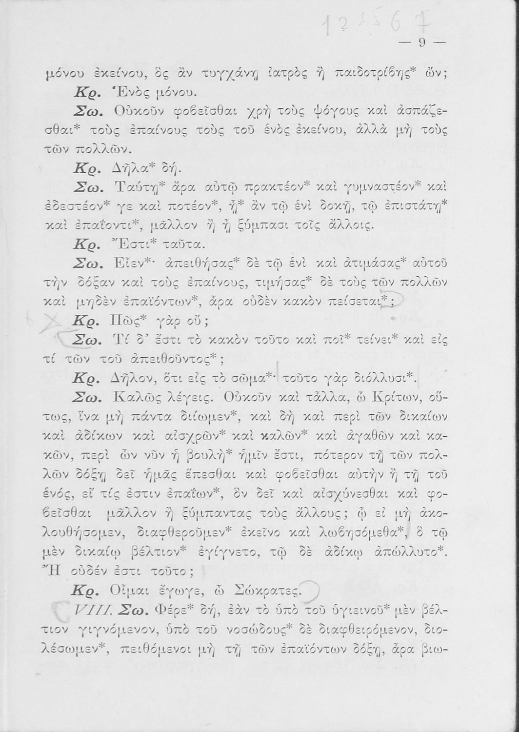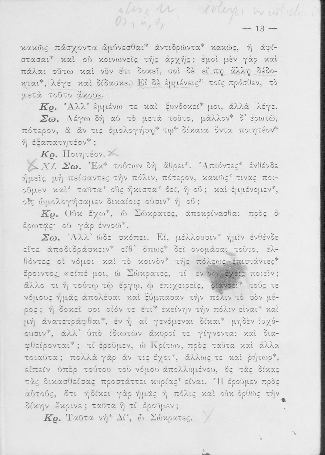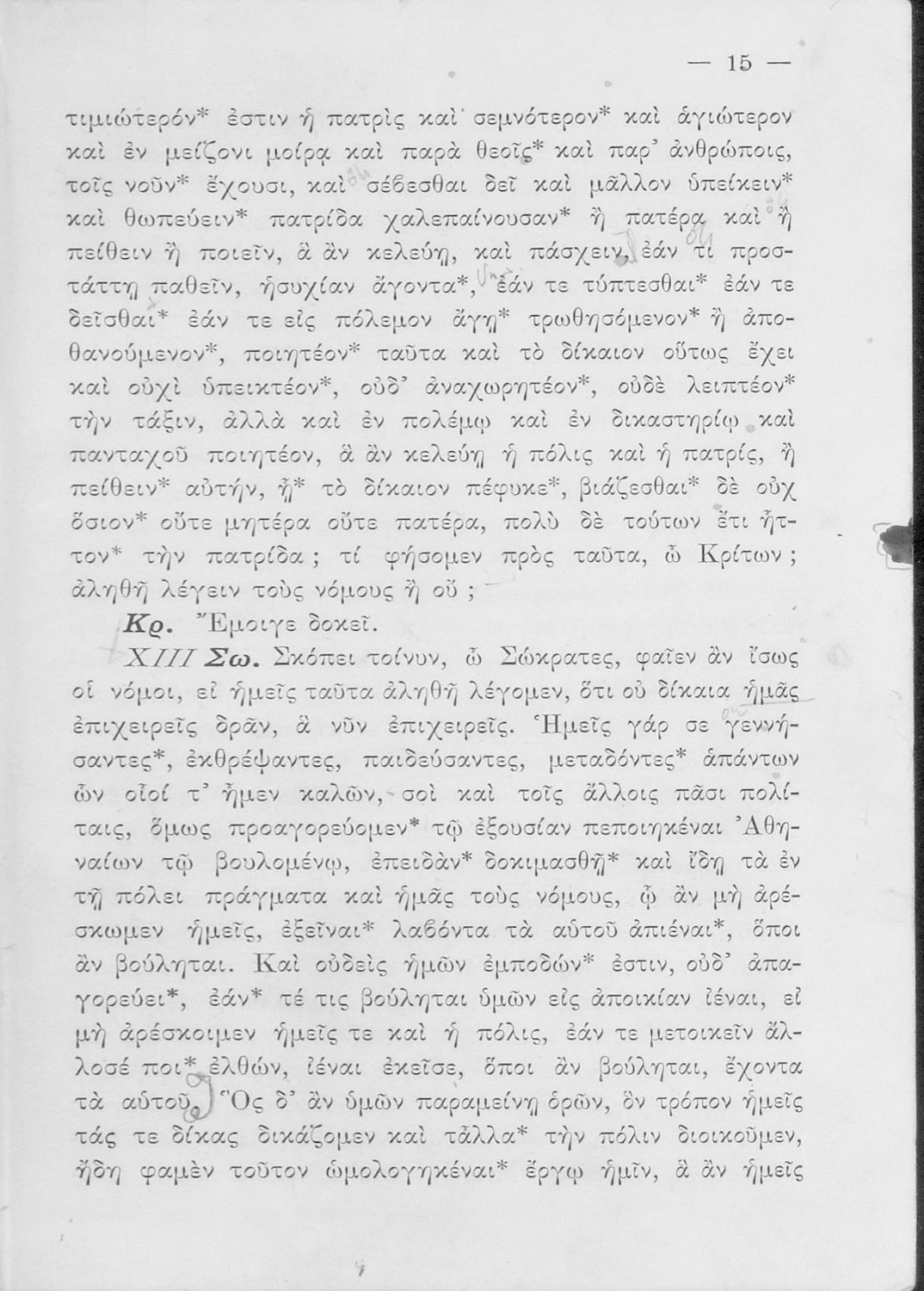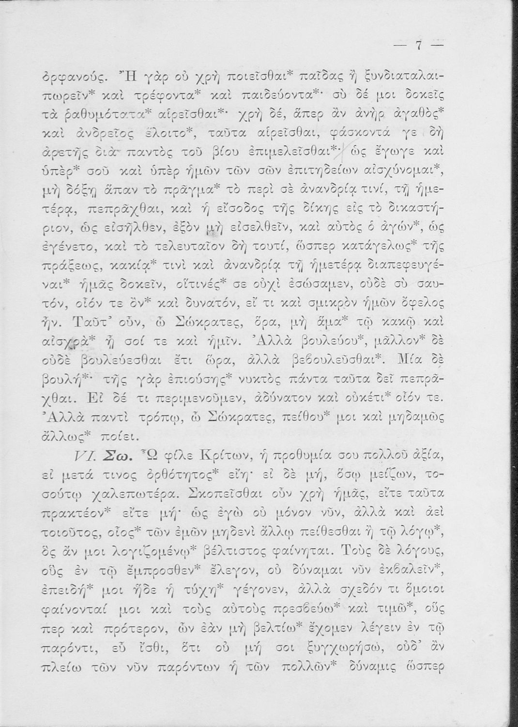 Τίτλος: Πλάτωνος Κρίτων. Προς χρήσιν της Ε΄ Τάξεως των Γυμνασίων