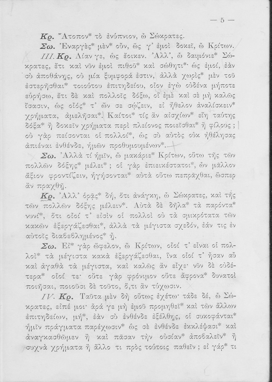 Πλάτωνος Κρίτων. Προς χρήσιν της Ε΄ Τάξεως των Γυμνασίων