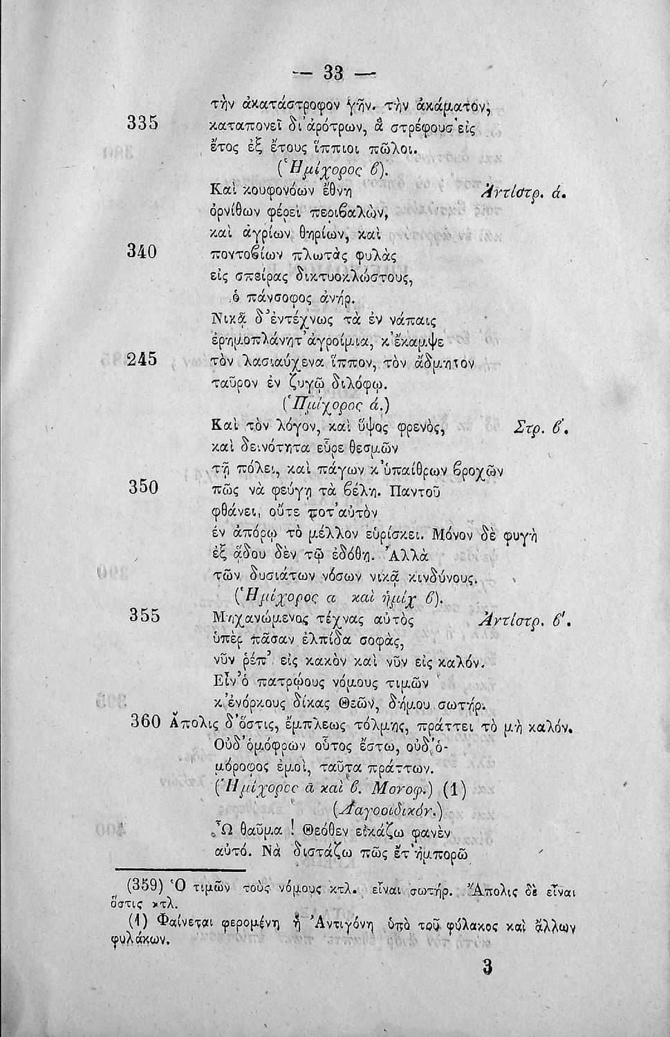 Παιδαγωγικό βοήθημα Αρχαίων Ελληνικών. Περιέχει τη τραγωδία του Σοφοκλή, την Αντιγόνη με σχόλια από τον Μιστριώτη που υπήρξε τακτικός καθηγητής των ελληνικών γραμμάτων στο εθνικό Πανεπιστήμιο.