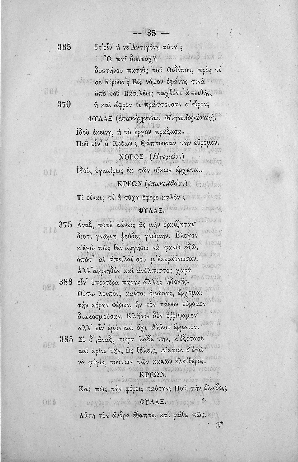 Διασκευή της Αντιγόνης του Σοφοκλή "χάριν της από σκηνής διδασκαλίας του δράματος εν τω επί Ρηγίλλη Θέατρο Αθηνών".