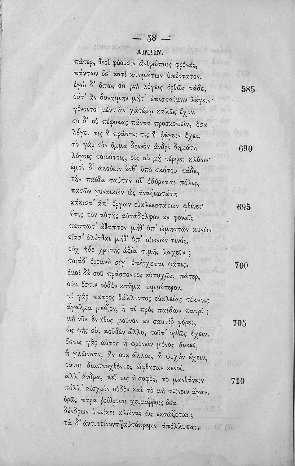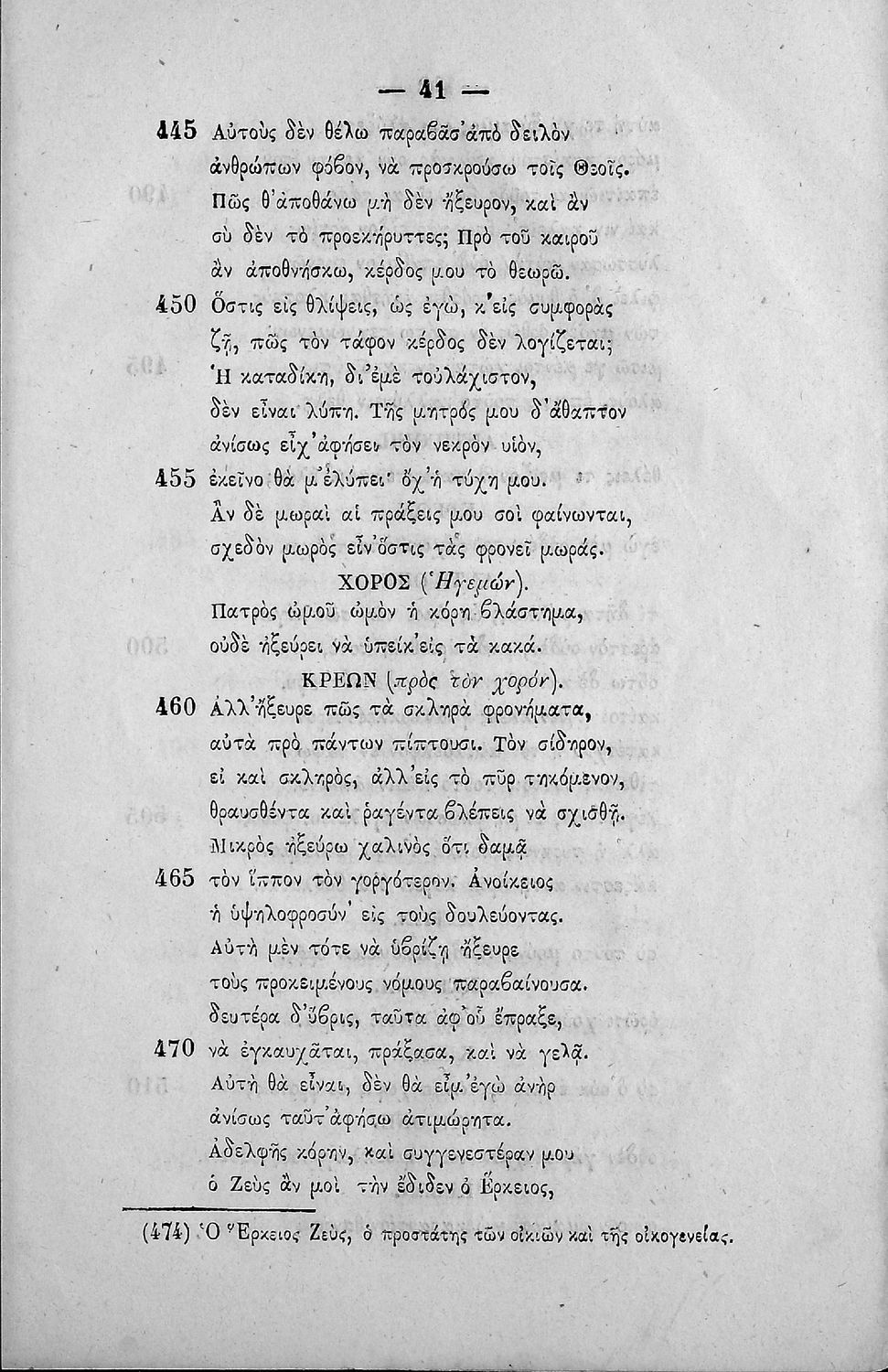 Διασκευή της Αντιγόνης του Σοφοκλή "χάριν της από σκηνής διδασκαλίας του δράματος εν τω επί Ρηγίλλη Θέατρο Αθηνών".