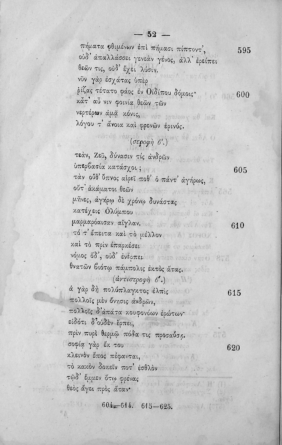 Παιδαγωγικό βοήθημα Αρχαίων Ελληνικών. Περιέχει τη τραγωδία του Σοφοκλή, την Αντιγόνη με σχόλια από τον Μιστριώτη που υπήρξε τακτικός καθηγητής των ελληνικών γραμμάτων στο εθνικό Πανεπιστήμιο.