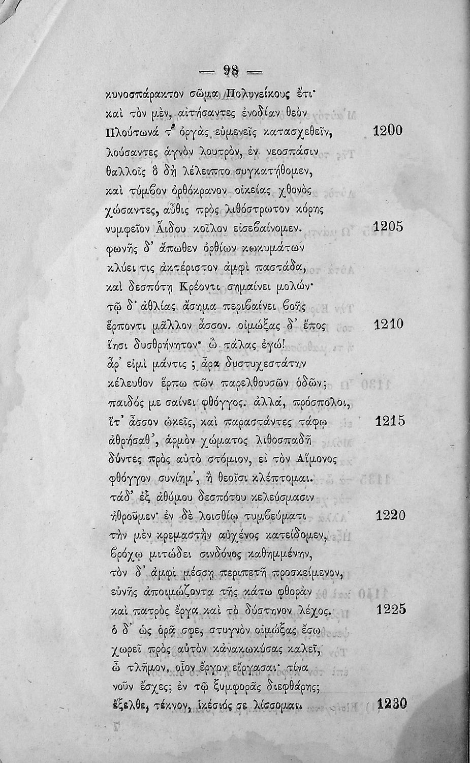 Παιδαγωγικό βοήθημα Αρχαίων Ελληνικών. Περιέχει τη τραγωδία του Σοφοκλή, την Αντιγόνη με σχόλια από τον Μιστριώτη που υπήρξε τακτικός καθηγητής των ελληνικών γραμμάτων στο εθνικό Πανεπιστήμιο.