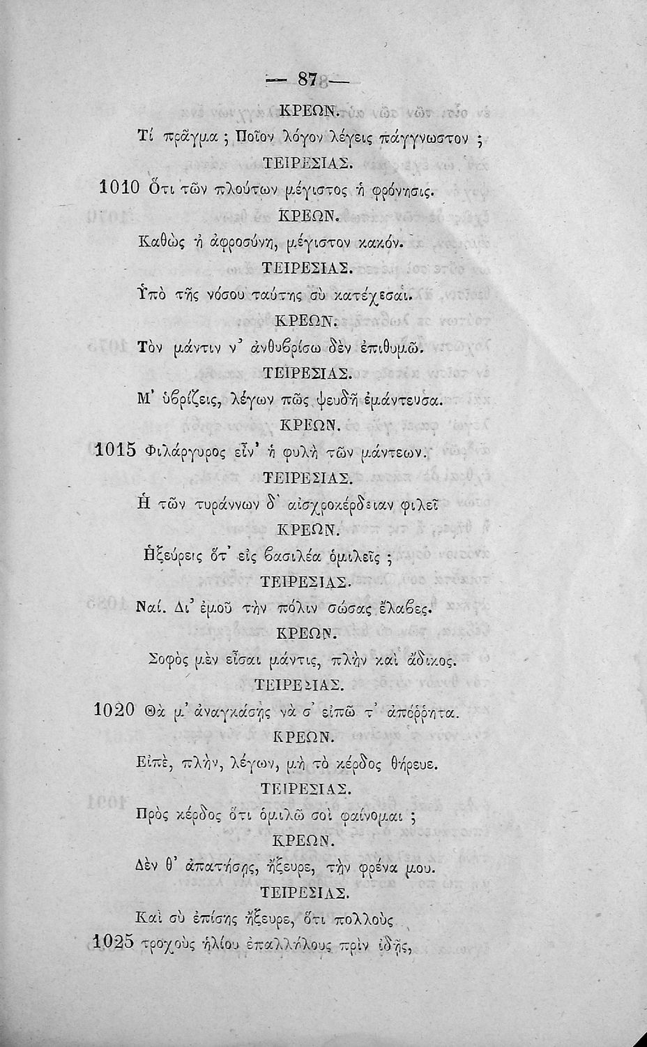 Διασκευή της Αντιγόνης του Σοφοκλή "χάριν της από σκηνής διδασκαλίας του δράματος εν τω επί Ρηγίλλη Θέατρο Αθηνών".