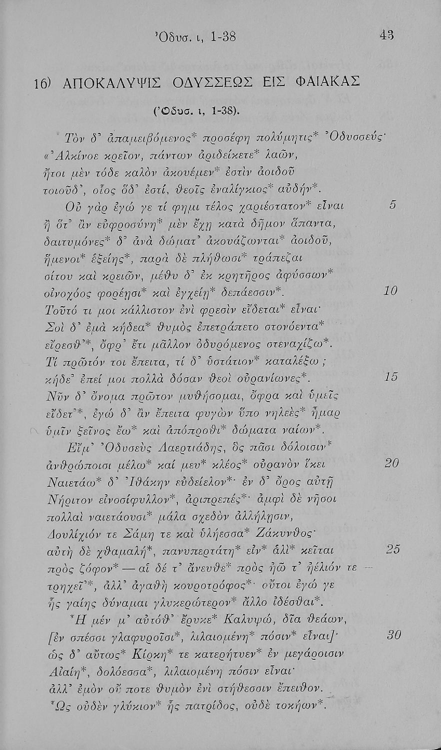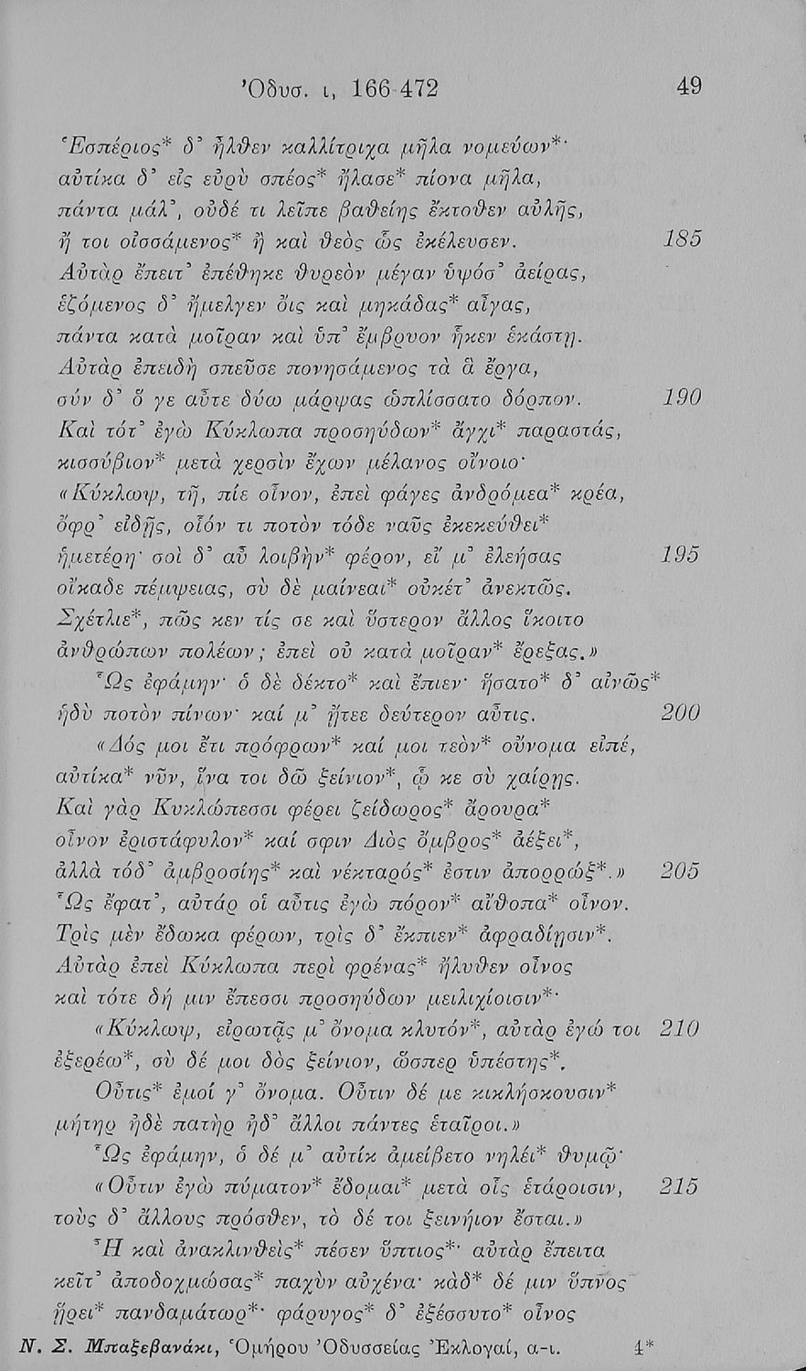 Ομήρου Οδύσσεια Εκλογαί (α-ι), χάριν των μαθητών της Δ΄ Τάξεως των Εξατάξιων Γυμνασίων και της αντιστοίχου των άλλων Σχολείων της Μέσης Εκπαιδεύσεως