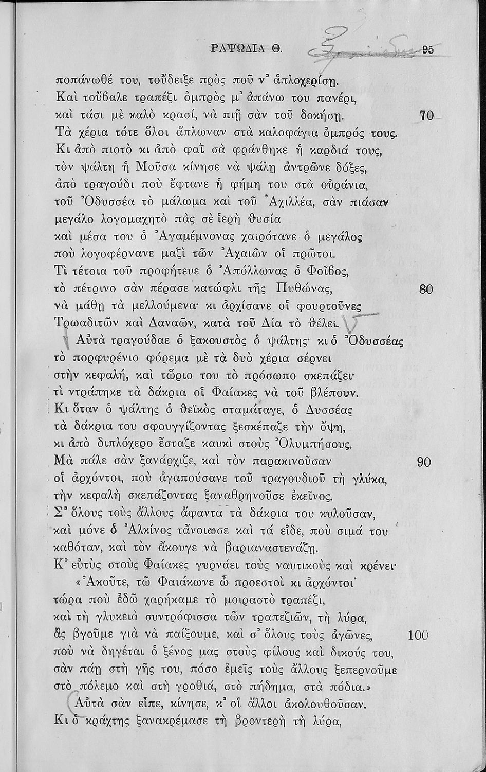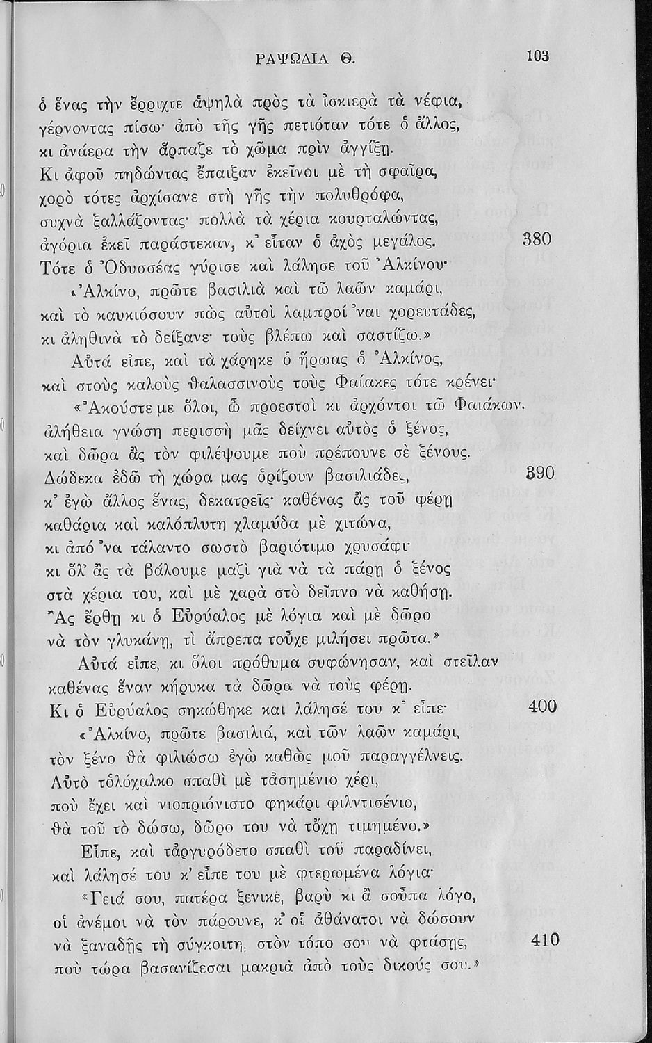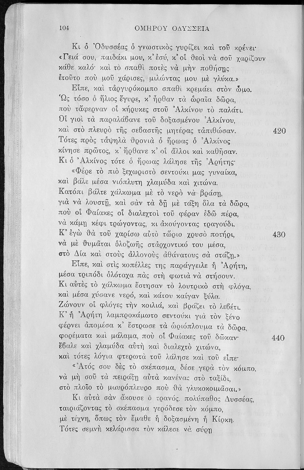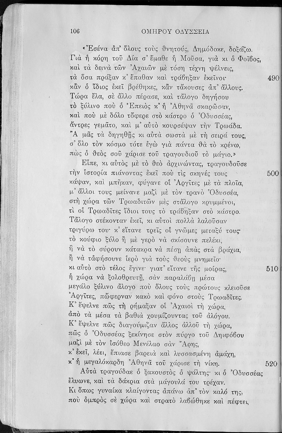 Παρουσίαση περιεχομένου: Σχολικό εγχειρίδιο της Α΄, Β΄, Γ΄ Γυμνασίου για το μάθημα των Αρχαίων Ελληνικών. Περιέχει τις ραψωδίες της Οδύσσειας και ερμηνευτικά, πραγματολογικά σχόλια, καθώς κ και γραμματικές παρατηρήσεις του συγγραφέα. Εγκρίθηκε για μια πενταετία 1932-1937.