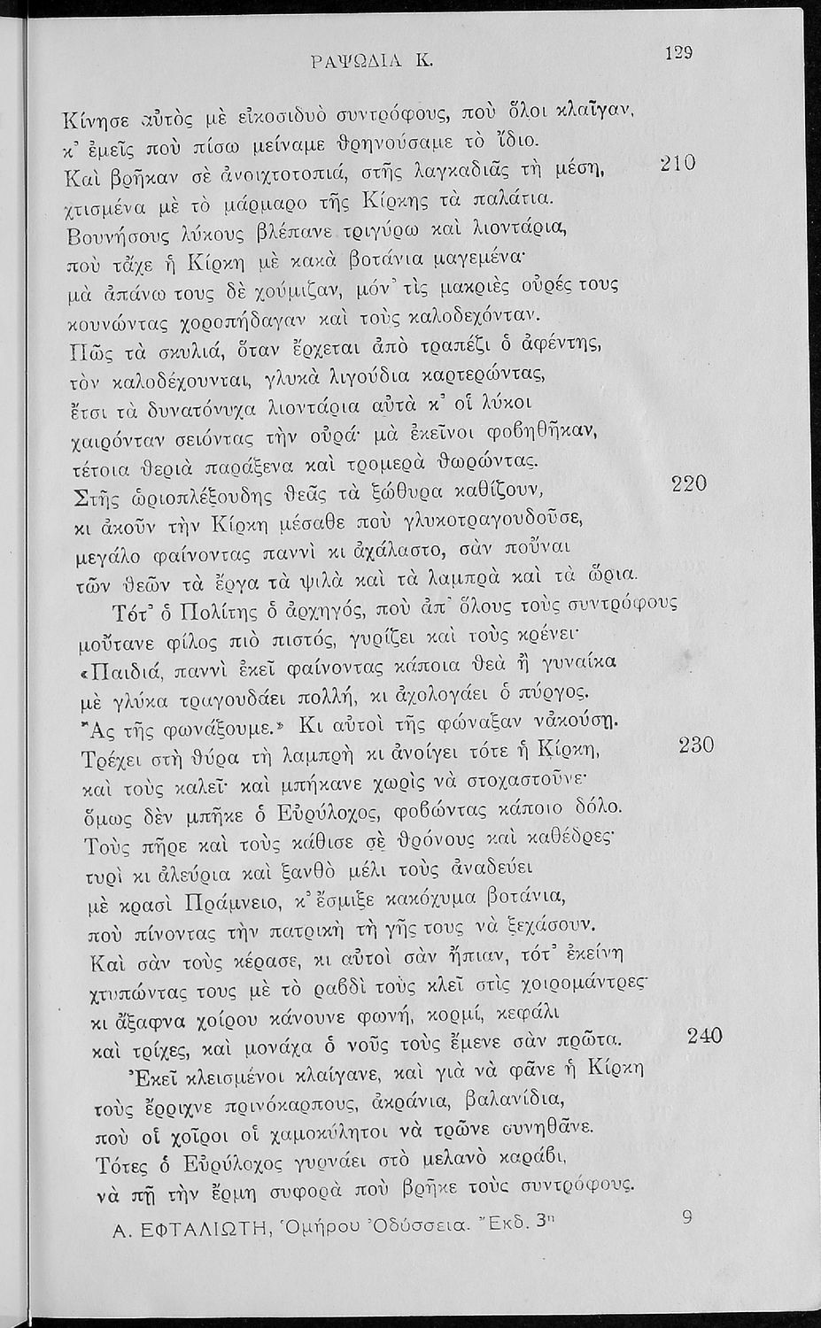 Σχολικό εγχειρίδιο της Α΄, Β΄, Γ΄ Γυμνασίου για το μάθημα των Αρχαίων Ελληνικών. Περιέχει τις ραψωδίες της Οδύσσειας και ερμηνευτικά, πραγματολογικά σχόλια, καθώς κ και γραμματικές παρατηρήσεις του συγγραφέα. Εγκρίθηκε για μια πενταετία 1932-1937.