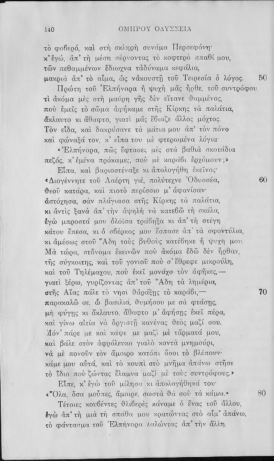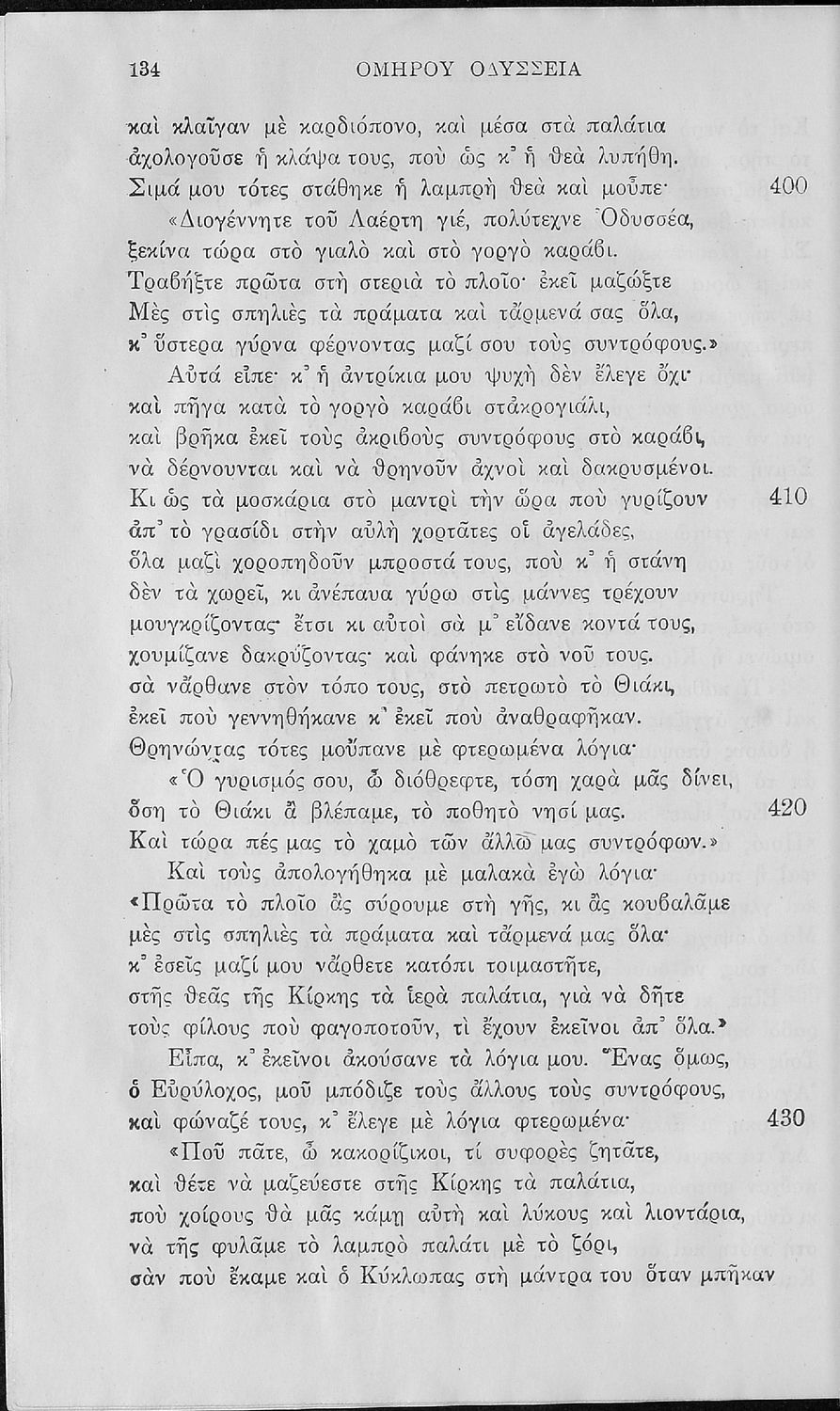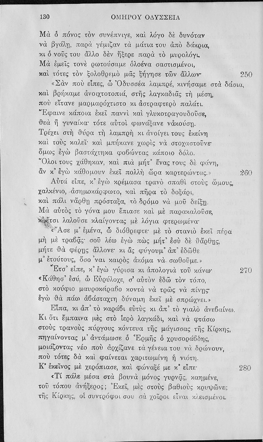Σχολικό εγχειρίδιο της Α΄, Β΄, Γ΄ Γυμνασίου για το μάθημα των Αρχαίων Ελληνικών. Περιέχει τις ραψωδίες της Οδύσσειας, μετάφραση, ερμηνευτικά και πραγματολογικά σχόλια, καθώς και γραμματικές παρατηρήσεις.