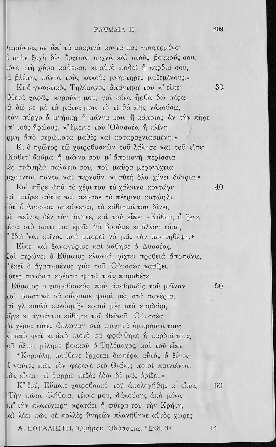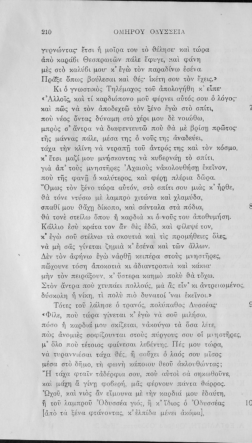 Παρουσίαση περιεχομένου: Σχολικό εγχειρίδιο της Α΄, Β΄, Γ΄ Γυμνασίου για το μάθημα των Αρχαίων Ελληνικών. Περιέχει τις ραψωδίες της Οδύσσειας και ερμηνευτικά, πραγματολογικά σχόλια, καθώς κ και γραμματικές παρατηρήσεις του συγγραφέα. Εγκρίθηκε για μια πενταετία 1932-1937.