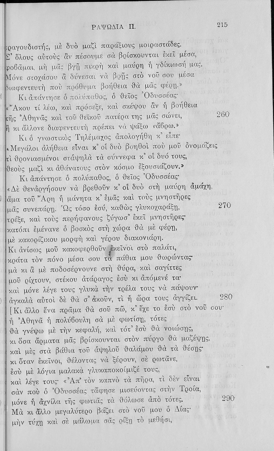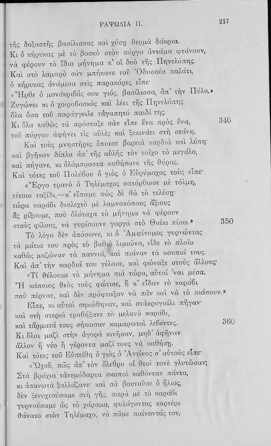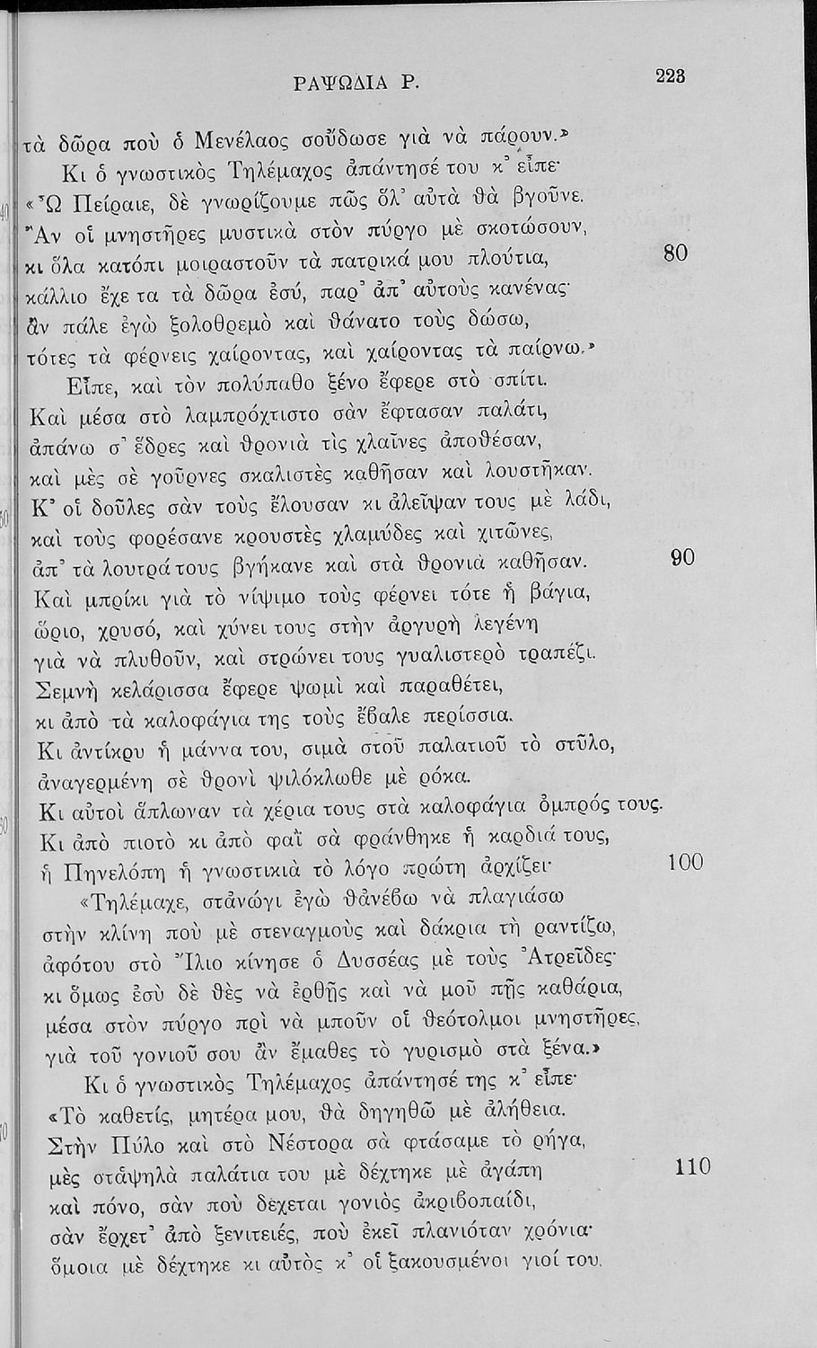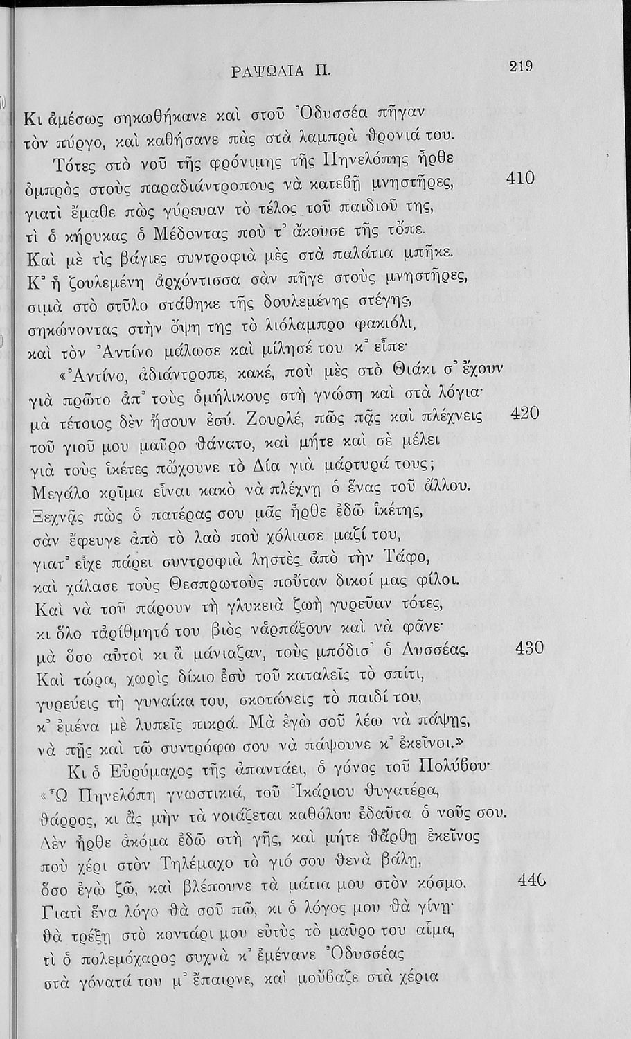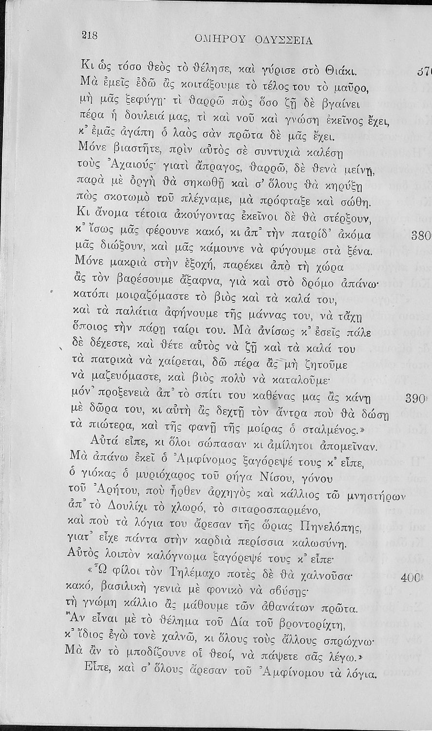 Σχολικό εγχειρίδιο της Α΄, Β΄, Γ΄ Γυμνασίου για το μάθημα των Αρχαίων Ελληνικών. Περιέχει τις ραψωδίες της Οδύσσειας, μετάφραση, ερμηνευτικά και πραγματολογικά σχόλια, καθώς και γραμματικές παρατηρήσεις.