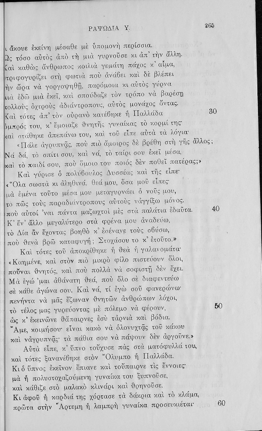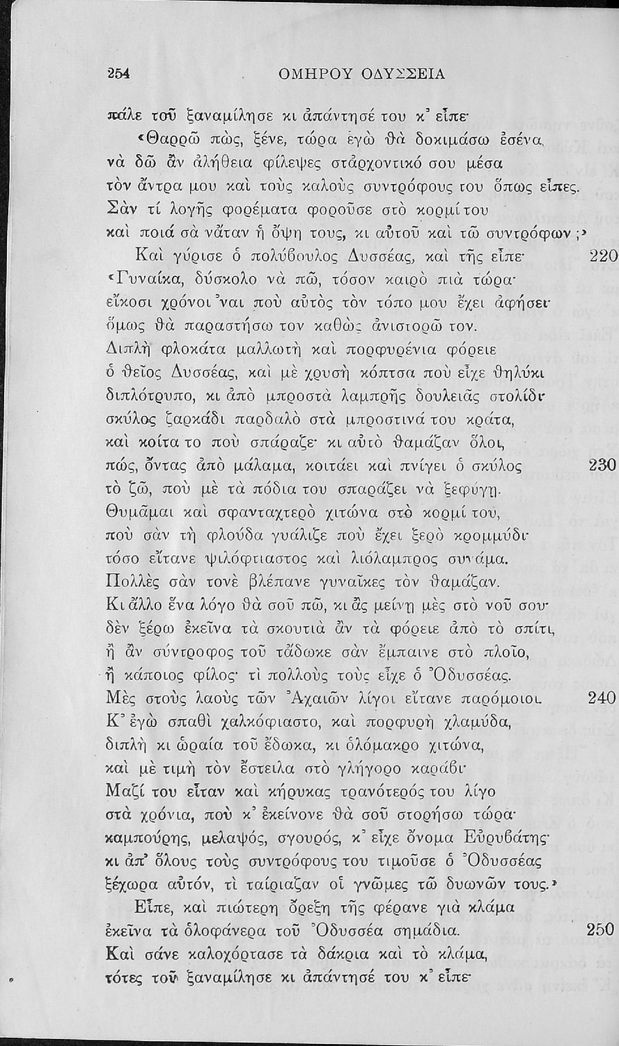 Παρουσίαση περιεχομένου: Σχολικό εγχειρίδιο της Α΄, Β΄, Γ΄ Γυμνασίου για το μάθημα των Αρχαίων Ελληνικών. Περιέχει τις ραψωδίες της Οδύσσειας και ερμηνευτικά, πραγματολογικά σχόλια, καθώς κ και γραμματικές παρατηρήσεις του συγγραφέα. Εγκρίθηκε για μια πενταετία 1932-1937.