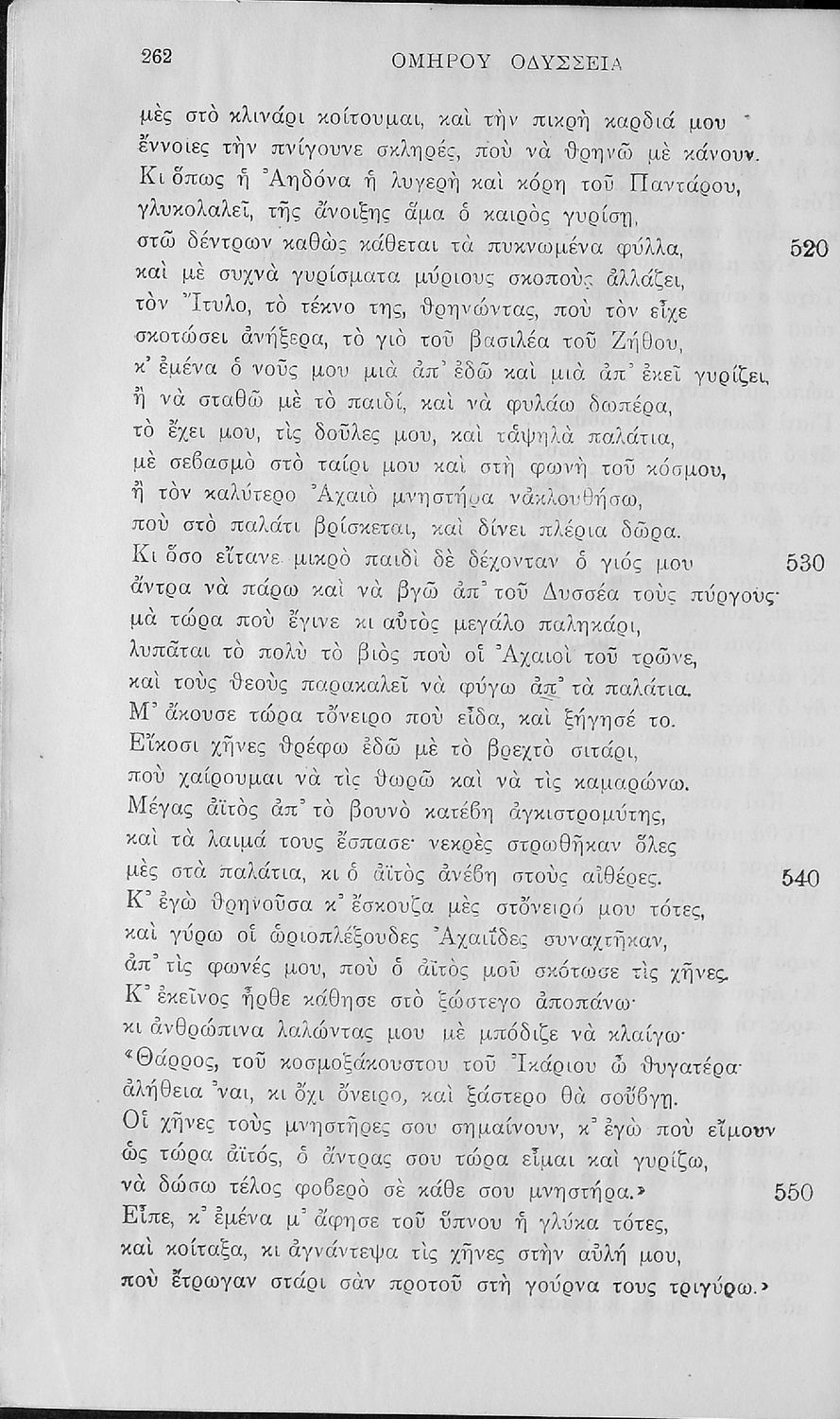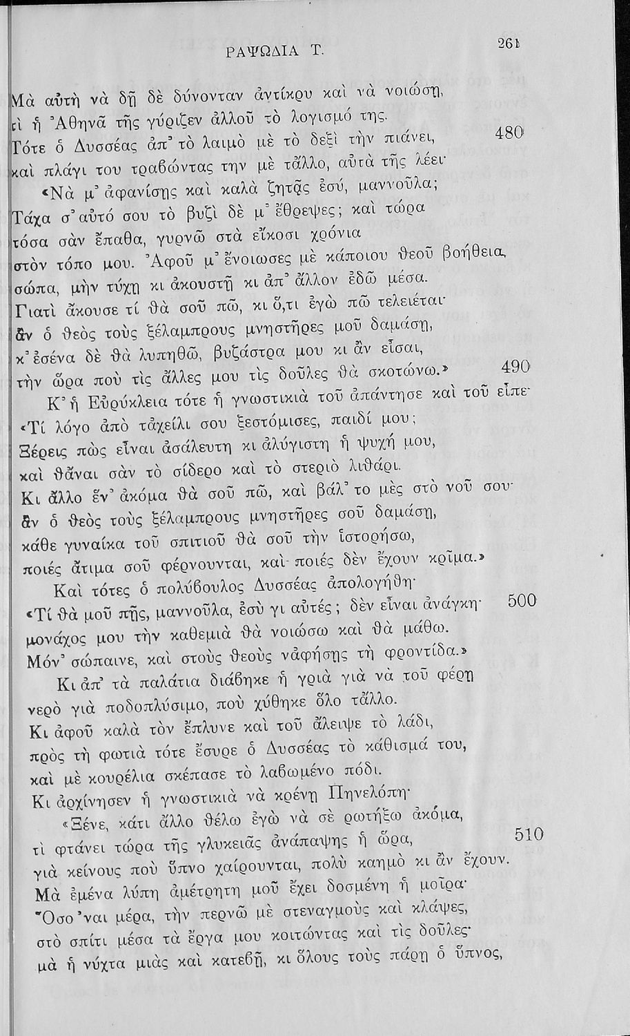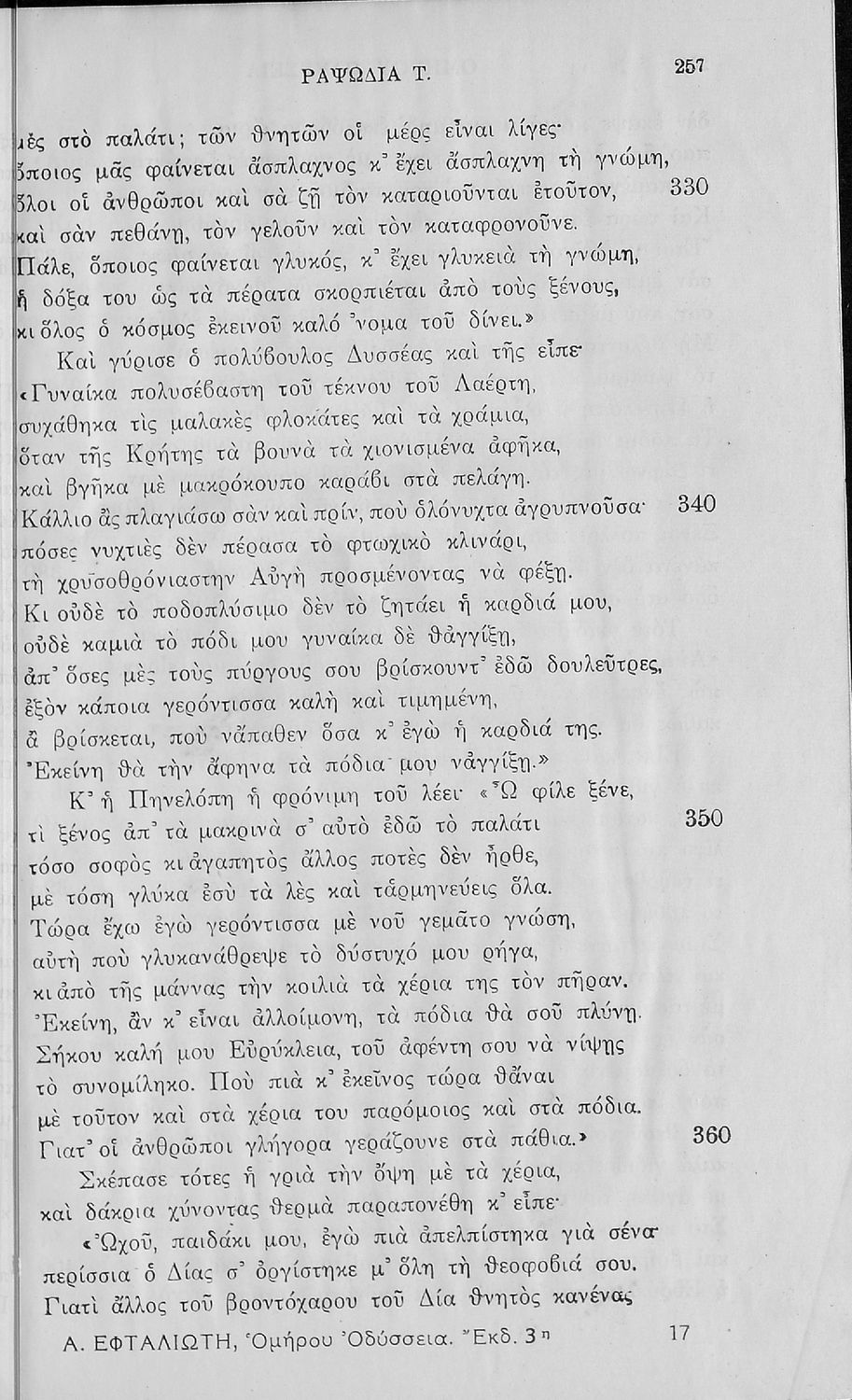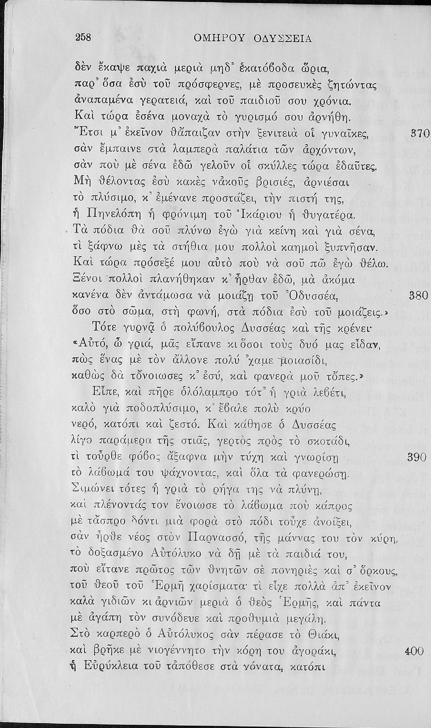 Σχολικό εγχειρίδιο της Α΄, Β΄, Γ΄ Γυμνασίου για το μάθημα των Αρχαίων Ελληνικών. Περιέχει τις ραψωδίες της Οδύσσειας, μετάφραση, ερμηνευτικά και πραγματολογικά σχόλια, καθώς και γραμματικές παρατηρήσεις.