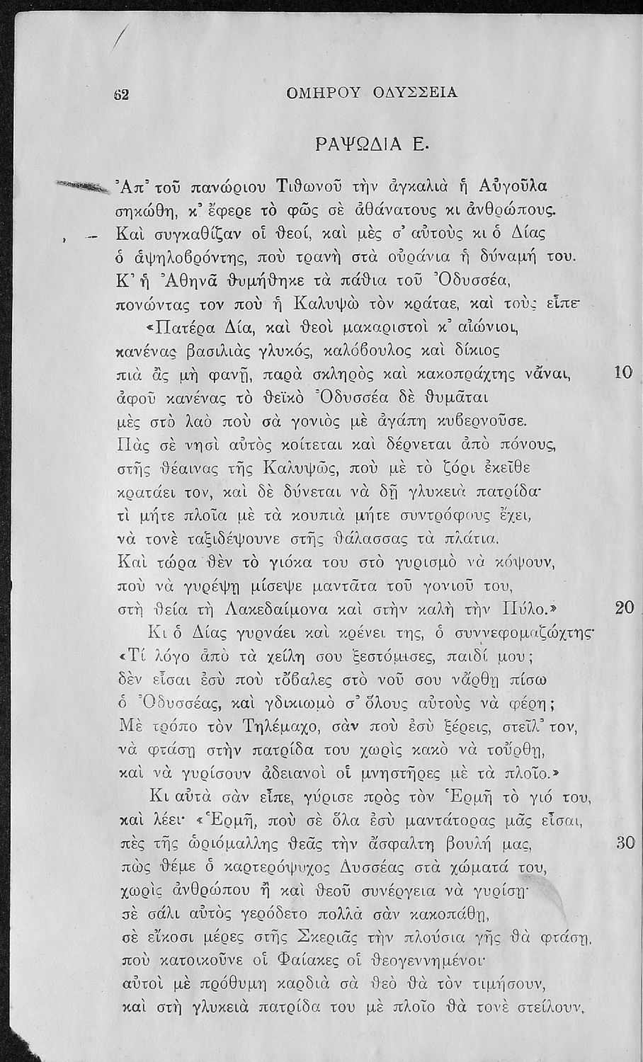 Σχολικό εγχειρίδιο της Α΄, Β΄, Γ΄ Γυμνασίου για το μάθημα των Αρχαίων Ελληνικών. Περιέχει τις ραψωδίες της Οδύσσειας και ερμηνευτικά, πραγματολογικά σχόλια, καθώς κ και γραμματικές παρατηρήσεις του συγγραφέα. Εγκρίθηκε για μια πενταετία 1932-1937.