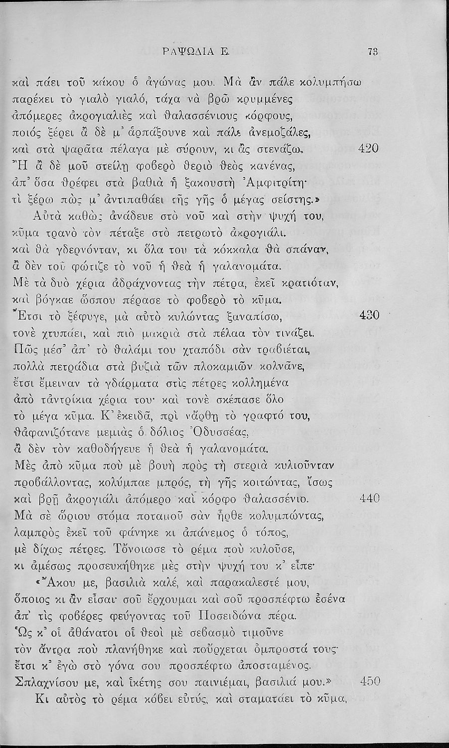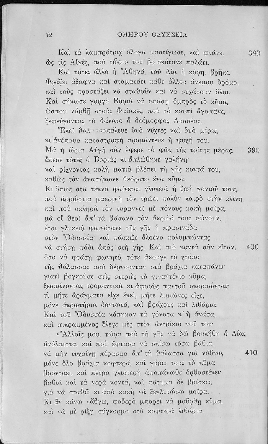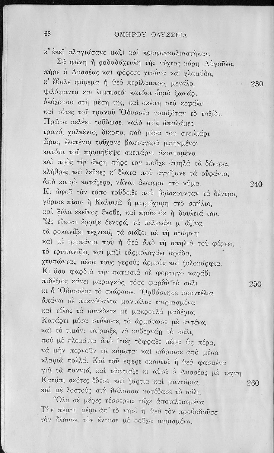 Σχολικό εγχειρίδιο της Α΄, Β΄, Γ΄ Γυμνασίου για το μάθημα των Αρχαίων Ελληνικών. Περιέχει τις ραψωδίες της Οδύσσειας, μετάφραση, ερμηνευτικά και πραγματολογικά σχόλια, καθώς και γραμματικές παρατηρήσεις.