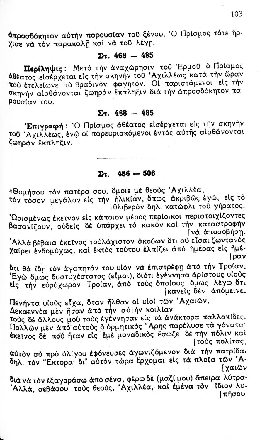 Ομήρου Ιλιάδος, Εκλογαί Ραψωδία Ω, δια τους μαθητάς της ΣΤ΄ τάξεως των εξατάξιων Γυμνασίων κατά το εγκεκριμένον βιβλίον του Ο.Ε.Σ.Β.
