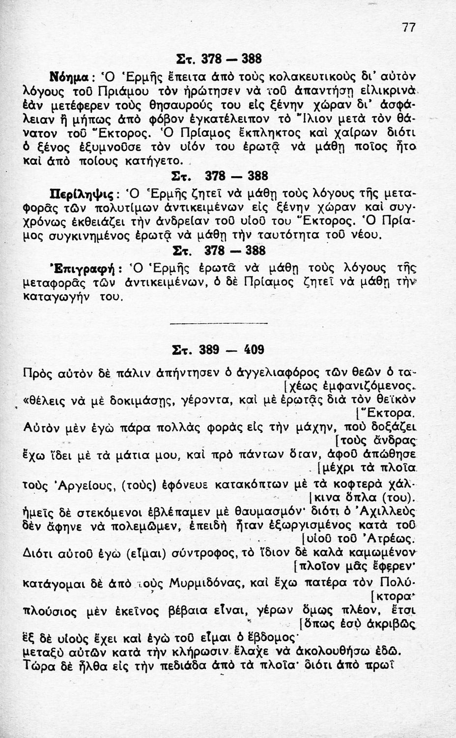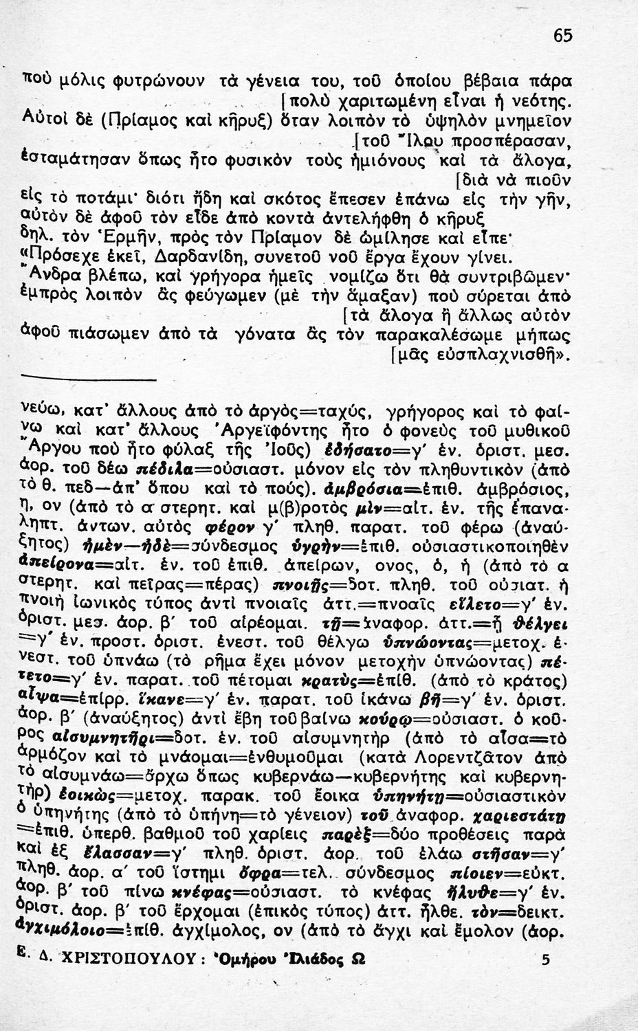 Ομήρου Ιλιάδος, Εκλογαί Ραψωδία Ω, δια τους μαθητάς της ΣΤ΄ τάξεως των εξατάξιων Γυμνασίων κατά το εγκεκριμένον βιβλίον του Ο.Ε.Σ.Β.