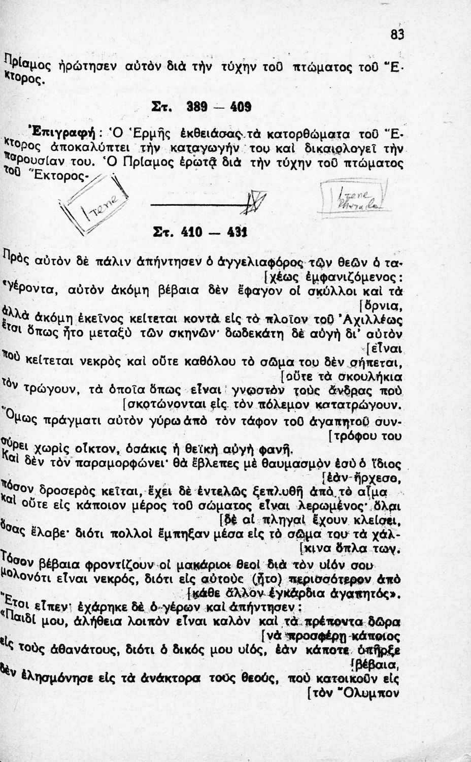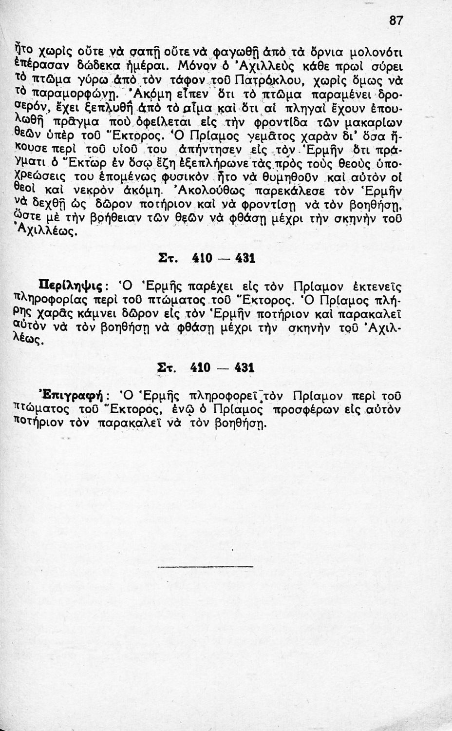 Κωδικός αναγνώρισης: 01-45087 Τίτλος: Ομήρου Ιλιάδος, Εκλογαί Ραψωδία Ω, δια τους μαθητάς της ΣΤ΄ τάξεως των εξατάξιων Γυμνασίων κατά το εγκεκριμένον βιβλίον του Ο.Ε.Σ.Β. Συγγραφέας: Ευθ. Δ. Χριστόπουλος, Νικόλαος Σ. Ασωνίτης (επιμ.) Μέγεθος και υπόστρωμα: Μαθητικό βοήθημα, μαλακό εξώφυλλο, 160 σελίδες. |