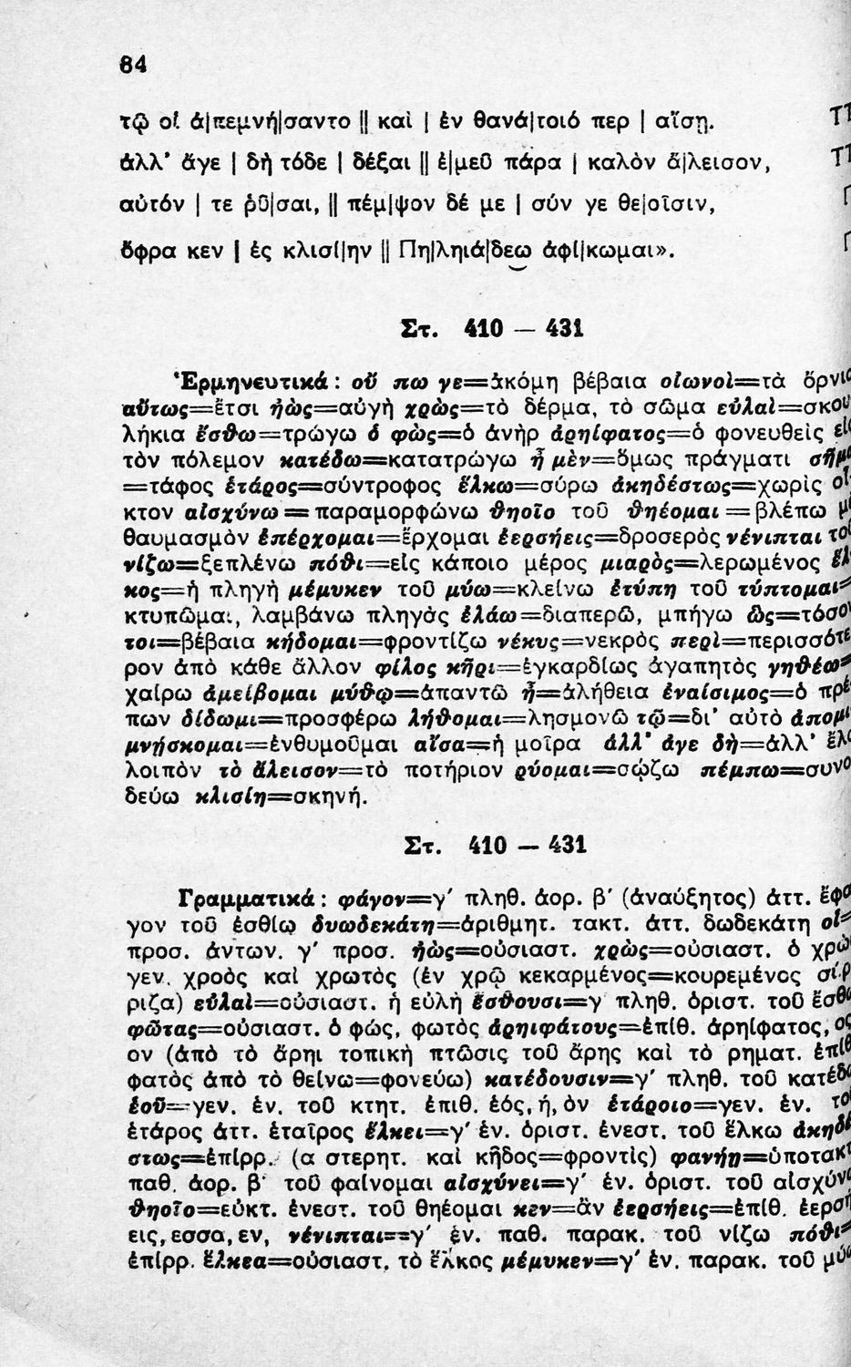 Μαθητικό βοήθημα Αρχαίων Ελληνικών για την ΣΤ΄ Γυμνασίου. Περιλαμβάνει μετάφραση, ερμηνευτικά, γραμματικά και συντακτικά σχόλια καθώς και το νόημα του σχολικού βιβλίου.