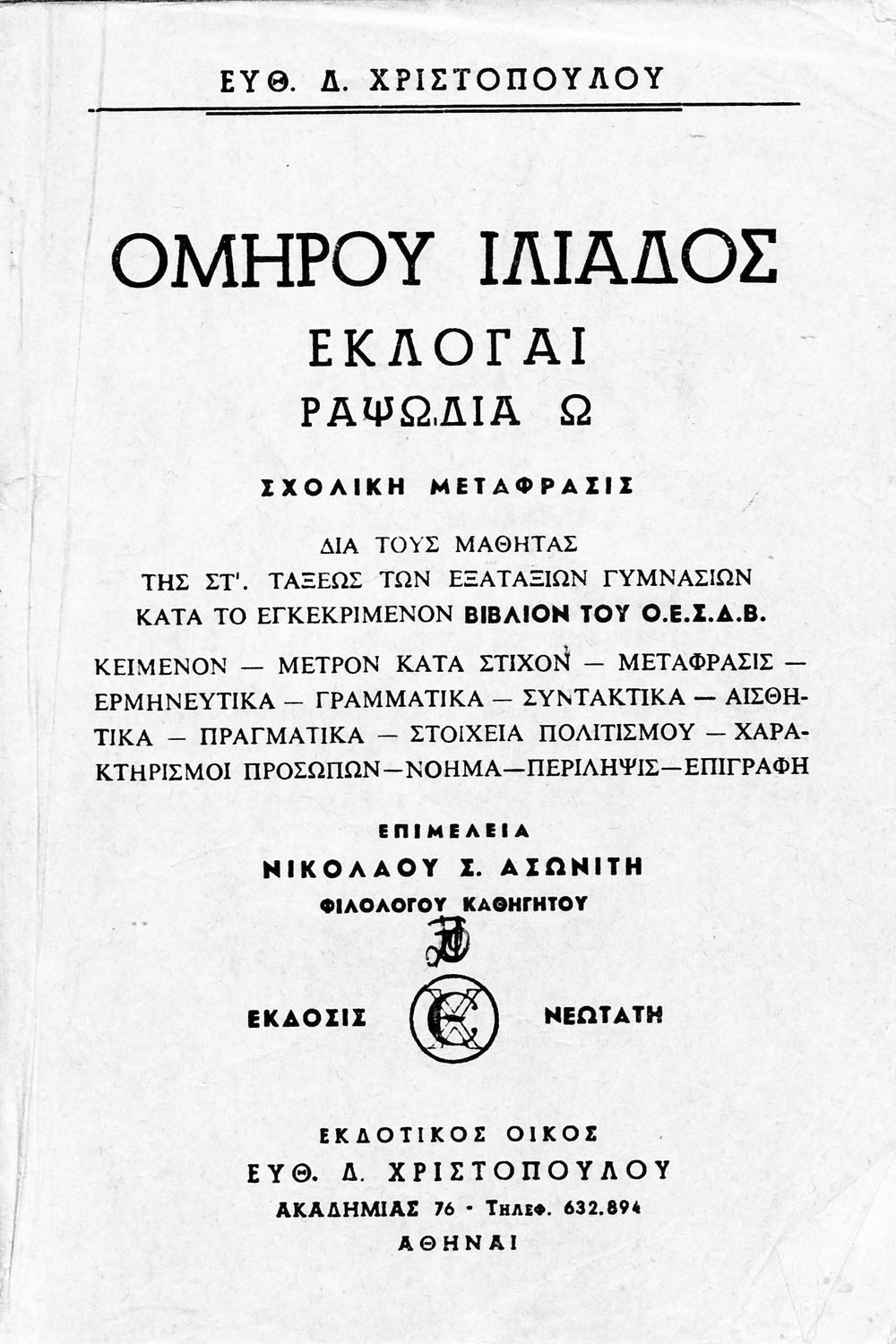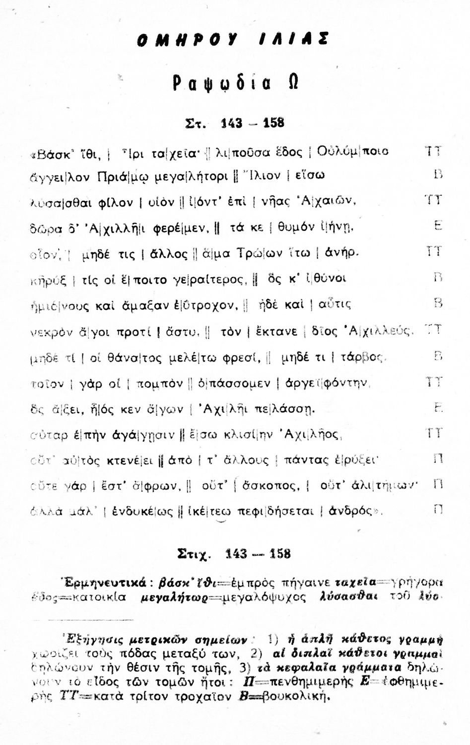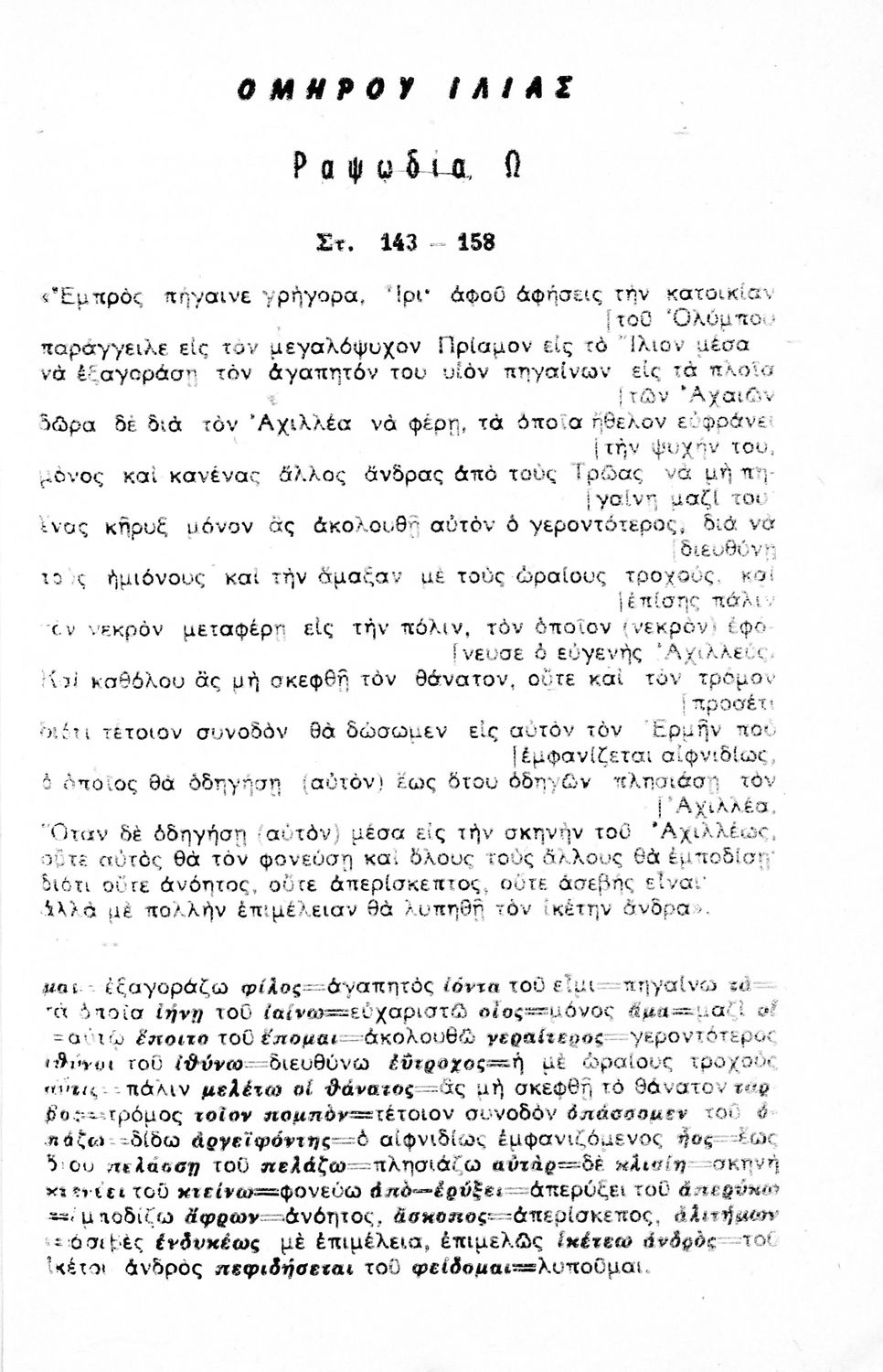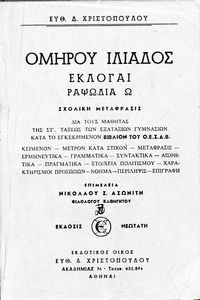 Ομήρου Ιλιάδος, Εκλογαί Ραψωδία Ω, δια τους μαθητάς της ΣΤ΄ τάξεως των εξατάξιων Γυμνασίων κατά το εγκεκριμένον βιβλίον του Ο.Ε.Σ.Β.