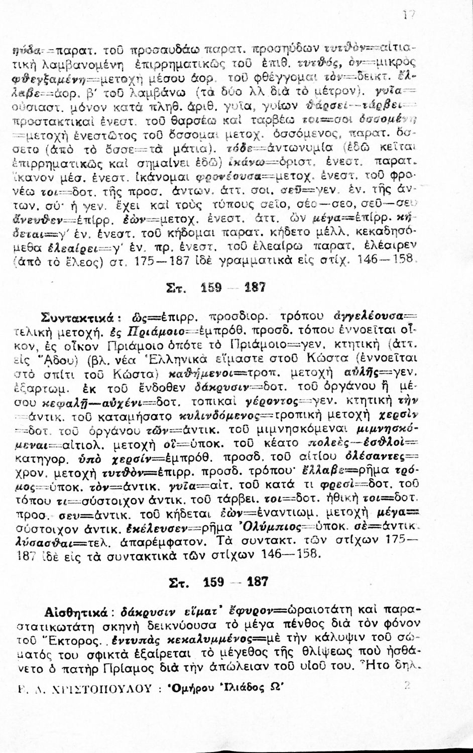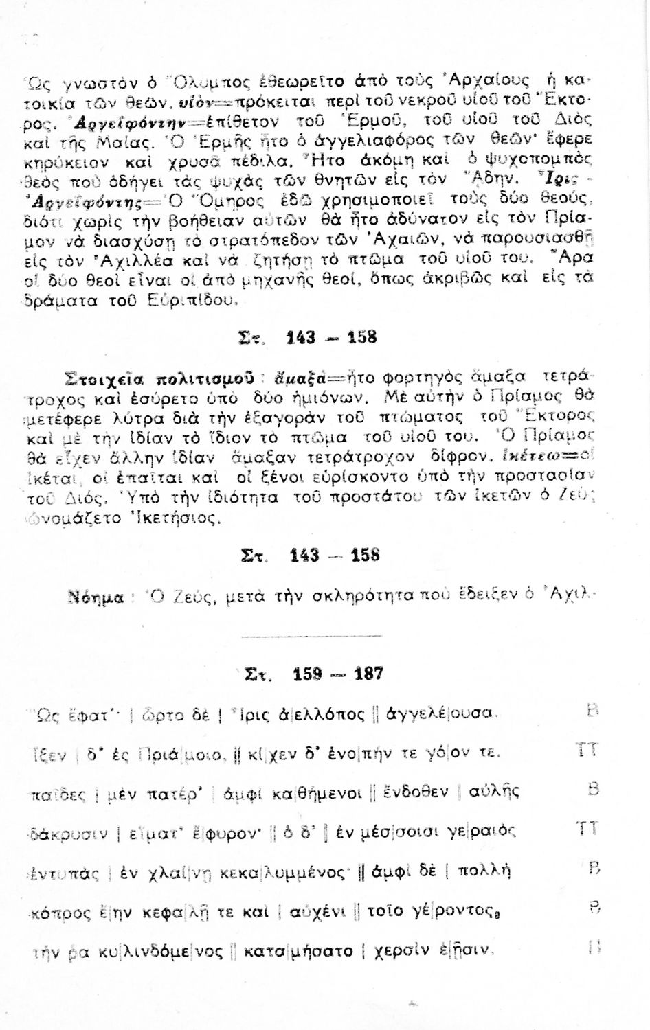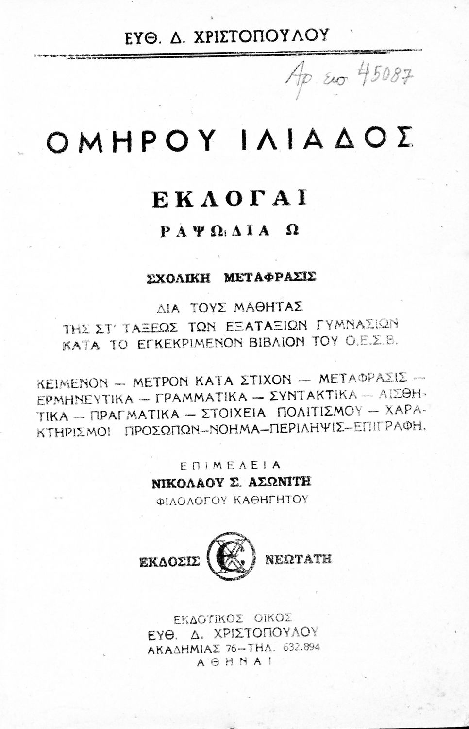 Ομήρου Ιλιάδος, Εκλογαί Ραψωδία Ω, δια τους μαθητάς της ΣΤ΄ τάξεως των εξατάξιων Γυμνασίων κατά το εγκεκριμένον βιβλίον του Ο.Ε.Σ.Β.