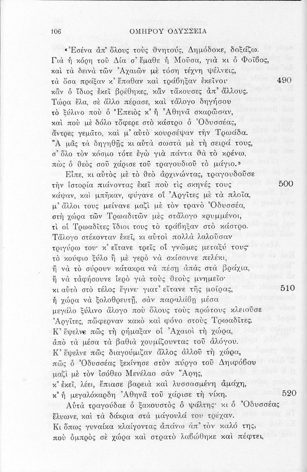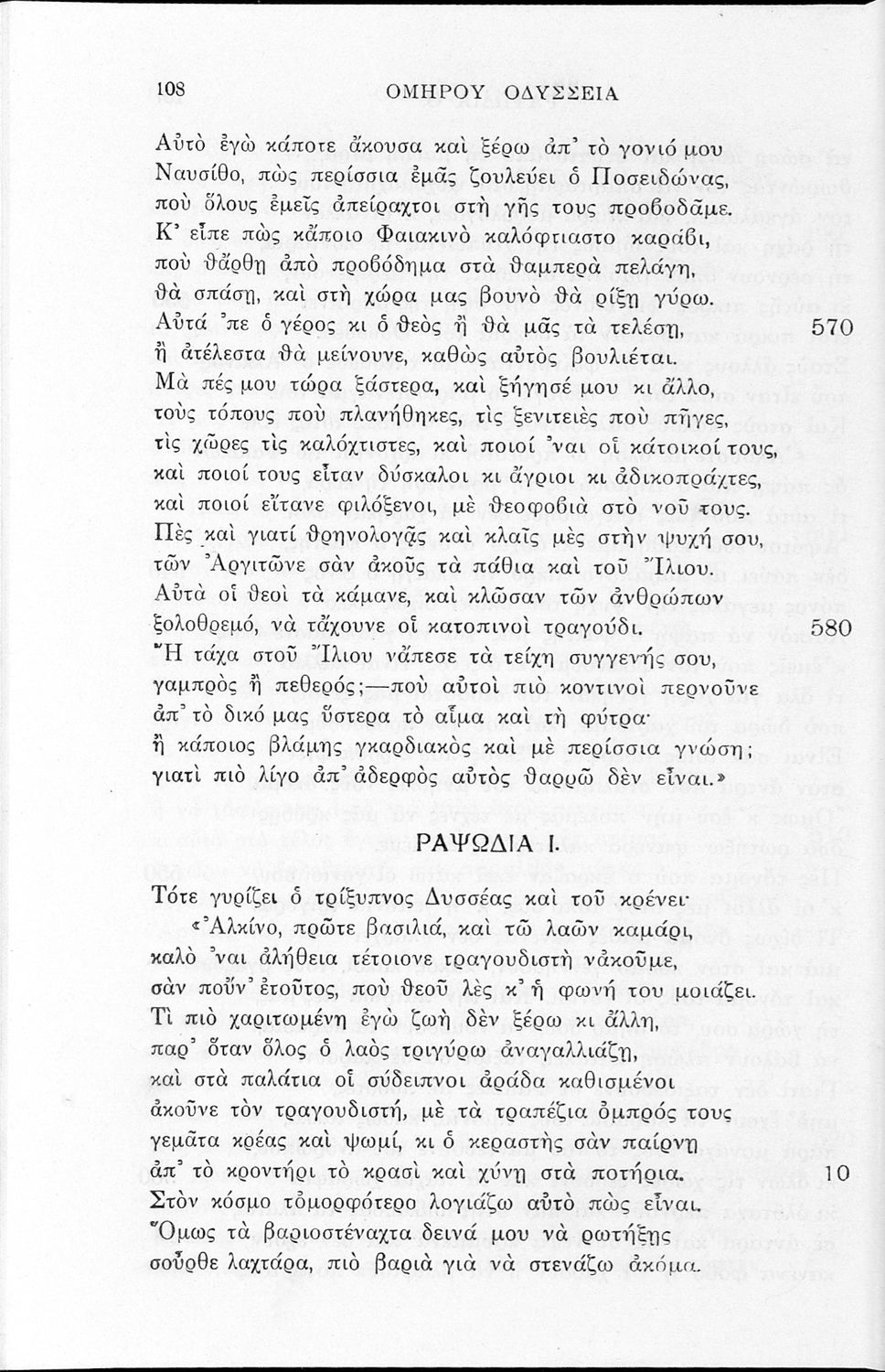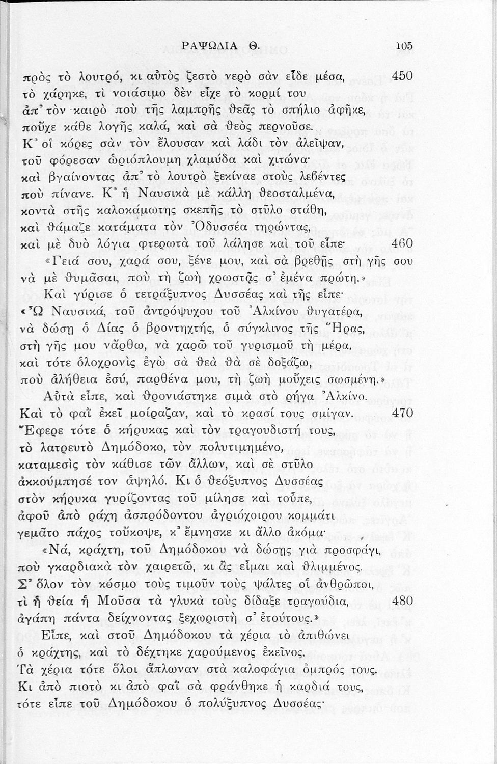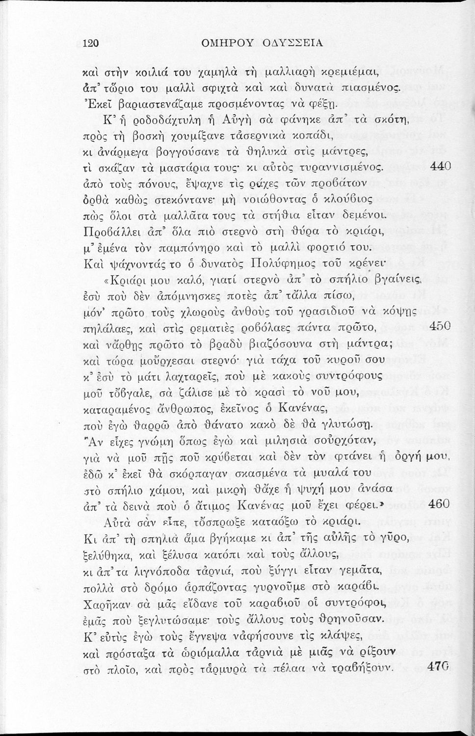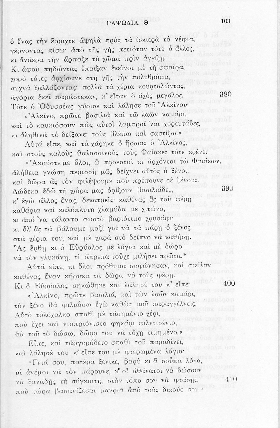 Σχολικό εγχειρίδιο της Α΄, Β΄, Γ΄ Γυμνασίου για το μάθημα των Αρχαίων Ελληνικών. Περιέχει τις ραψωδίες της Οδύσσειας, μετάφραση, ερμηνευτικά και πραγματολογικά σχόλια, καθώς και γραμματικές παρατηρήσεις.