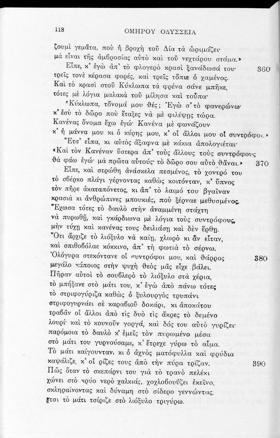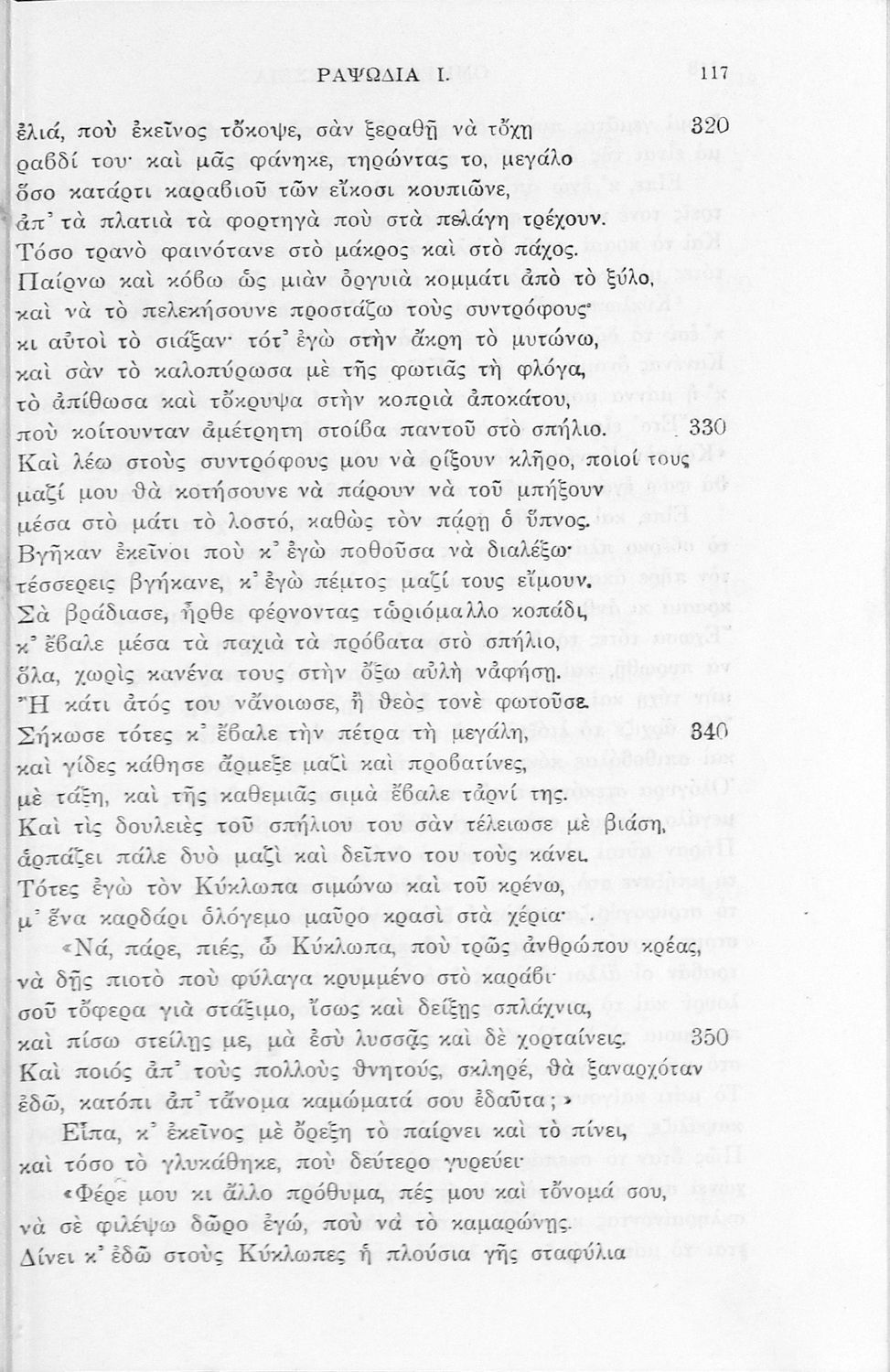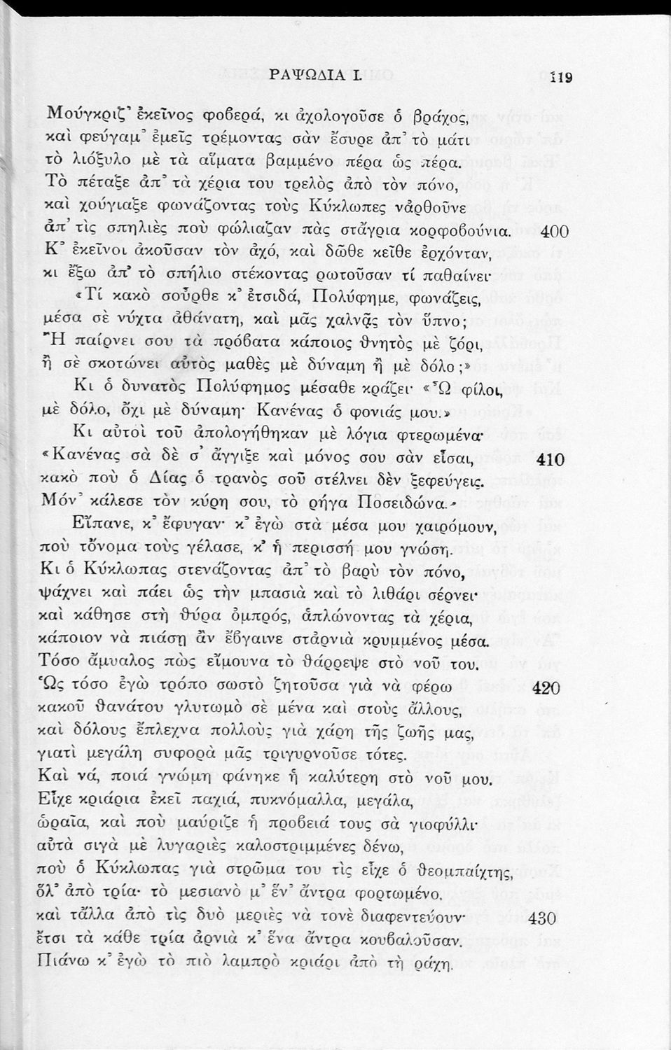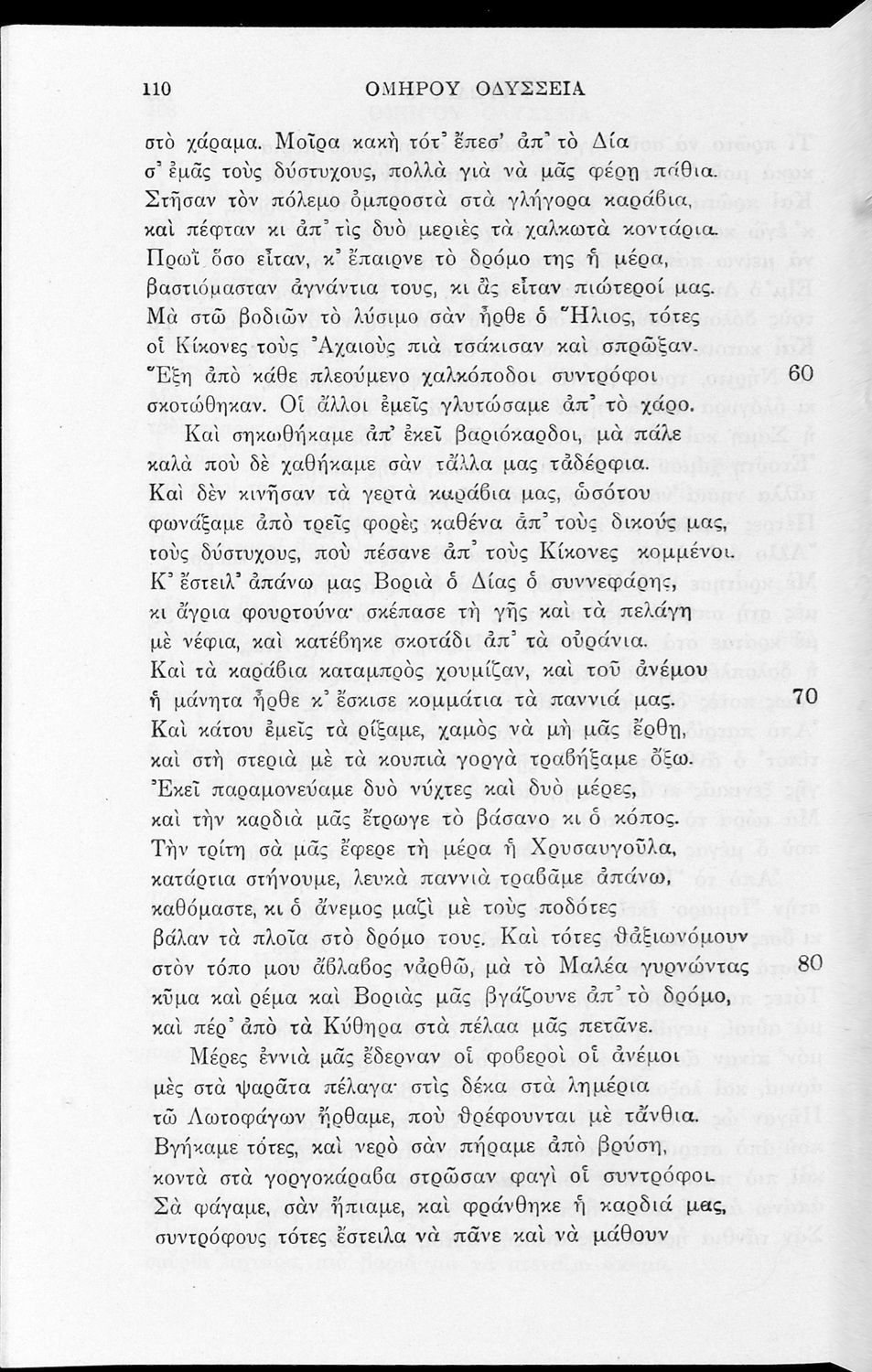 Σχολικό εγχειρίδιο της Α΄, Β΄, Γ΄ Γυμνασίου για το μάθημα των Αρχαίων Ελληνικών. Περιέχει τις ραψωδίες της Οδύσσειας, μετάφραση, ερμηνευτικά και πραγματολογικά σχόλια, καθώς και γραμματικές παρατηρήσεις.
