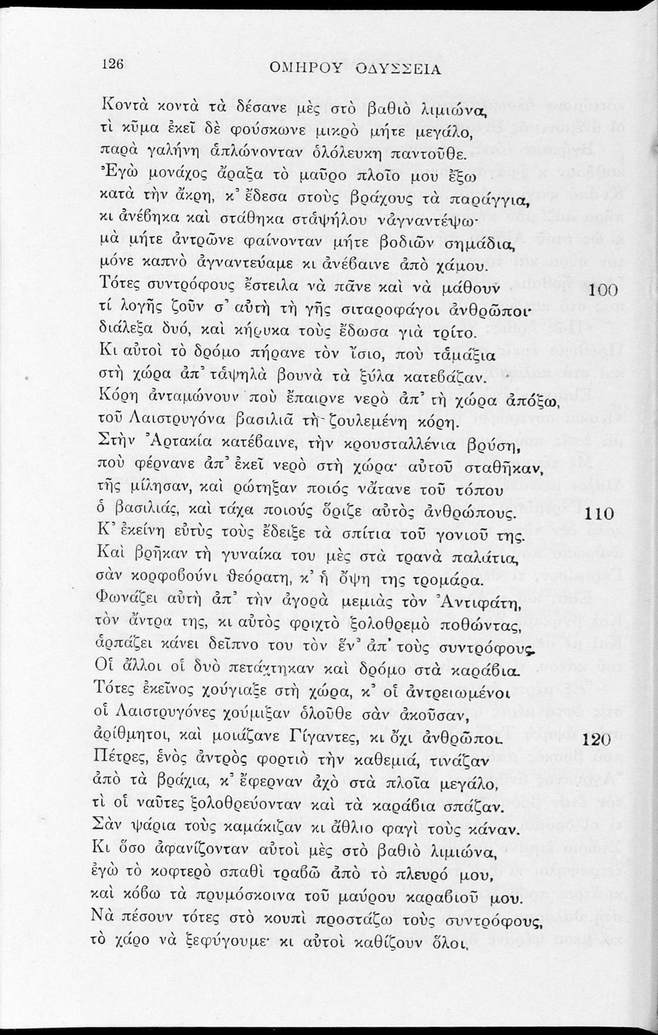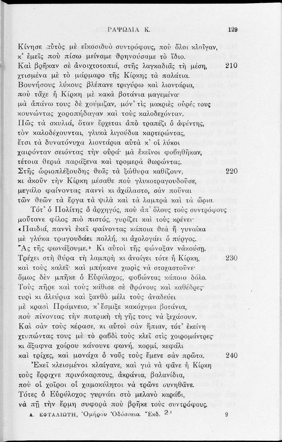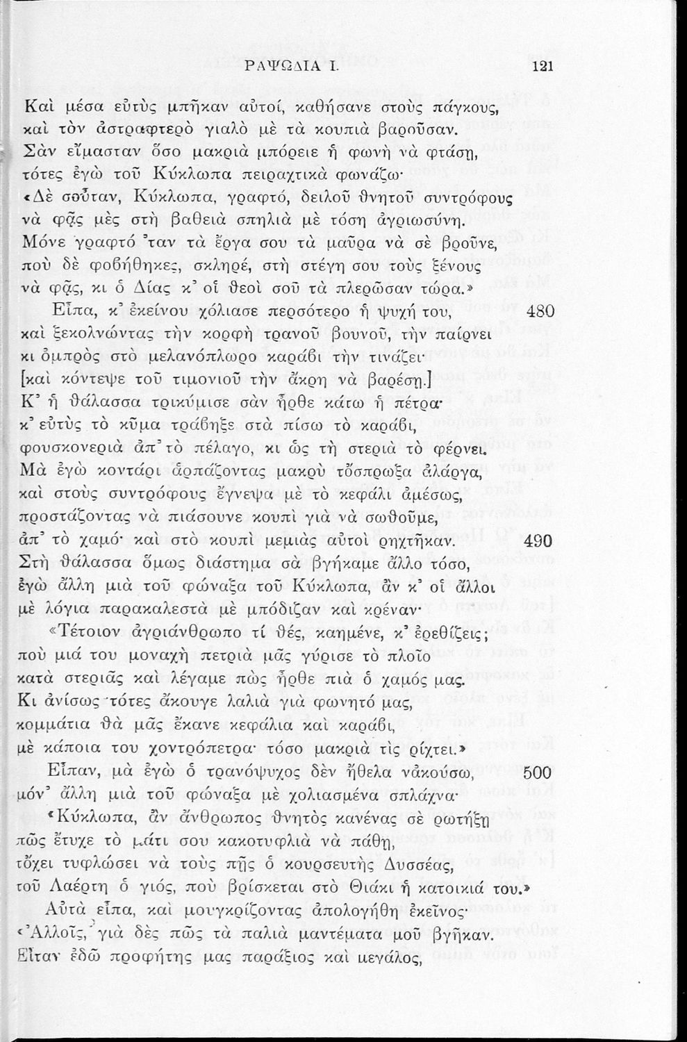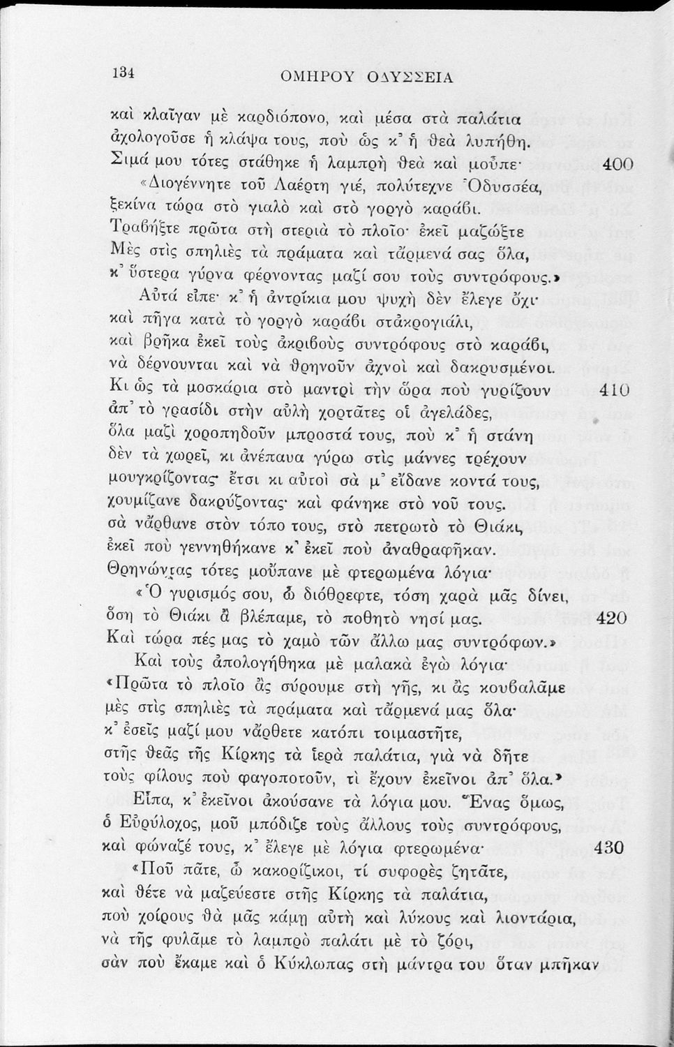 Σχολικό εγχειρίδιο της Α΄, Β΄, Γ΄ Γυμνασίου για το μάθημα των Αρχαίων Ελληνικών. Περιέχει τις ραψωδίες της Οδύσσειας, μετάφραση, ερμηνευτικά και πραγματολογικά σχόλια, καθώς και γραμματικές παρατηρήσεις.