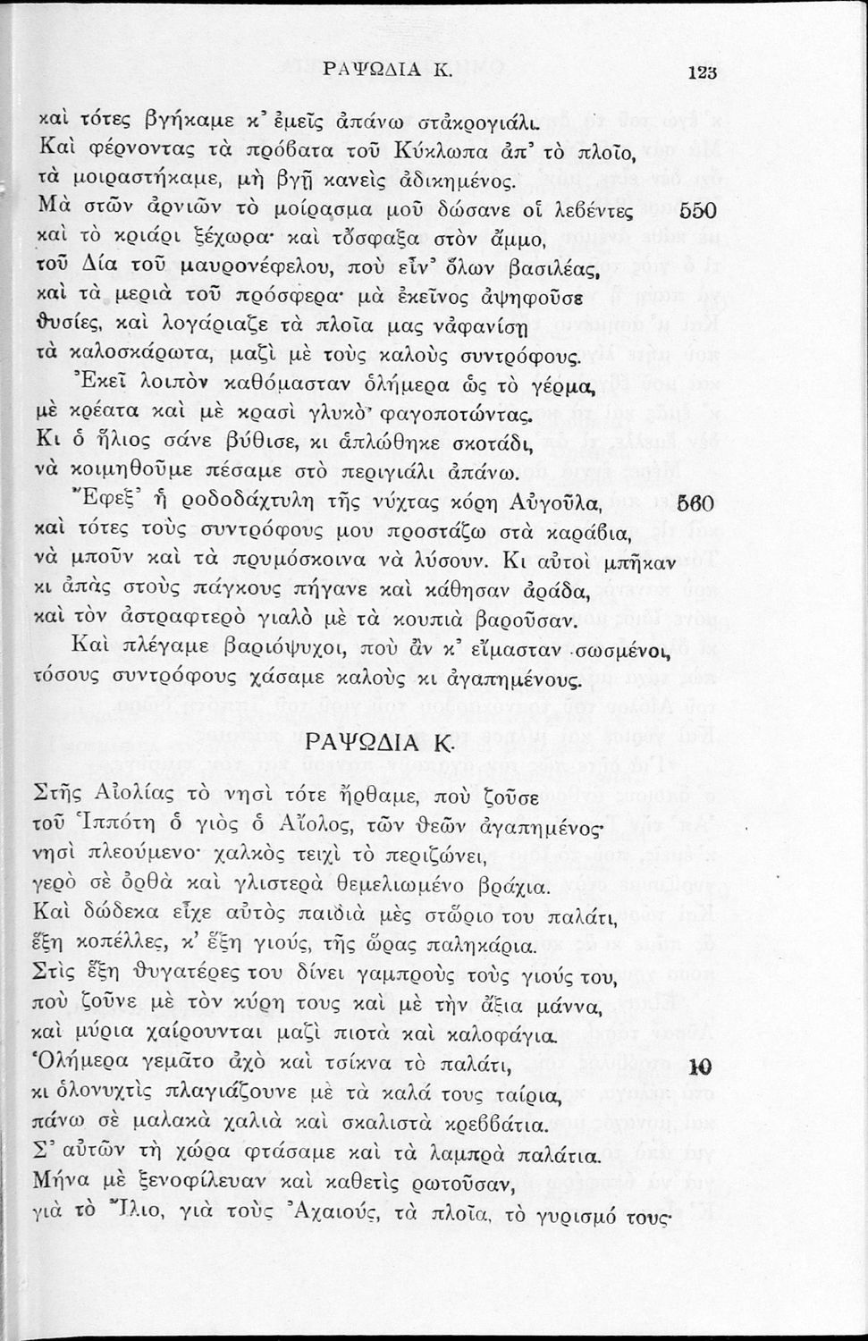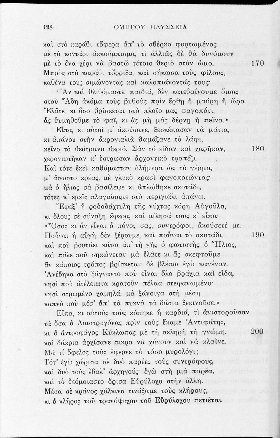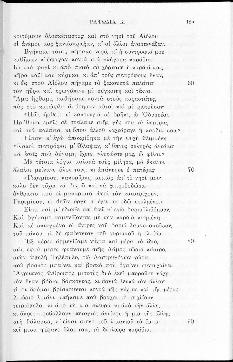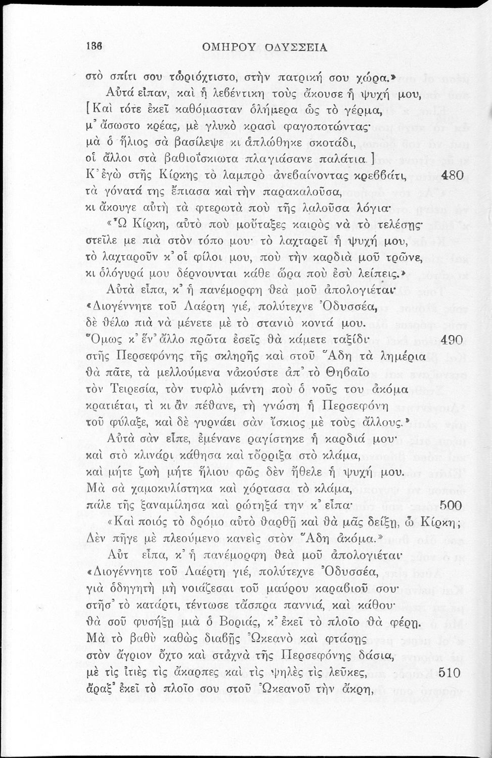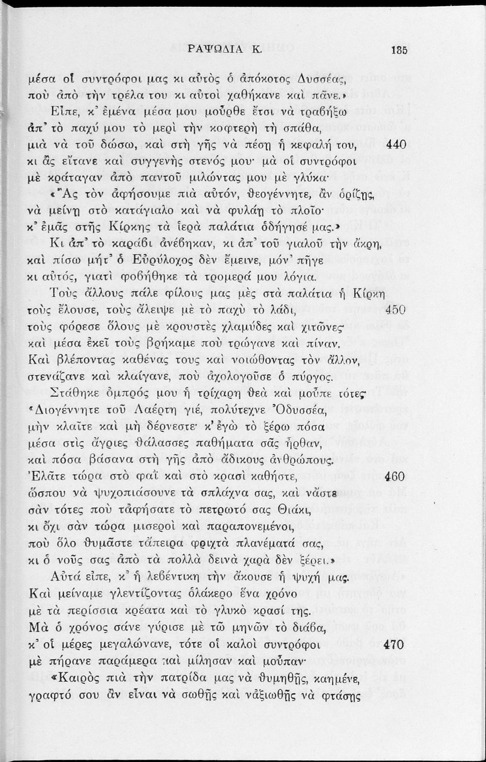 Σχολικό εγχειρίδιο της Α΄, Β΄, Γ΄ Γυμνασίου για το μάθημα των Αρχαίων Ελληνικών. Περιέχει τις ραψωδίες της Οδύσσειας, μετάφραση, ερμηνευτικά και πραγματολογικά σχόλια, καθώς και γραμματικές παρατηρήσεις.