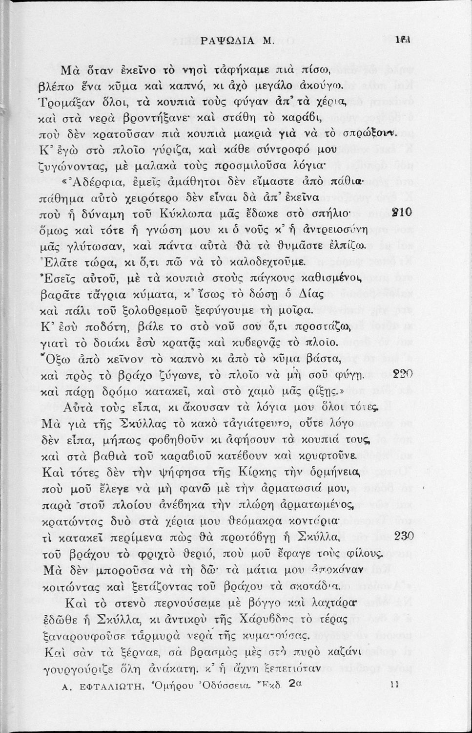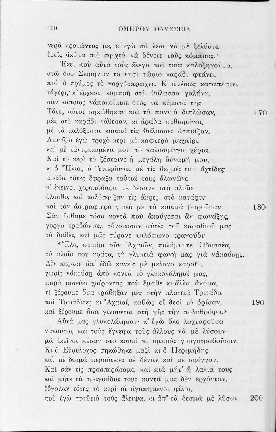Σχολικό εγχειρίδιο της Α΄, Β΄, Γ΄ Γυμνασίου για το μάθημα των Αρχαίων Ελληνικών. Περιέχει τις ραψωδίες της Οδύσσειας, μετάφραση, ερμηνευτικά και πραγματολογικά σχόλια, καθώς και γραμματικές παρατηρήσεις.