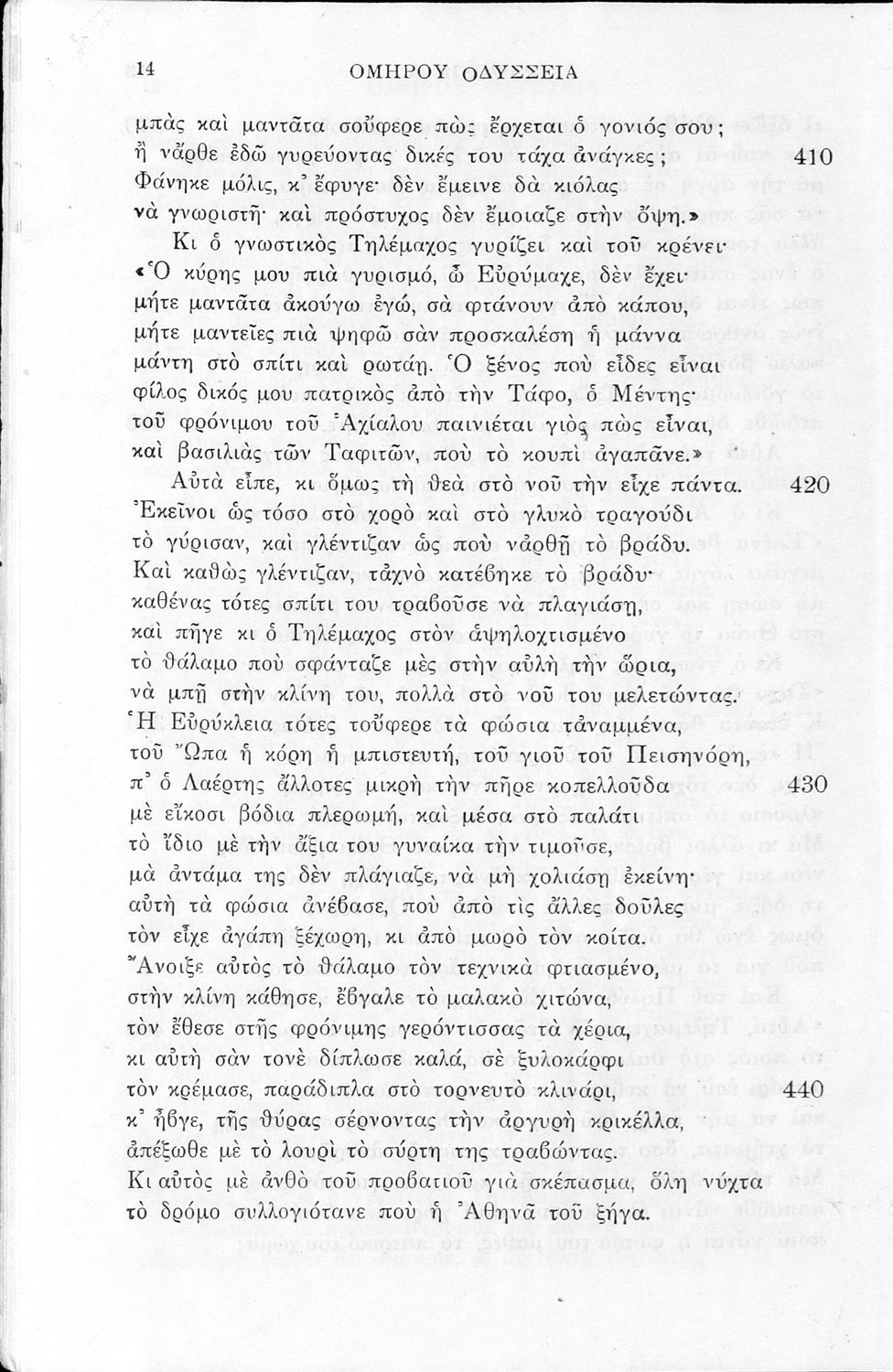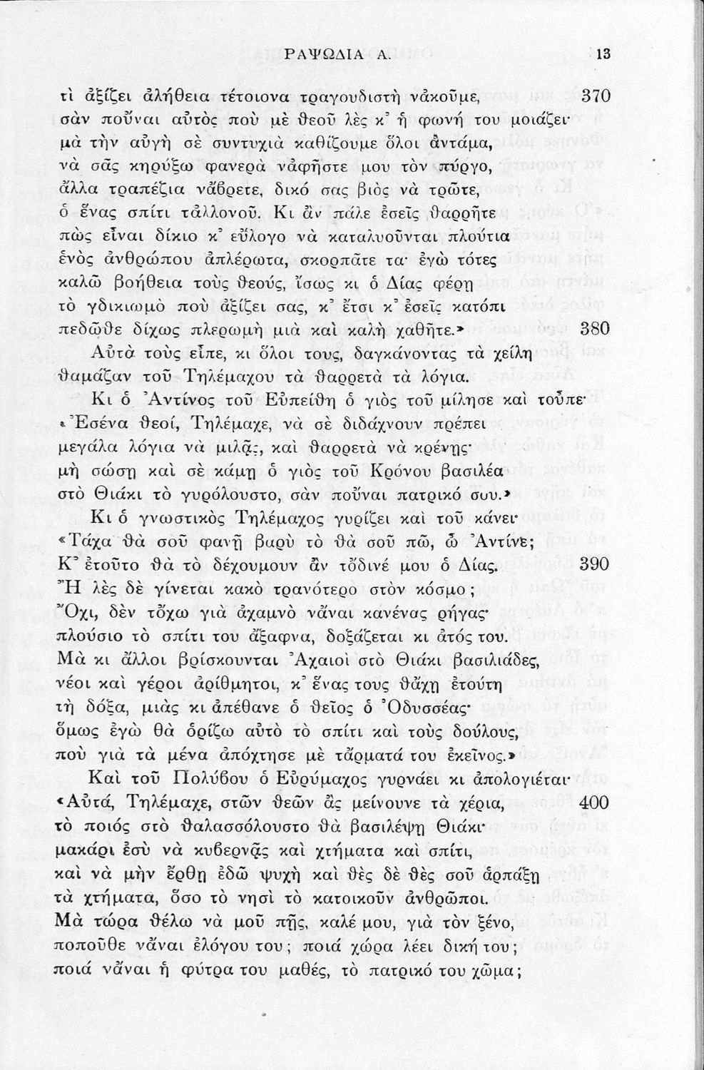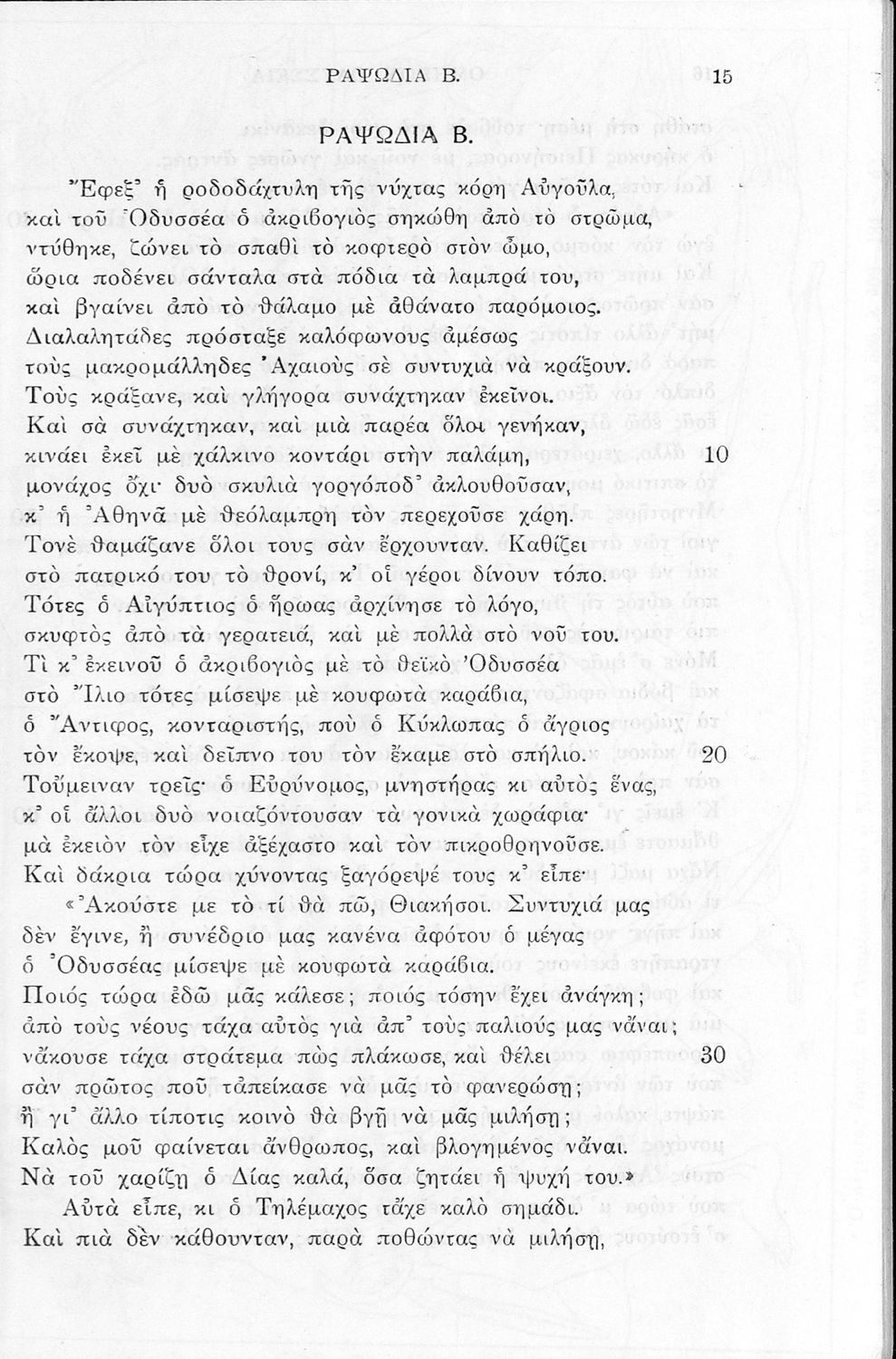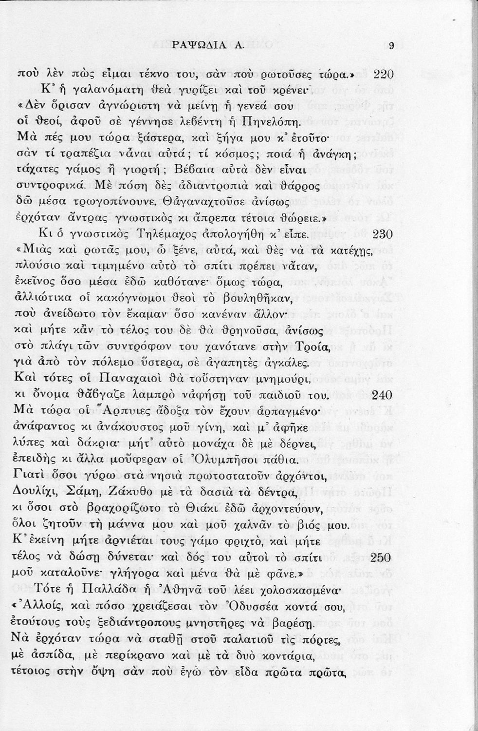 Σχολικό εγχειρίδιο της Α΄, Β΄, Γ΄ Γυμνασίου για το μάθημα των Αρχαίων Ελληνικών. Περιέχει τις ραψωδίες της Οδύσσειας, μετάφραση, ερμηνευτικά και πραγματολογικά σχόλια, καθώς και γραμματικές παρατηρήσεις.