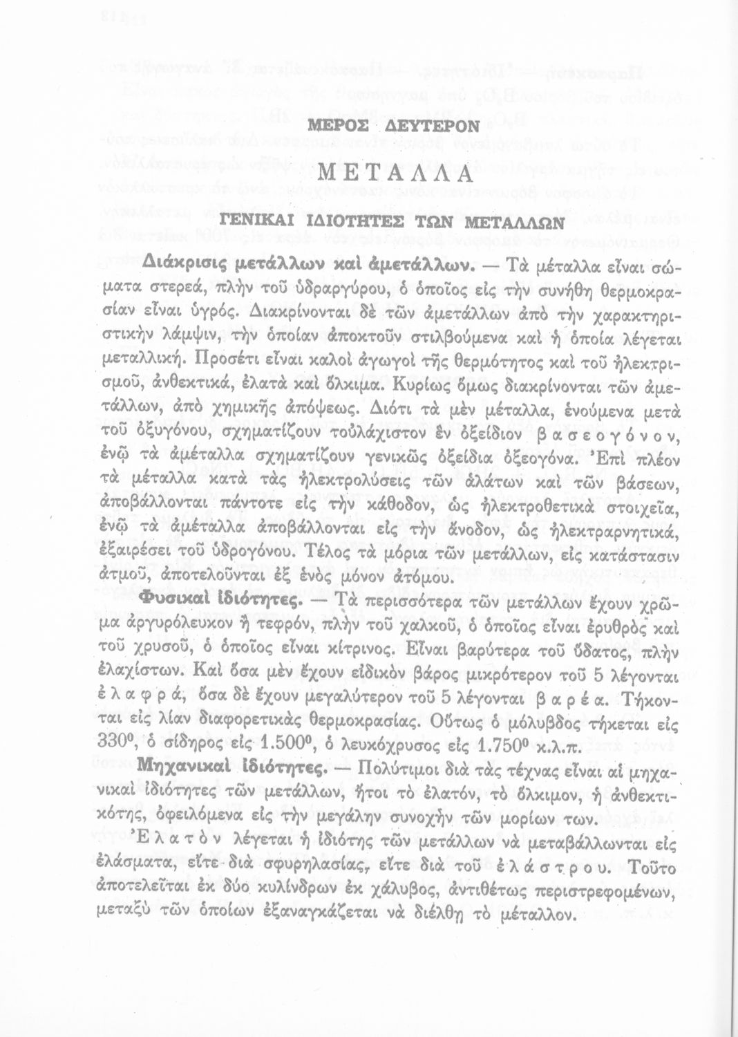 Σχολικό εγχειρίδιο Χημείας για τους μαθητές της Ε' Γυμνασίου. Χωρίζεται σε τρία μέρη. Στο πρώτο μέρος είναι μια γενική εισαγωγή στους θεμελιώδεις νόμους της Χημείας, τις χημικές αντιδράσεις, τα χημικά σύμβολα.