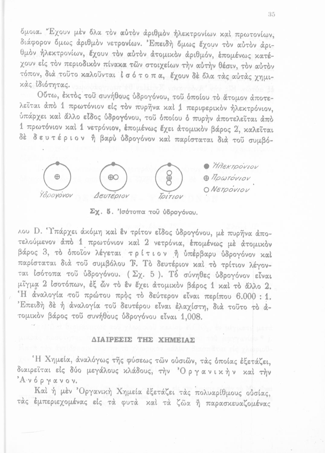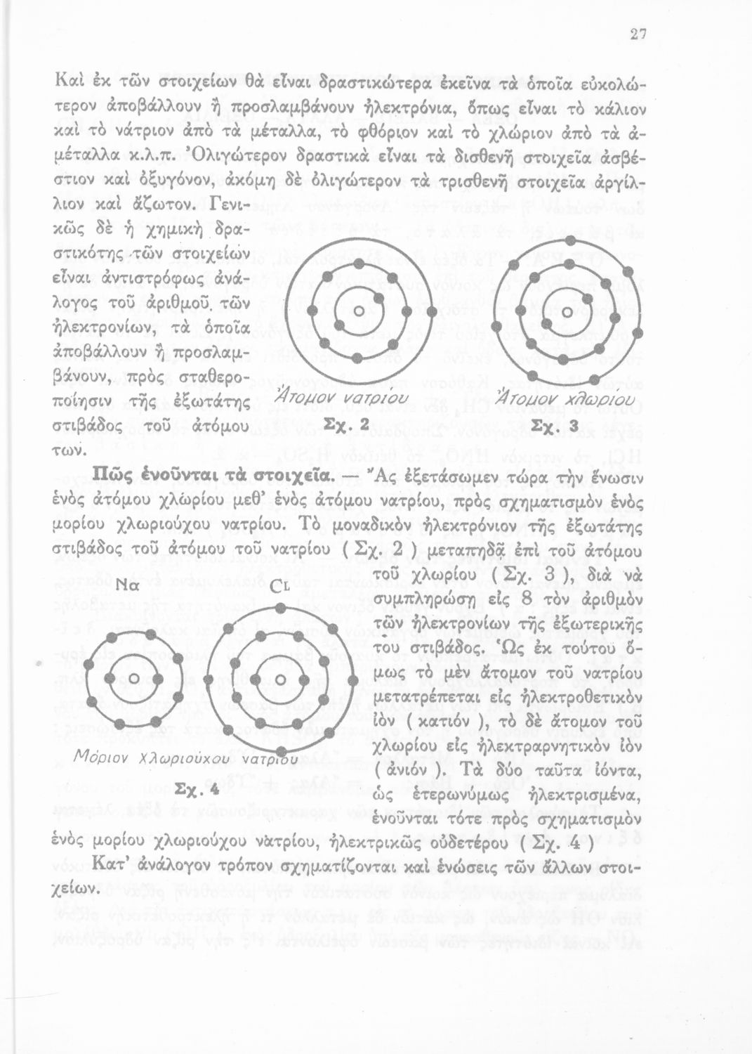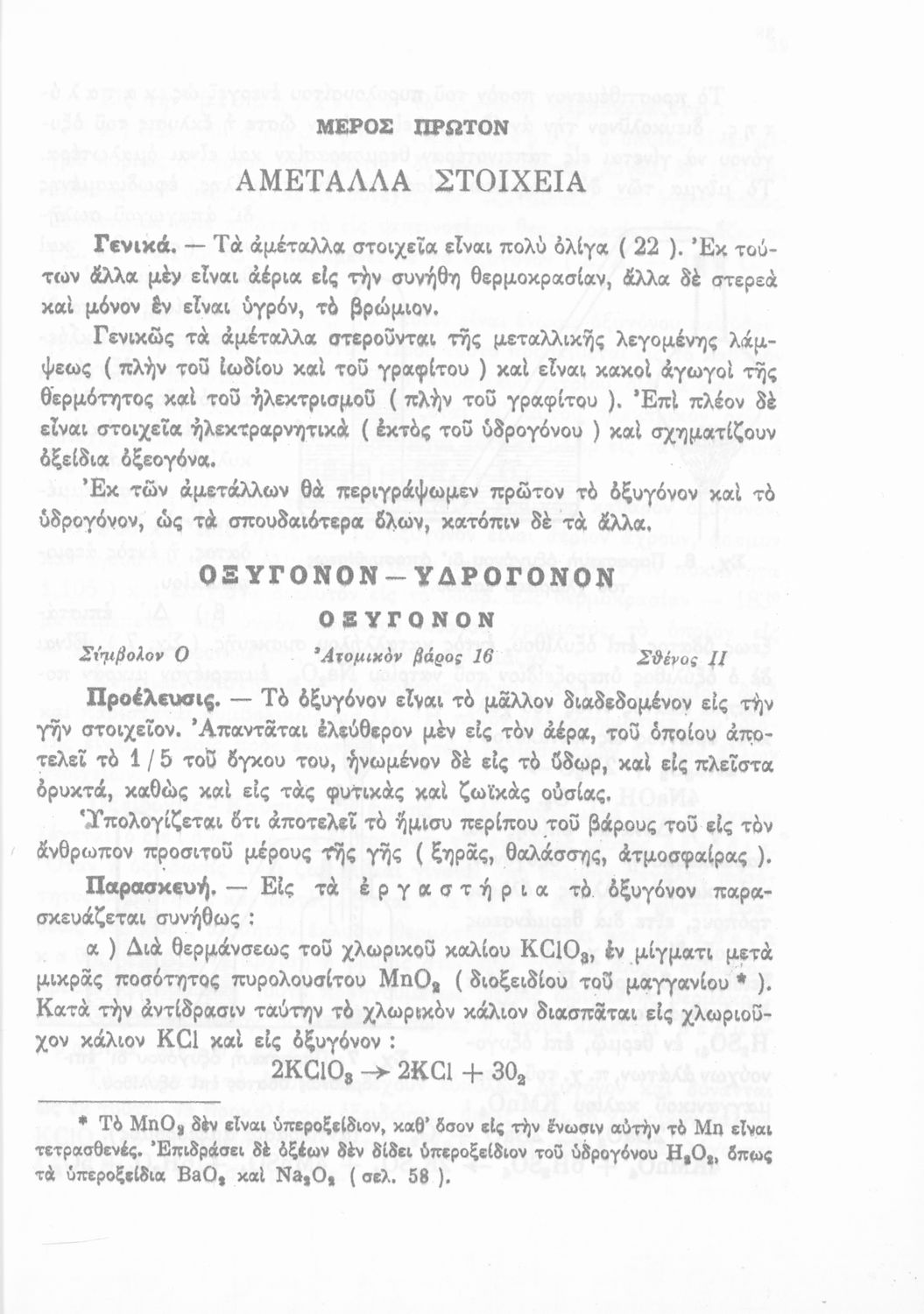 Σχολικό εγχειρίδιο Χημείας για τους μαθητές της Ε' Γυμνασίου. Χωρίζεται σε τρία μέρη. Στο πρώτο μέρος είναι μια γενική εισαγωγή στους θεμελιώδεις νόμους της Χημείας, τις χημικές αντιδράσεις, τα χημικά σύμβολα.