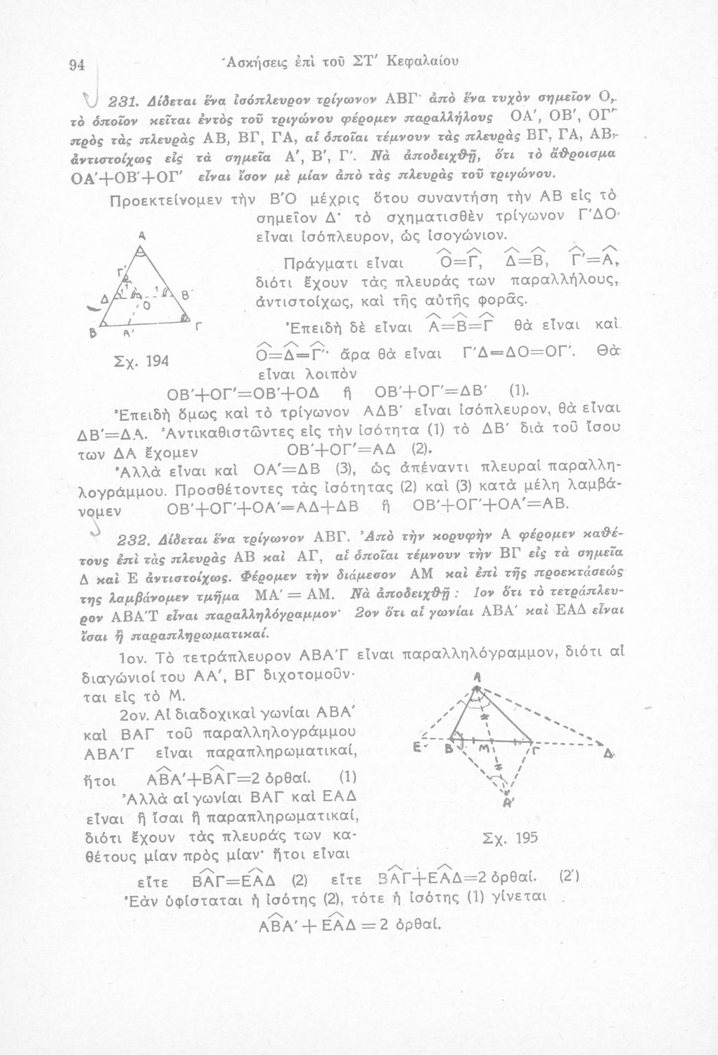 Ασκήσεις και προβλήματα Γεωμετρίας : προς χρήσιν των μαθητών των Γυμνασίων, των Πρακτικών Λυκείων, των υποψηφίων δια τας ανωτάτας σχολάς του κράτους, τόμος Α΄