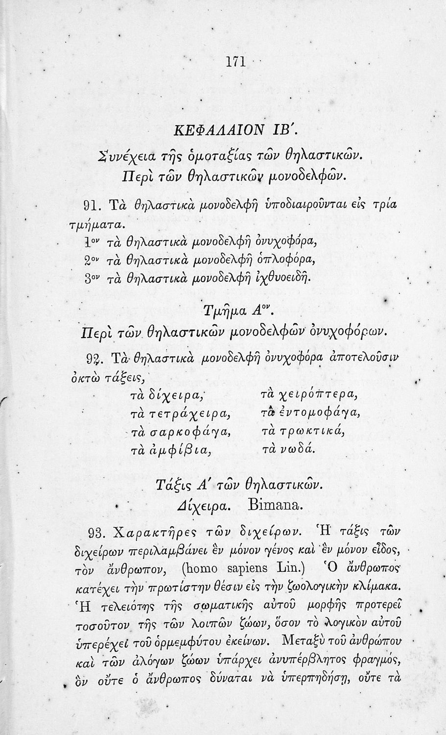 Σχολικό εγχειρίδιο Ζωολογίας που αντιμετωπίζει τις φυσικές επιστήμες ως "υπηρέτριες της θρησκείας" και εκκινεί από την "ηθική ωφέλεια που προκύπτει από την κατανόηση της άπειρης σοφίας και αγαθότητας του Δημιουργού".