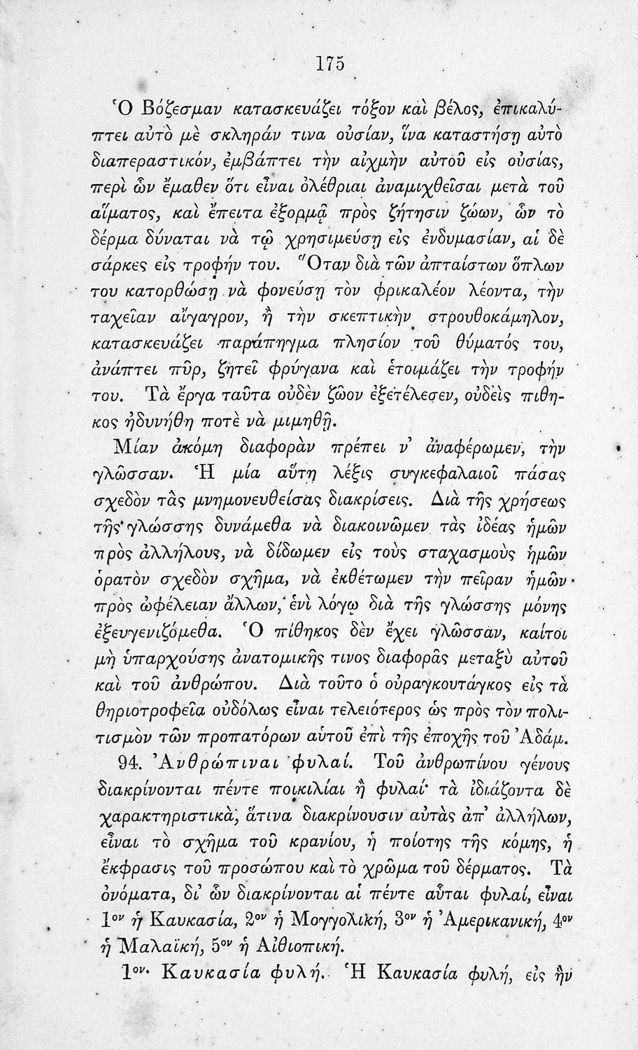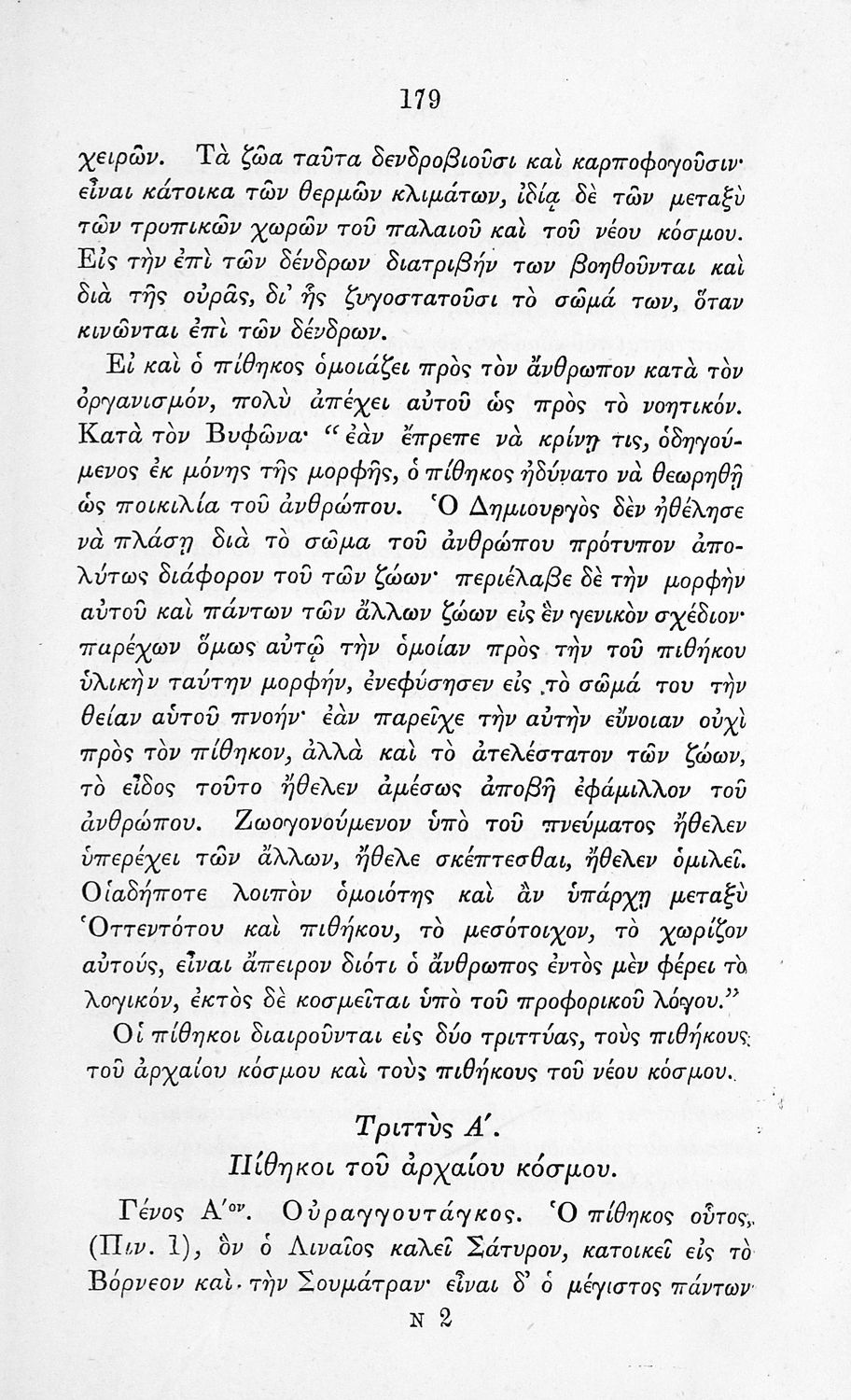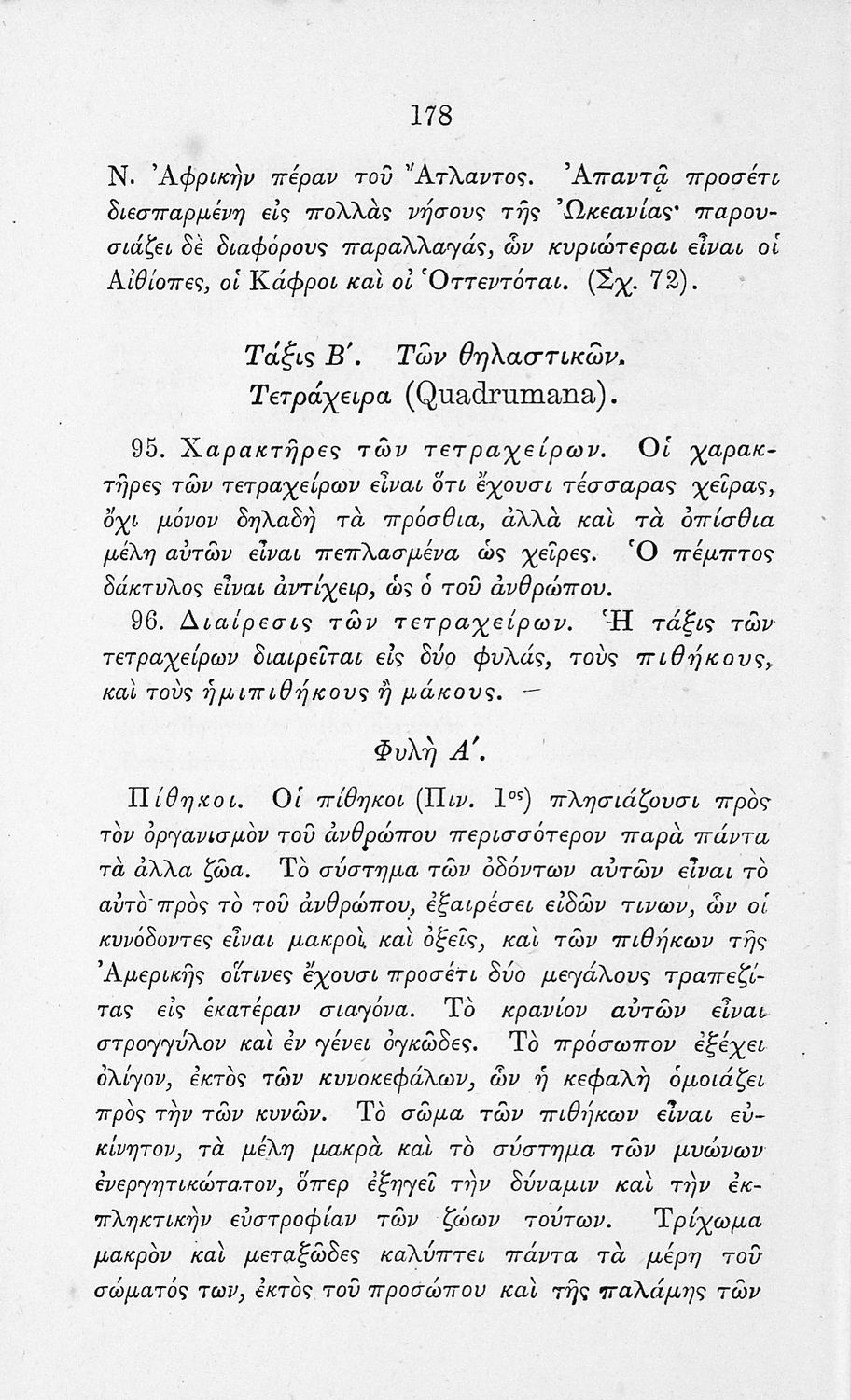 Βαθμίδα εκπαίδευσης: Δευτεροβάθμια Τάξη: Γυμνάσιο Μάθημα: Ζωολογία Γλώσσα: Καθαρεύουσα Παρουσίαση περιεχομένου: Σχολικό εγχειρίδιο Ζωολογίας που αντιμετωπίζει τις φυσικές επιστήμες ως "υπηρέτριες της θρησκείας" και εκκινεί από την "ηθική ωφέλεια που προκύπτει από την κατανόηση της άπειρης σοφίας και αγαθότητας του Δημιουργού". |