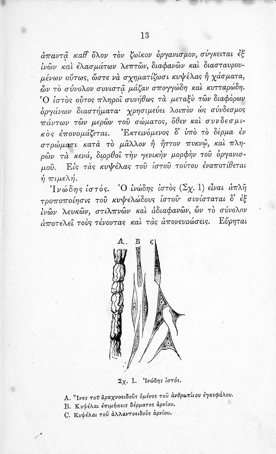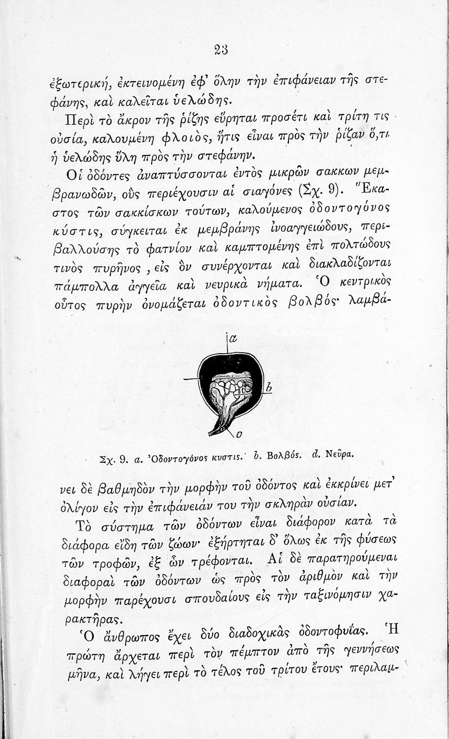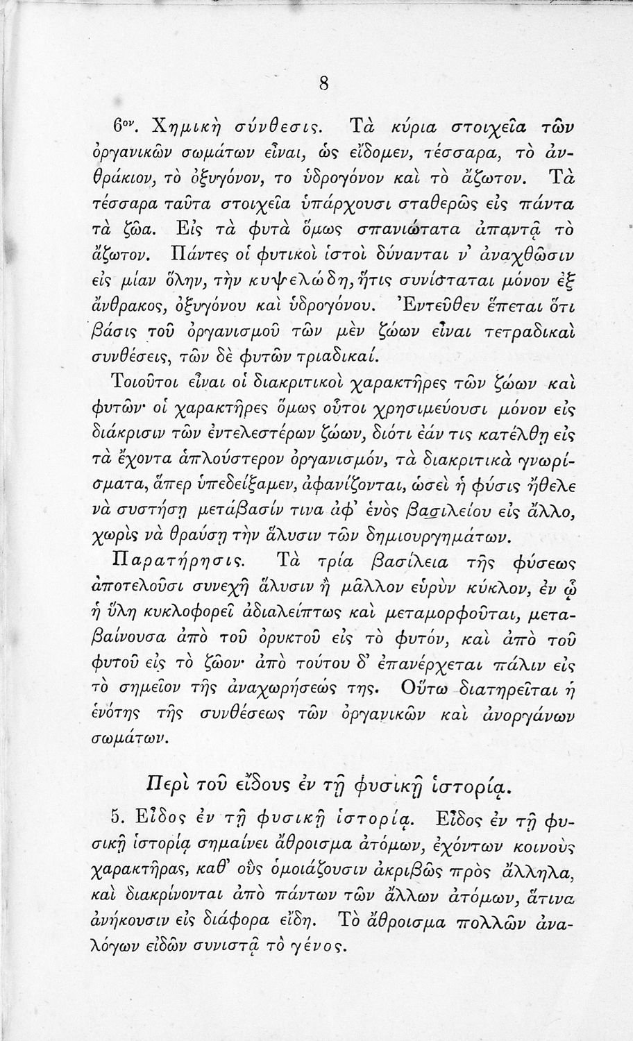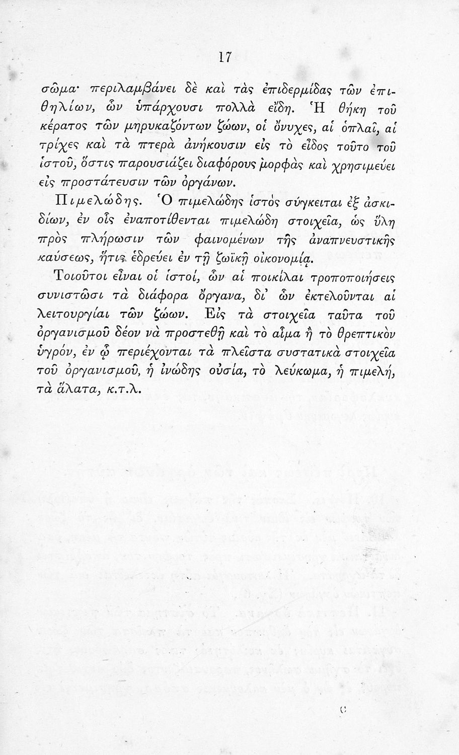 Βαθμίδα εκπαίδευσης: Δευτεροβάθμια Τάξη: Γυμνάσιο Μάθημα: Ζωολογία Γλώσσα: Καθαρεύουσα Παρουσίαση περιεχομένου: Σχολικό εγχειρίδιο Ζωολογίας που αντιμετωπίζει τις φυσικές επιστήμες ως "υπηρέτριες της θρησκείας" και εκκινεί από την "ηθική ωφέλεια που προκύπτει από την κατανόηση της άπειρης σοφίας και αγαθότητας του Δημιουργού". |