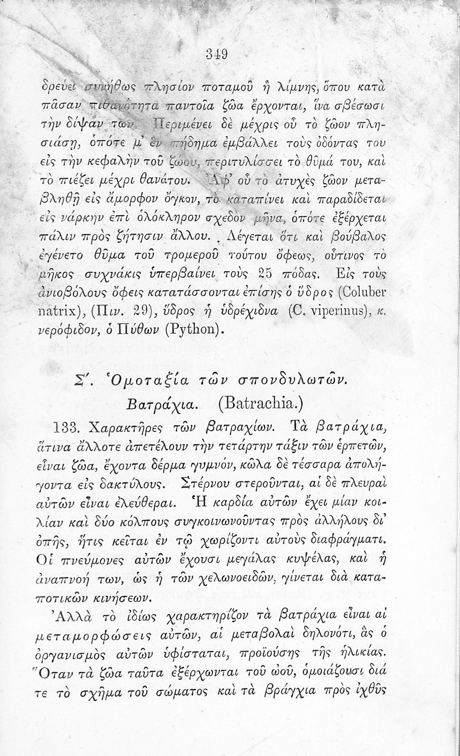 Σχολικό εγχειρίδιο Ζωολογίας που αντιμετωπίζει τις φυσικές επιστήμες ως "υπηρέτριες της θρησκείας" και εκκινεί από την "ηθική ωφέλεια που προκύπτει από την κατανόηση της άπειρης σοφίας και αγαθότητας του Δημιουργού".