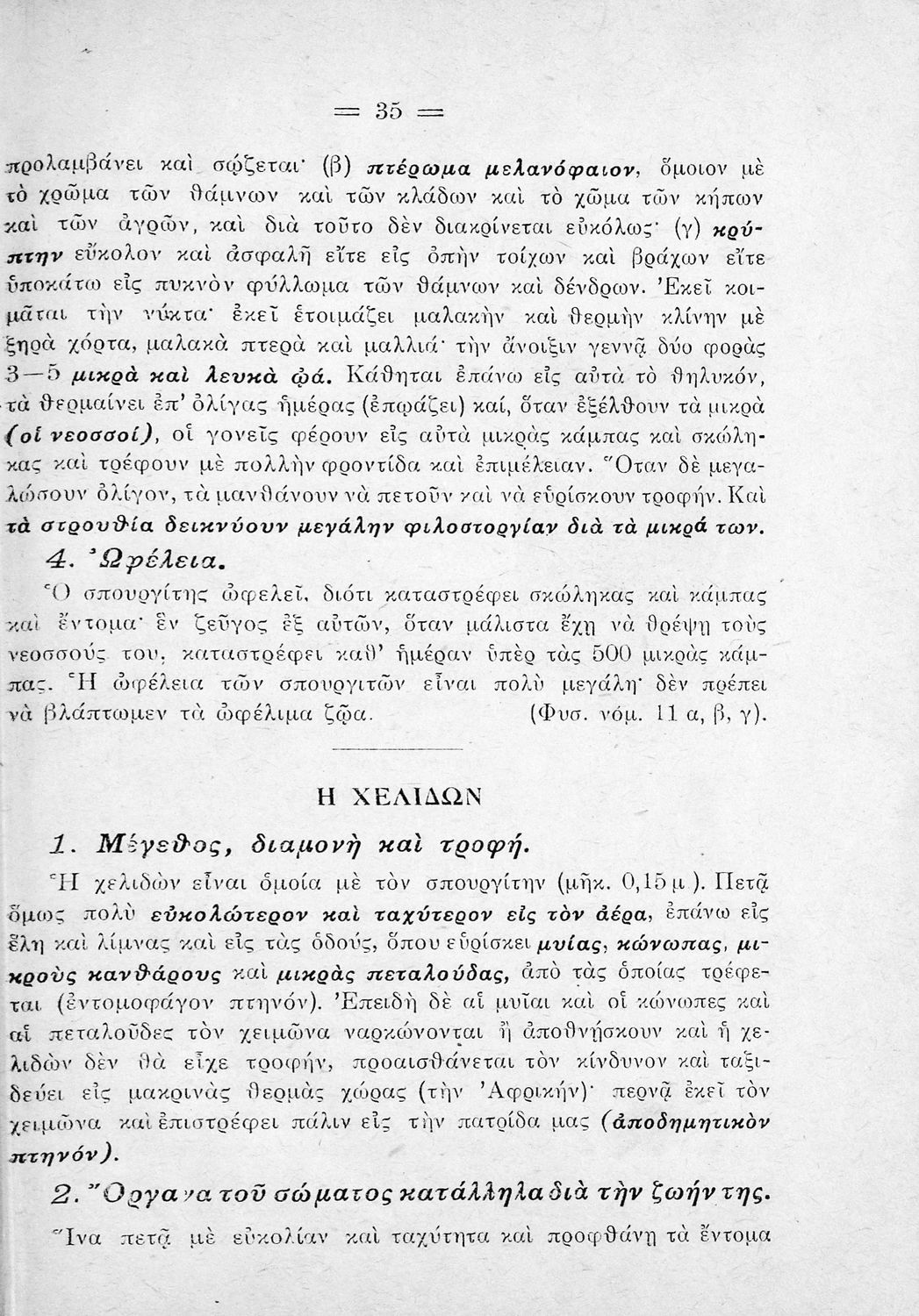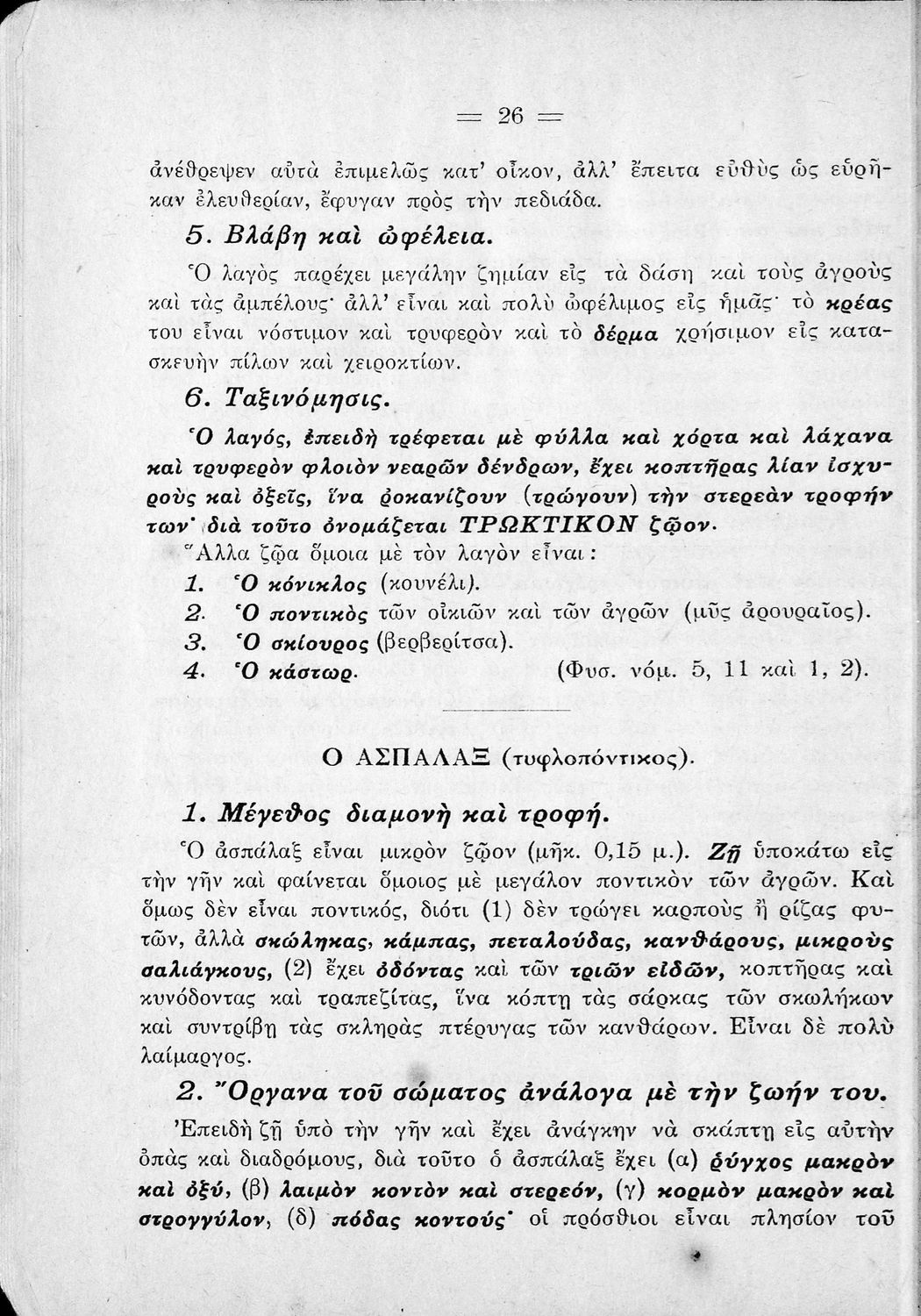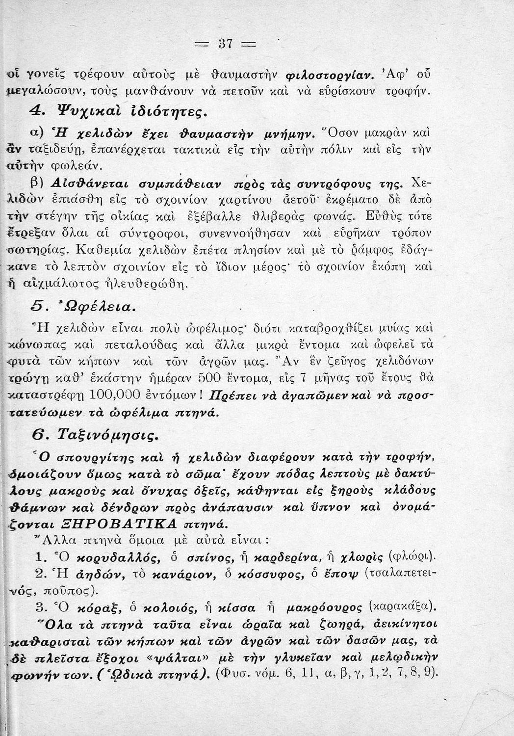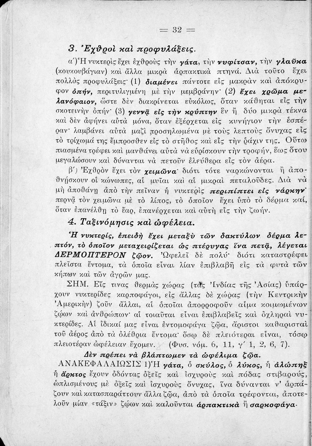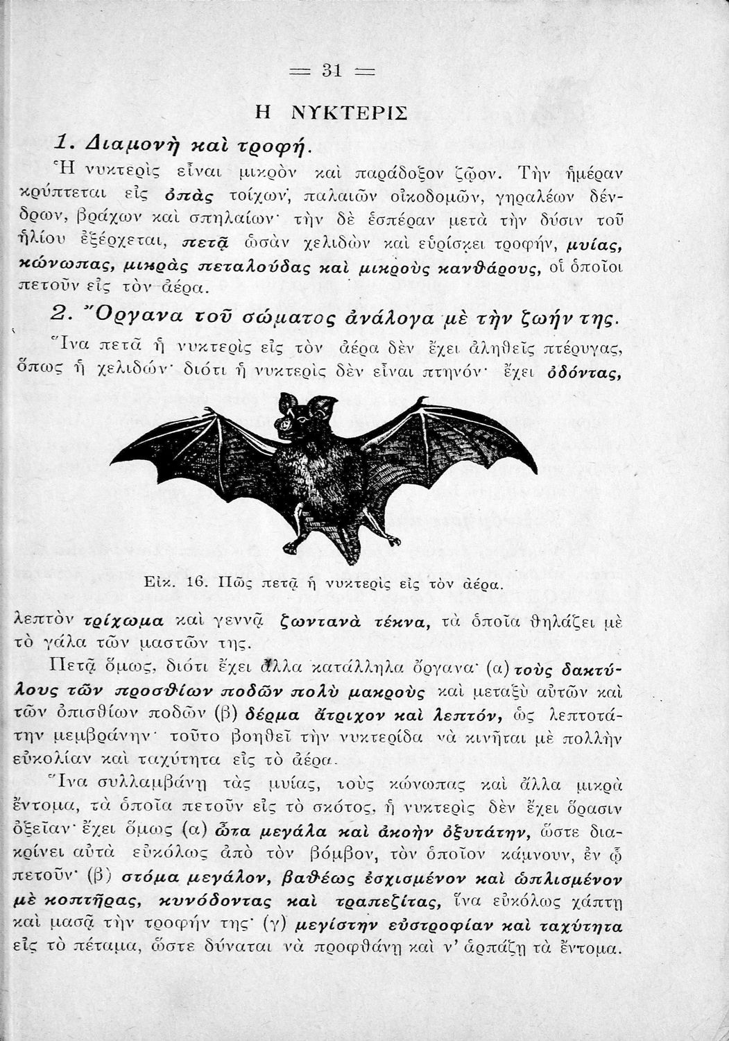 Σχολικό εγχειρίδιο Γεωγραφίας για την Α΄ Ελληνικών Σχολείων. Βιβλίο Φυσικής Ιστορίας με ζώα και φυτά που αναφέρονται οι χρήσεις τους, οι εχθροί και οι προφυλάξεις.
