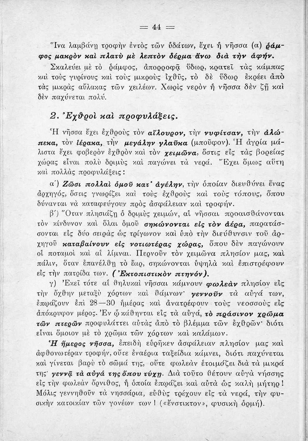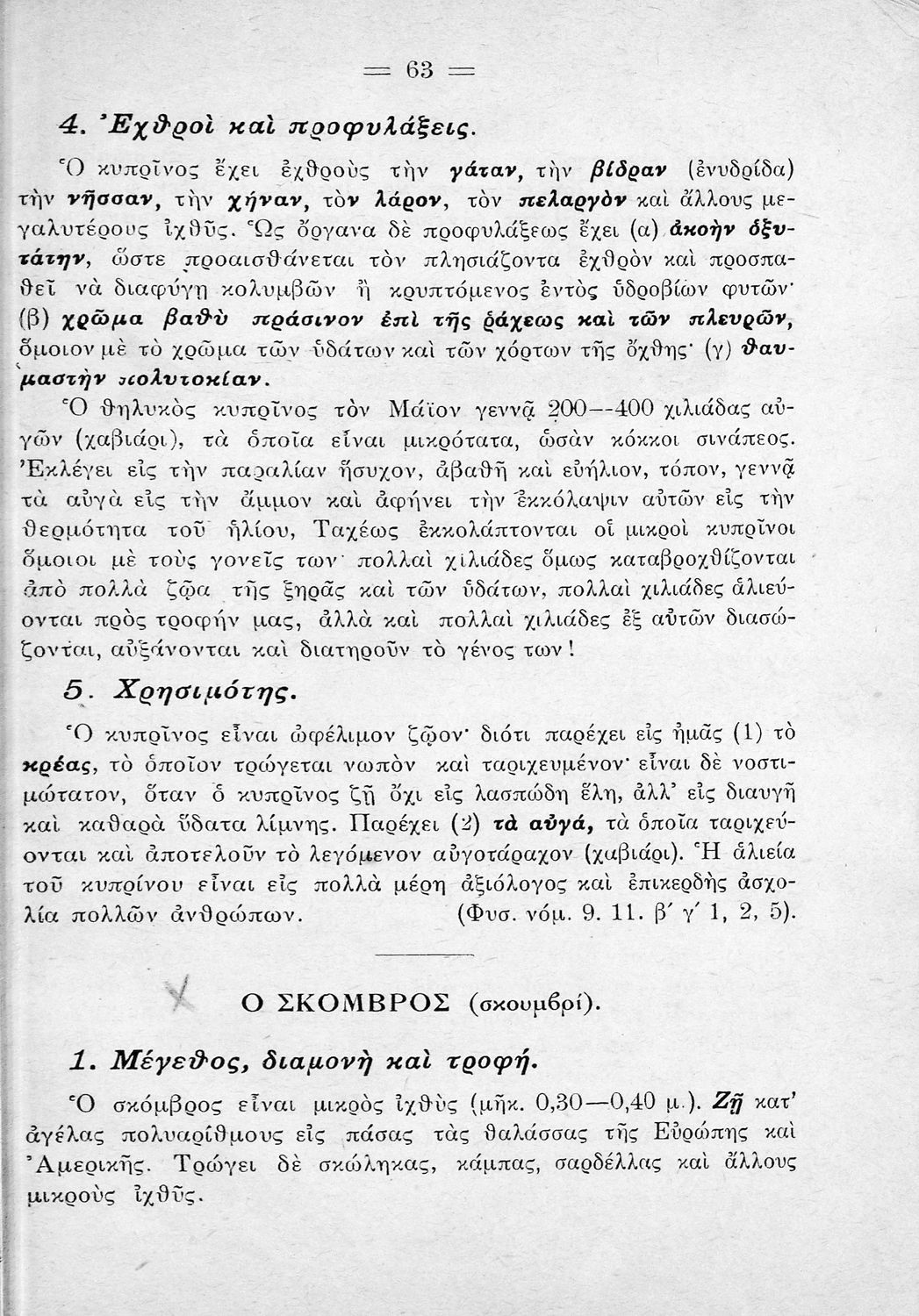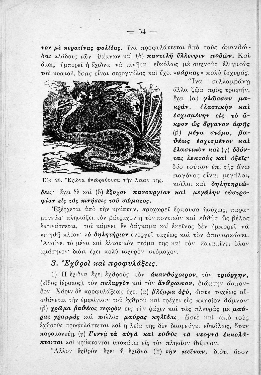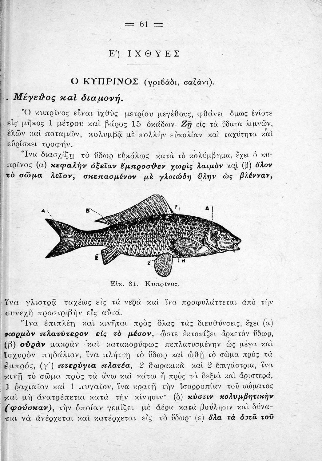 Σχολικό εγχειρίδιο Γεωγραφίας για την Α΄ Ελληνικών Σχολείων. Βιβλίο Φυσικής Ιστορίας με ζώα και φυτά που αναφέρονται οι χρήσεις τους, οι εχθροί και οι προφυλάξεις.