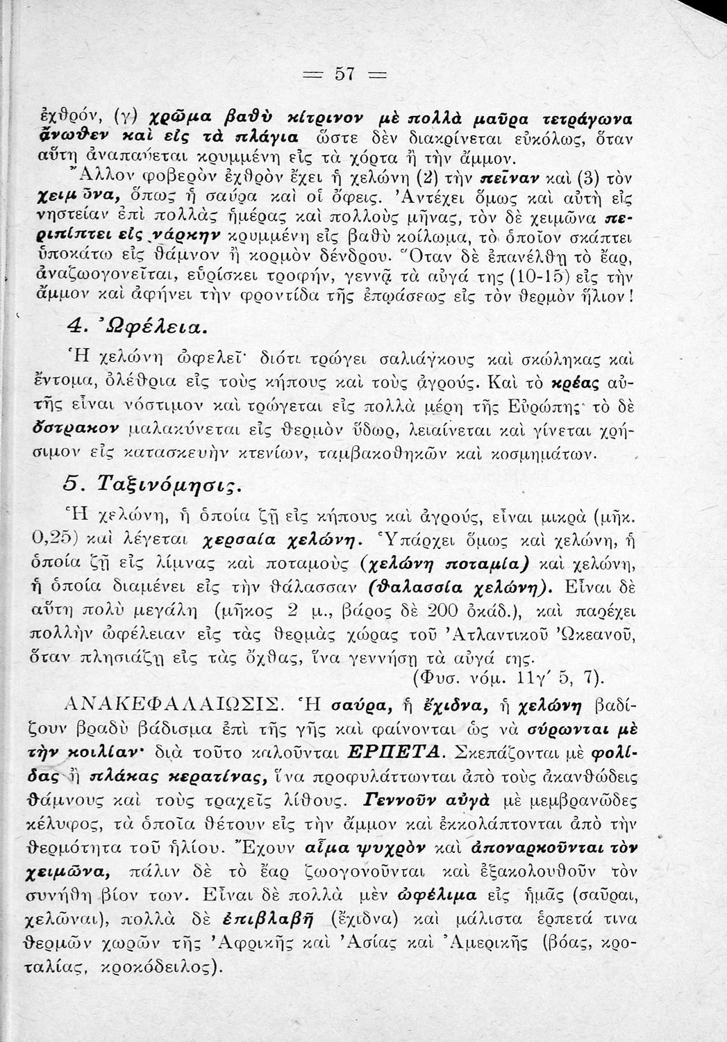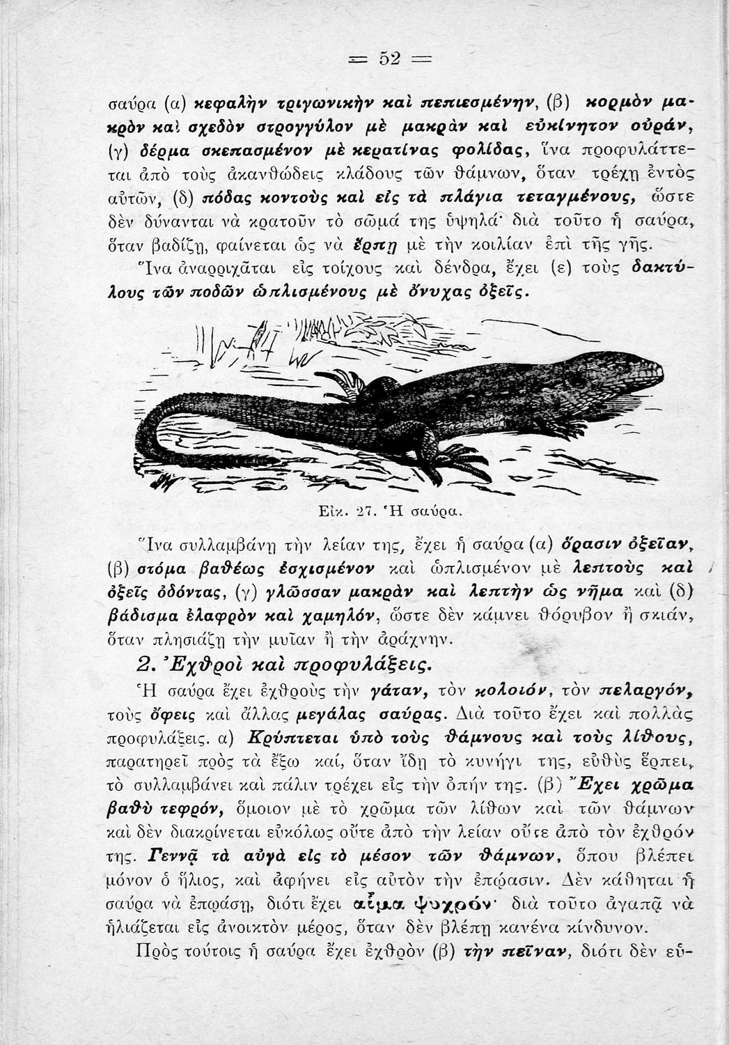 Σχολικό εγχειρίδιο της Α' Ελληνικού Σχολείου για το μάθημα της Φυσικής Ιστορίας. Το εγχειρίδιο περιλαμβάνει τα βασικά ζητήματα της επιστήμης της ζωολογίας (κατηγορίες και διαφορές μεταξύ ζώων, πτηνών και ...