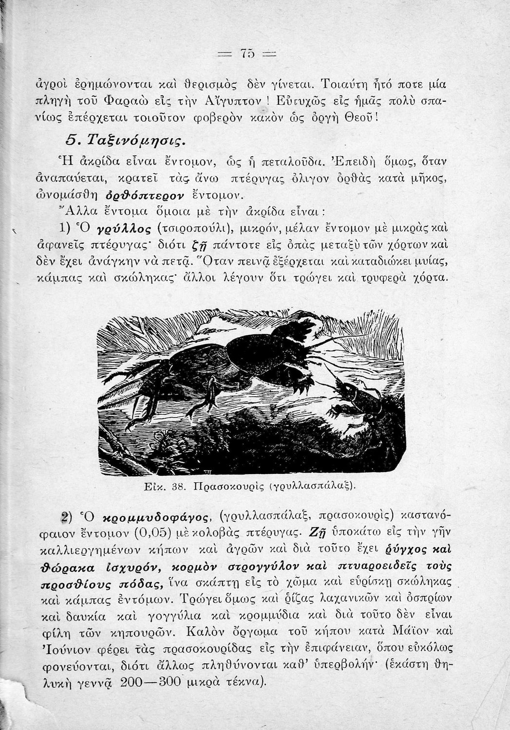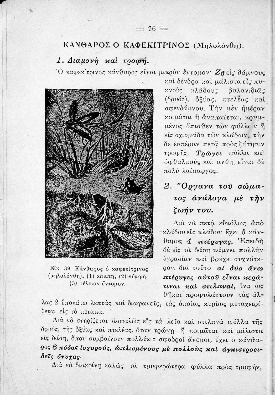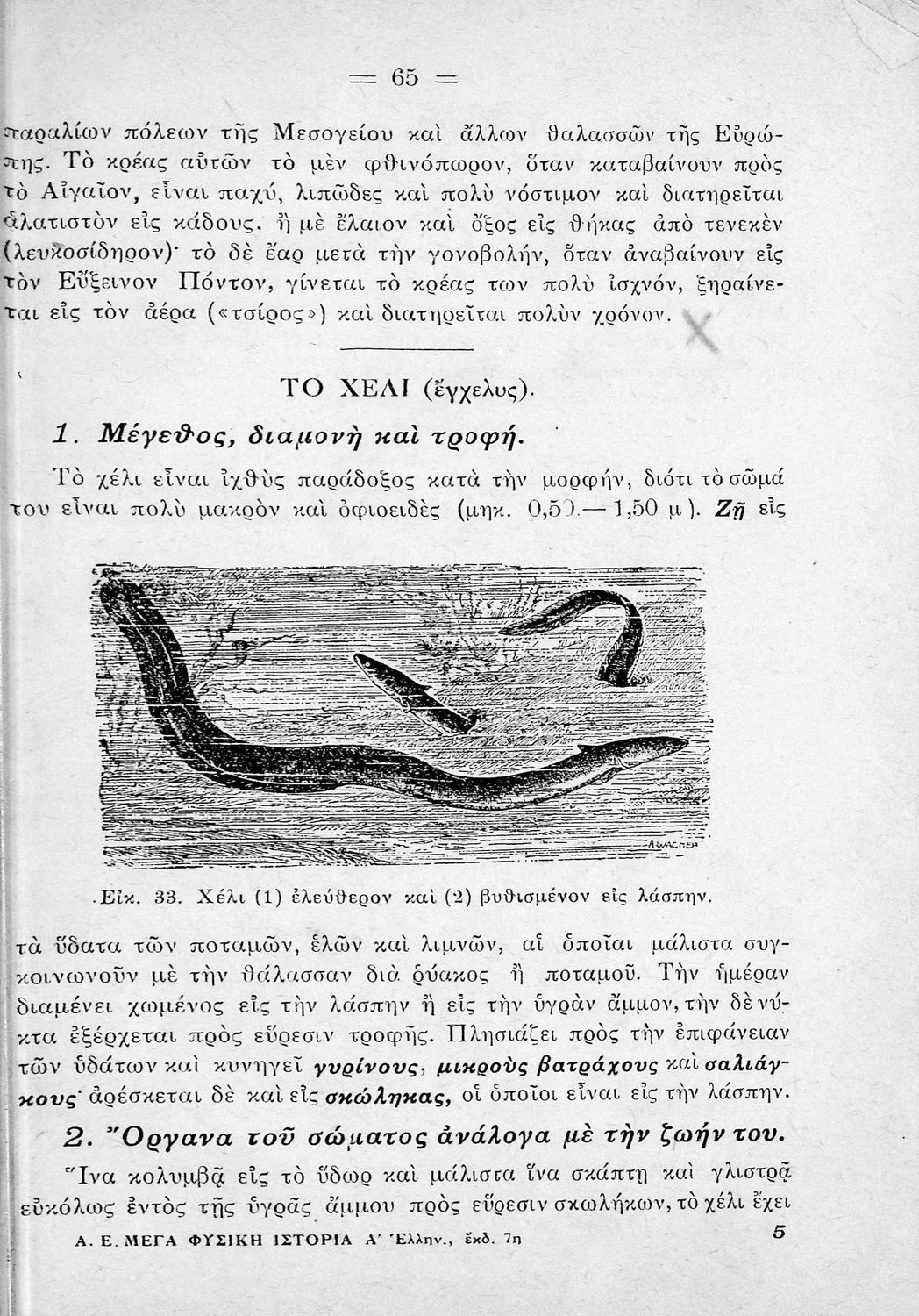 Σχολικό εγχειρίδιο Γεωγραφίας για την Α΄ Ελληνικών Σχολείων. Βιβλίο Φυσικής Ιστορίας με ζώα και φυτά που αναφέρονται οι χρήσεις τους, οι εχθροί και οι προφυλάξεις.