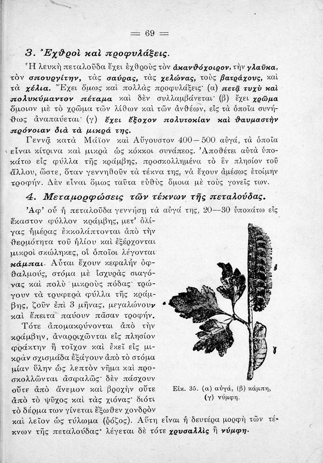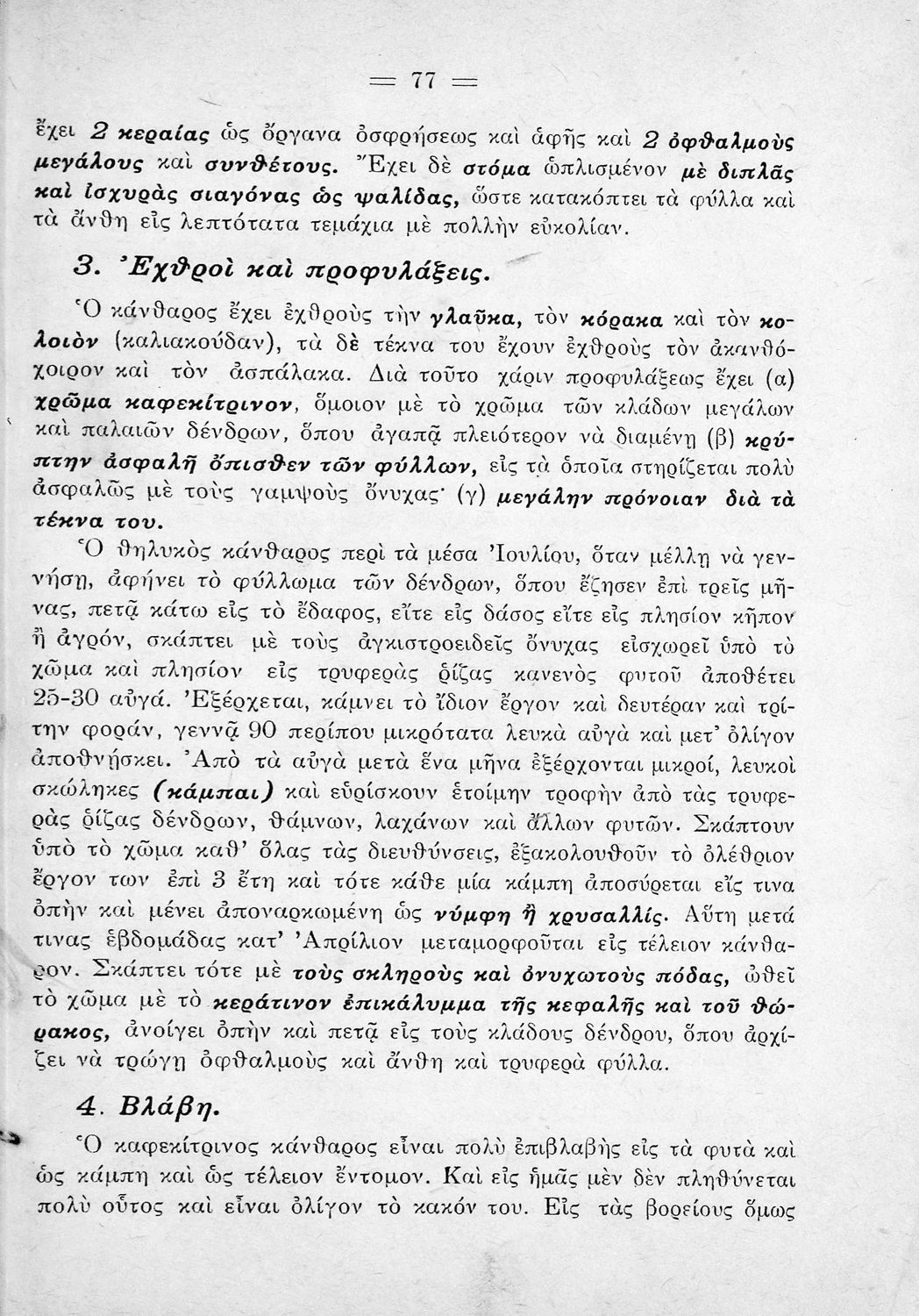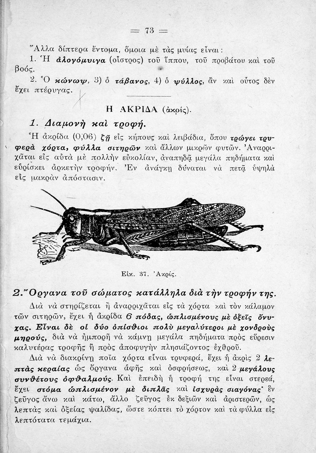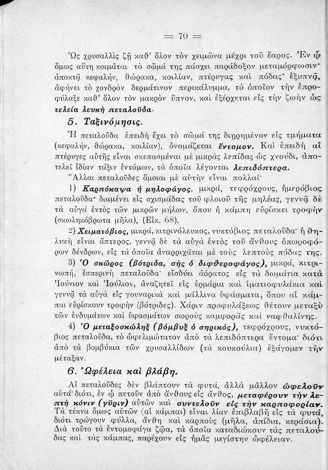 Σχολικό εγχειρίδιο Γεωγραφίας για την Α΄ Ελληνικών Σχολείων. Βιβλίο Φυσικής Ιστορίας με ζώα και φυτά που αναφέρονται οι χρήσεις τους, οι εχθροί και οι προφυλάξεις.