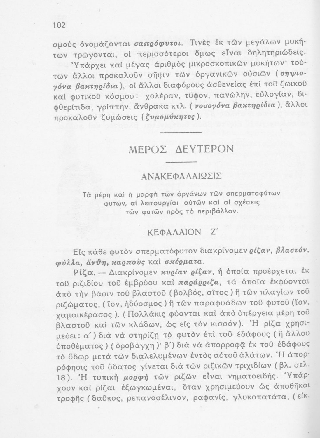 Σχολικό εγχειρίδιο Φυτολογίας για τη Β΄ Γυμνασίου και Α΄ τάξη Αστικών σχολείων που περιέχει πληροφορίες για τα φυτά της Ελλάδας καθώς και στοιχεία Ζωολογίας για ζώα διαφόρων τόπων.