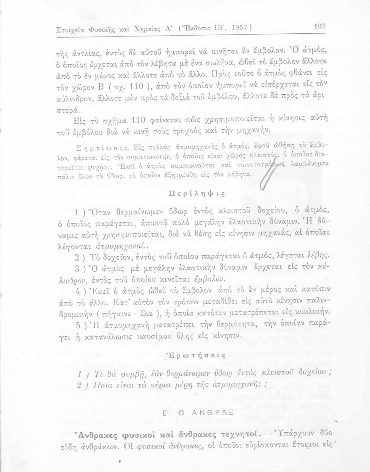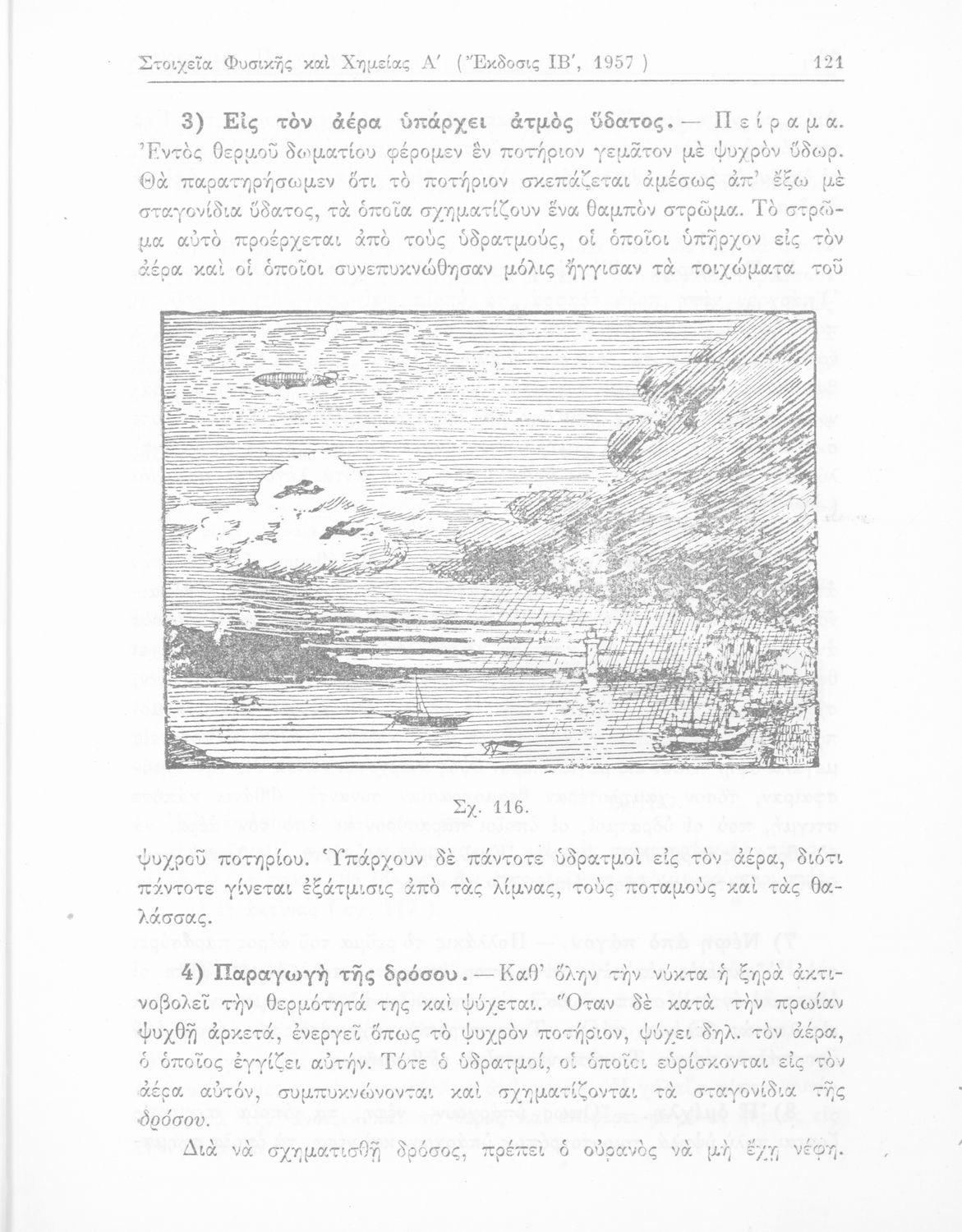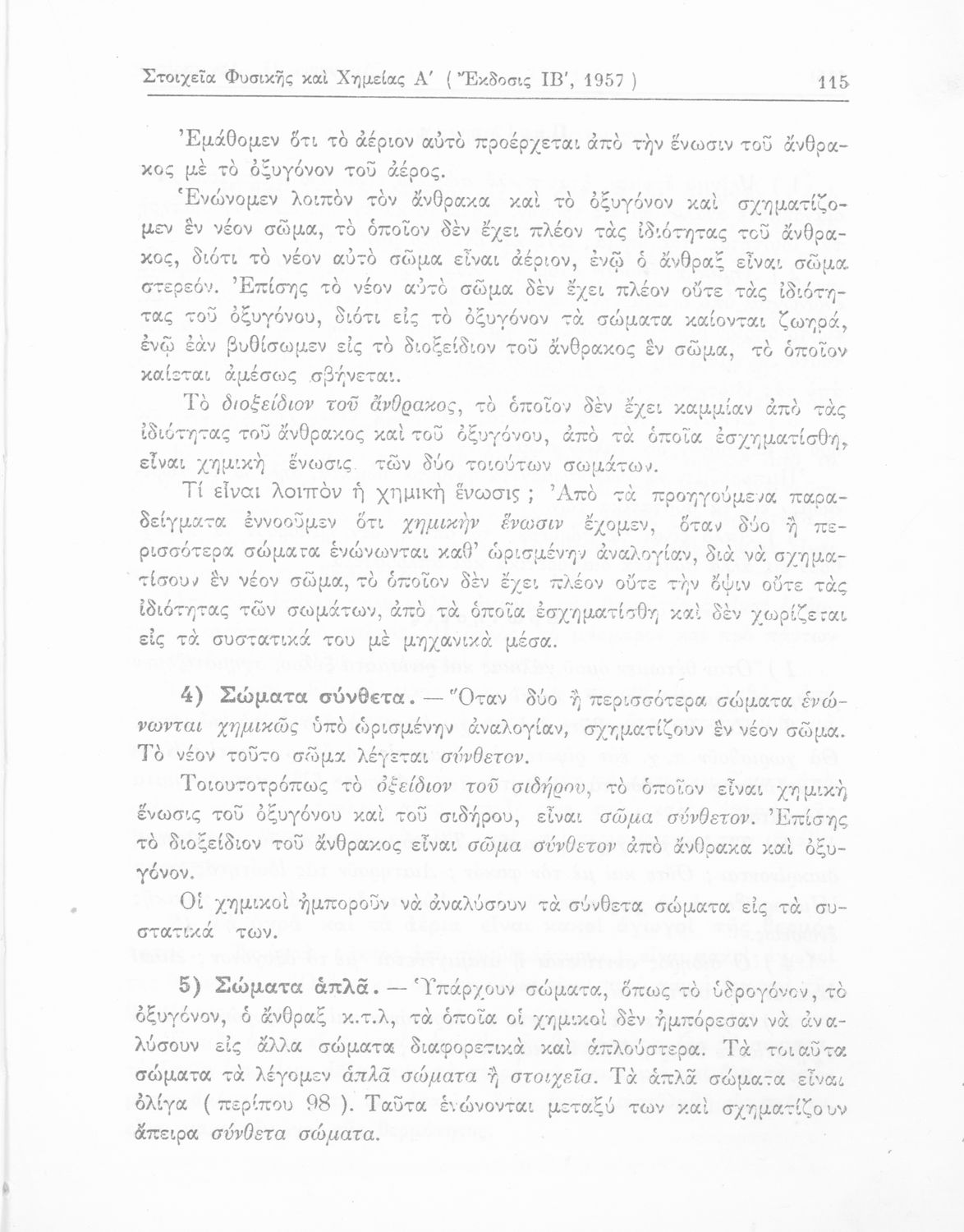 Σχολικό εγχειρίδιο για το μάθημα της Φυσικής στο Γυμνάσιο . Παρέχει βασικές γνώσεις της φυσικής επιστήμης. Αναλύει τα φαινόμενα της αδράνειας, της βαρύτητας, της υδροστατικής πίεσης κ.α. Όσον αφορά τη χημεία αναφέρεται στις ιδιότητες των μετάλλων, τα οξέα, τις βάσεις και τα άλατα. Αναφέρεται στην πρακτική εφαρμογή της φυσικής και της χημείας στην καθημερινότητά. Επίσης, περιλαμβάνει πολλά από τα όργανα, που χρησιμοποιούνται στη φυσική. Περιέχει εικόνες και σχεδιαγράμματα τα οποία βοηθούν τη διδασκαλία.