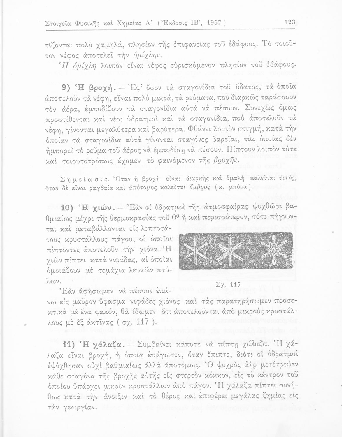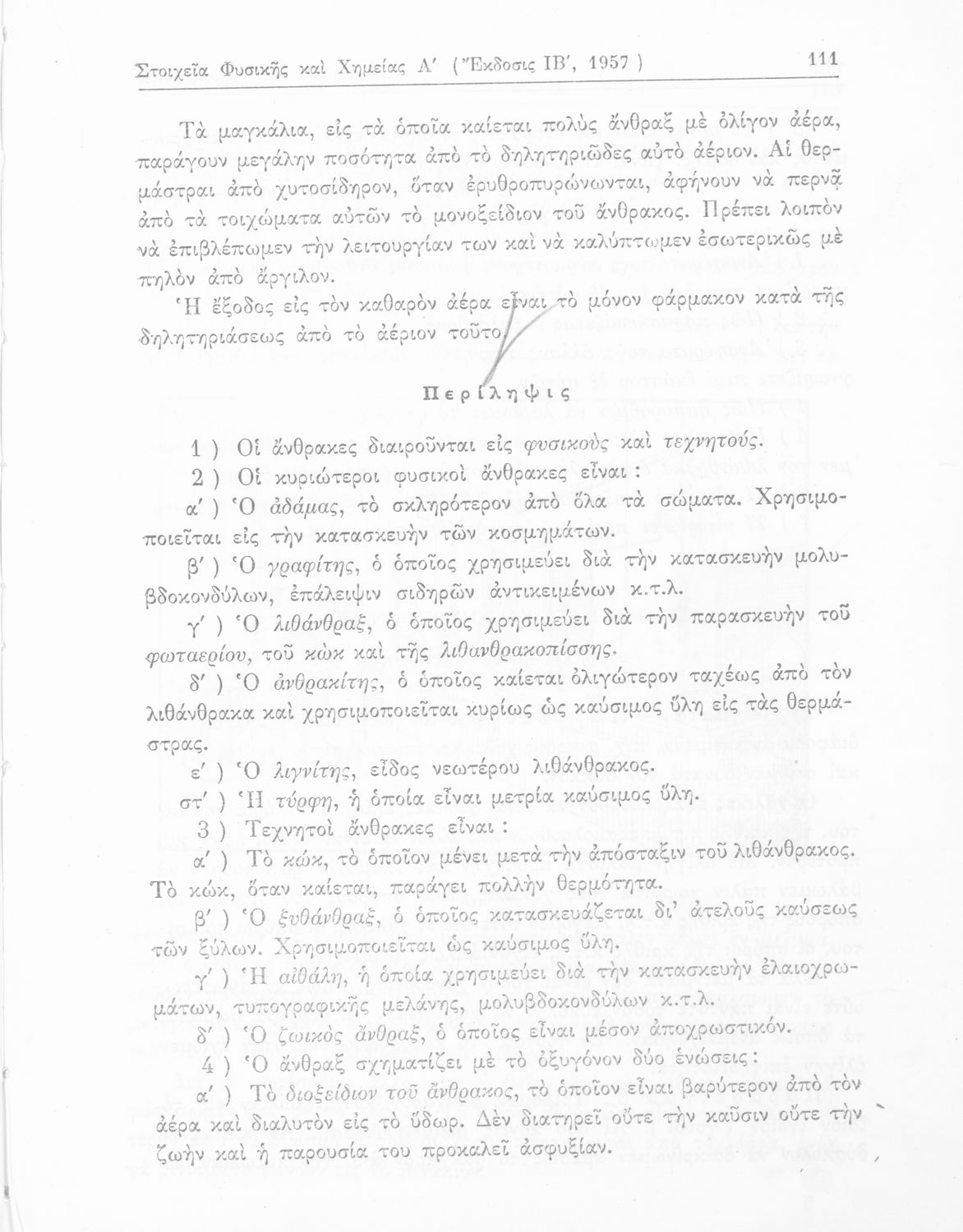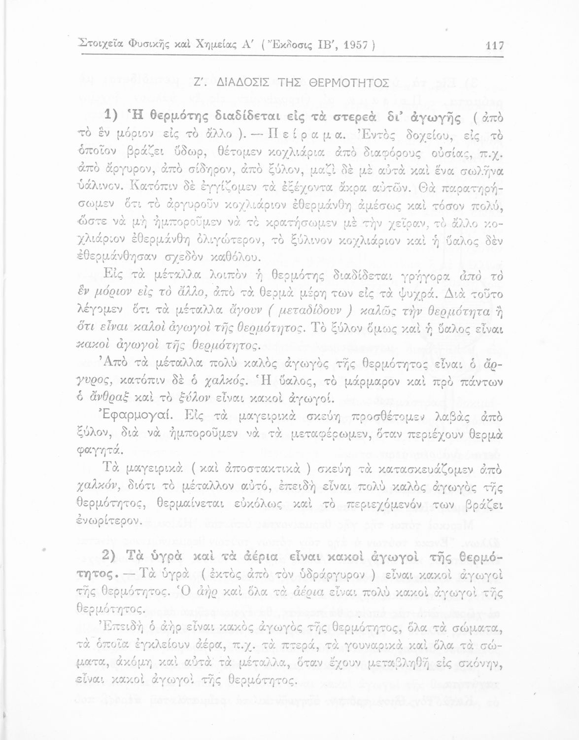Σχολικό εγχειρίδιο για το μάθημα της Φυσικής στο Γυμνάσιο . Παρέχει βασικές γνώσεις της φυσικής επιστήμης. Αναλύει τα φαινόμενα της αδράνειας, της βαρύτητας, της υδροστατικής πίεσης κ.α. Όσον αφορά τη χημεία αναφέρεται στις ιδιότητες των μετάλλων, τα οξέα, τις βάσεις και τα άλατα. Αναφέρεται στην πρακτική εφαρμογή της φυσικής και της χημείας στην καθημερινότητά. Επίσης, περιλαμβάνει πολλά από τα όργανα, που χρησιμοποιούνται στη φυσική. Περιέχει εικόνες και σχεδιαγράμματα τα οποία βοηθούν τη διδασκαλία.