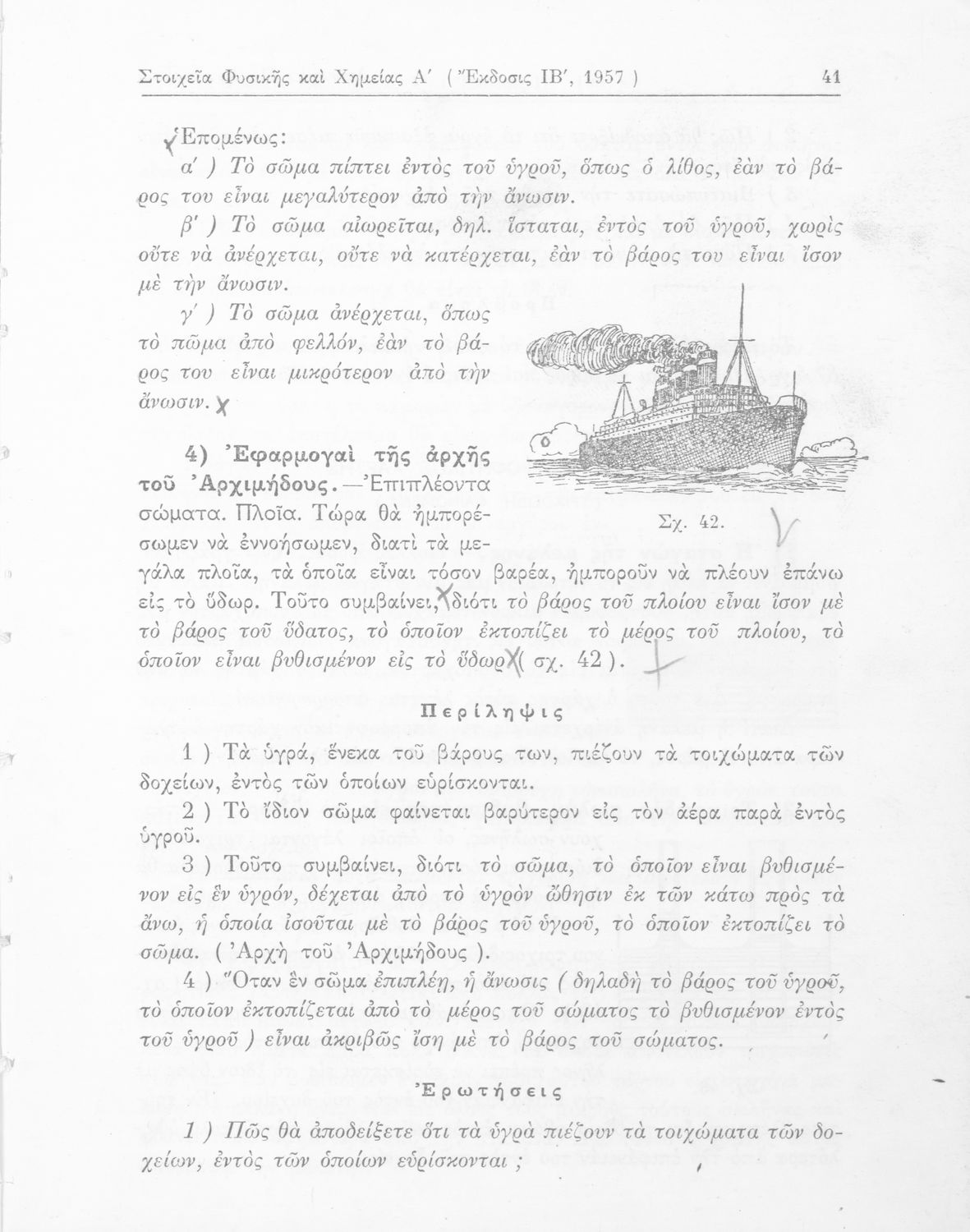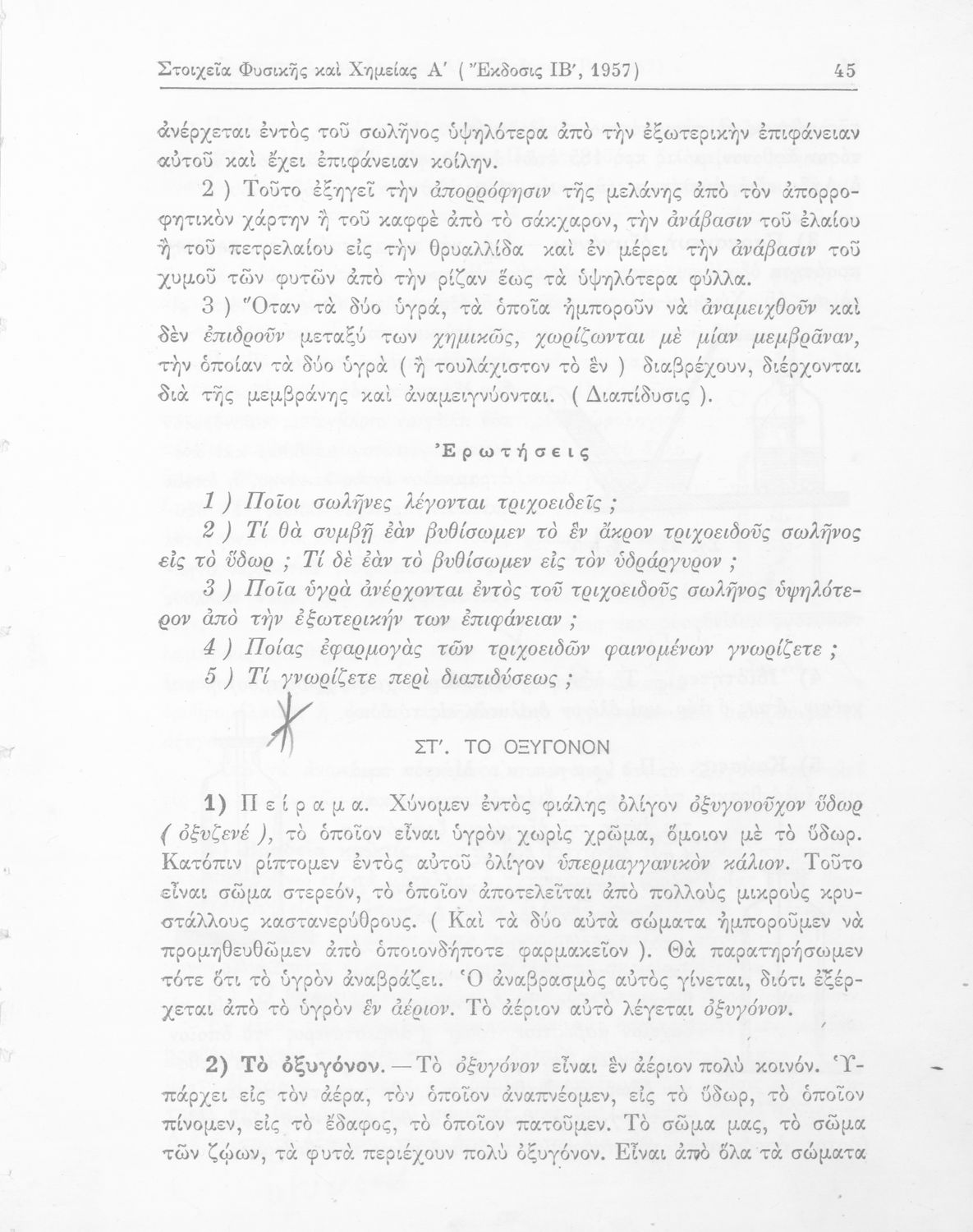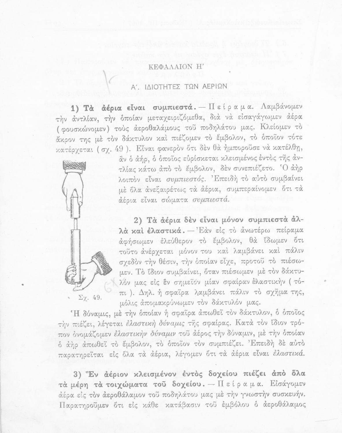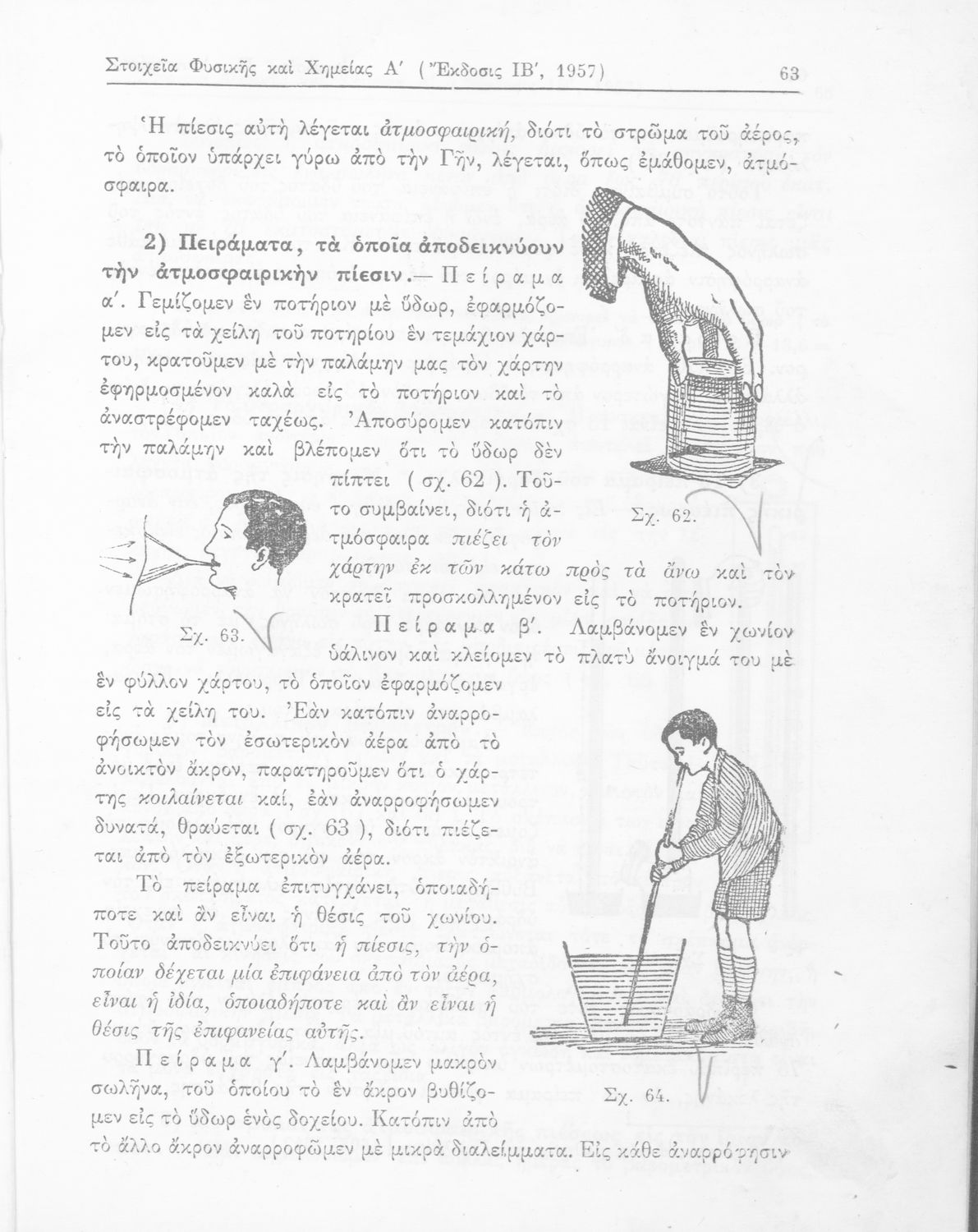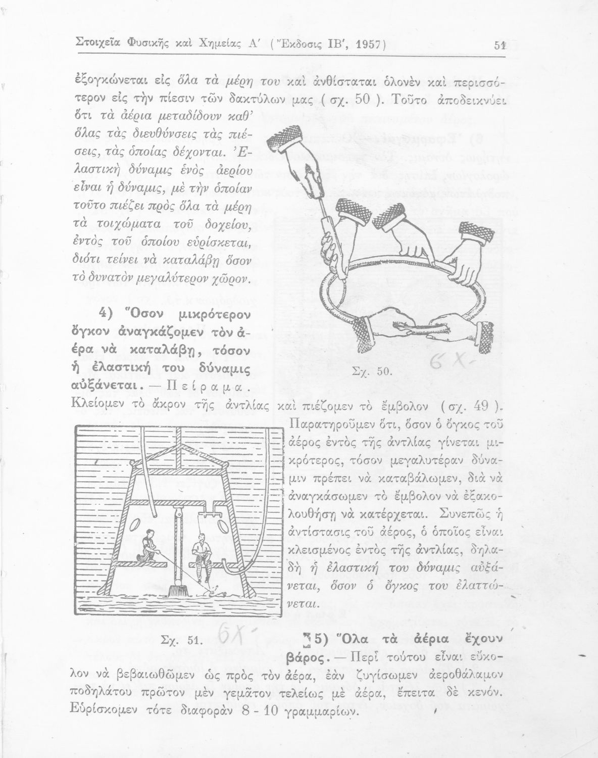 Σχολικό εγχειρίδιο για το μάθημα της Φυσικής στο Γυμνάσιο . Παρέχει βασικές γνώσεις της φυσικής επιστήμης. Αναλύει τα φαινόμενα της αδράνειας, της βαρύτητας, της υδροστατικής πίεσης κ.α. Όσον αφορά τη χημεία αναφέρεται στις ιδιότητες των μετάλλων, τα οξέα, τις βάσεις και τα άλατα. Αναφέρεται στην πρακτική εφαρμογή της φυσικής και της χημείας στην καθημερινότητά. Επίσης, περιλαμβάνει πολλά από τα όργανα, που χρησιμοποιούνται στη φυσική. Περιέχει εικόνες και σχεδιαγράμματα τα οποία βοηθούν τη διδασκαλία.